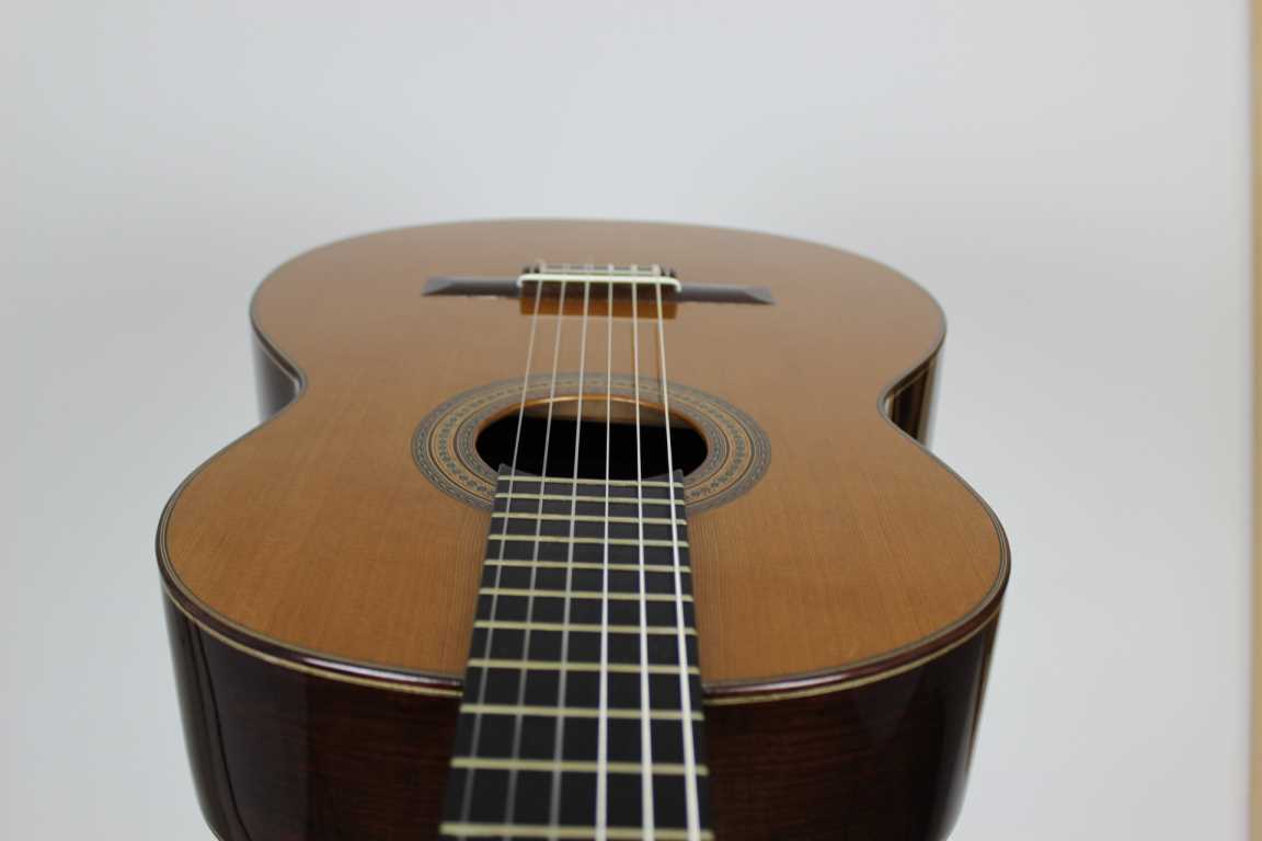 Price on requestLuthier: Fritz OberConstruction Year: 2019Construction Type: TraditionalTop: SpruceBack and Sides: Brazilian rosewood (CITES certified)Soundboard Finish: French polishBody Finish: French polishAir Body Frequency: C sharp / DWeight (g): 1345Tuner: Klaus SchellerCondition: Excellent -