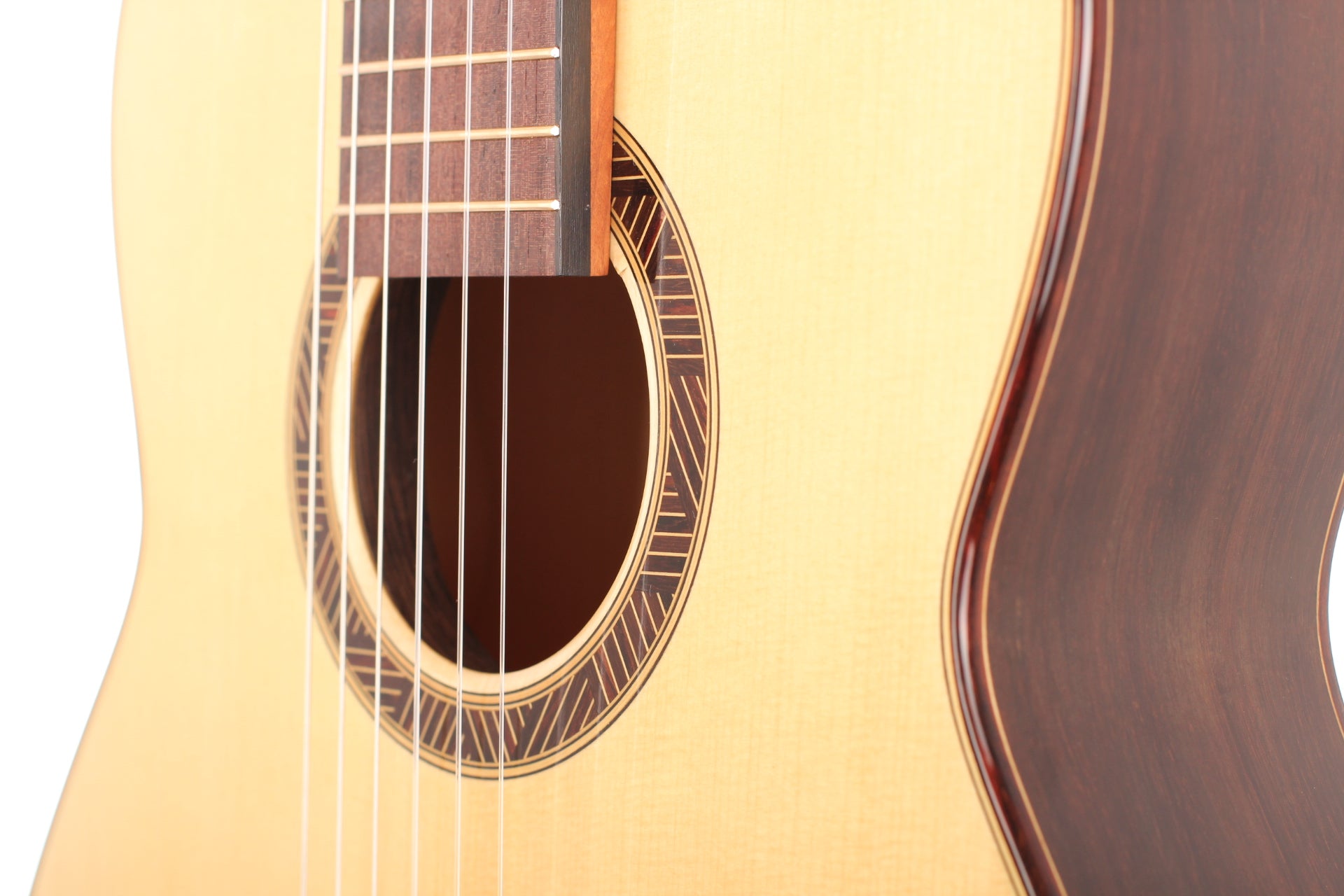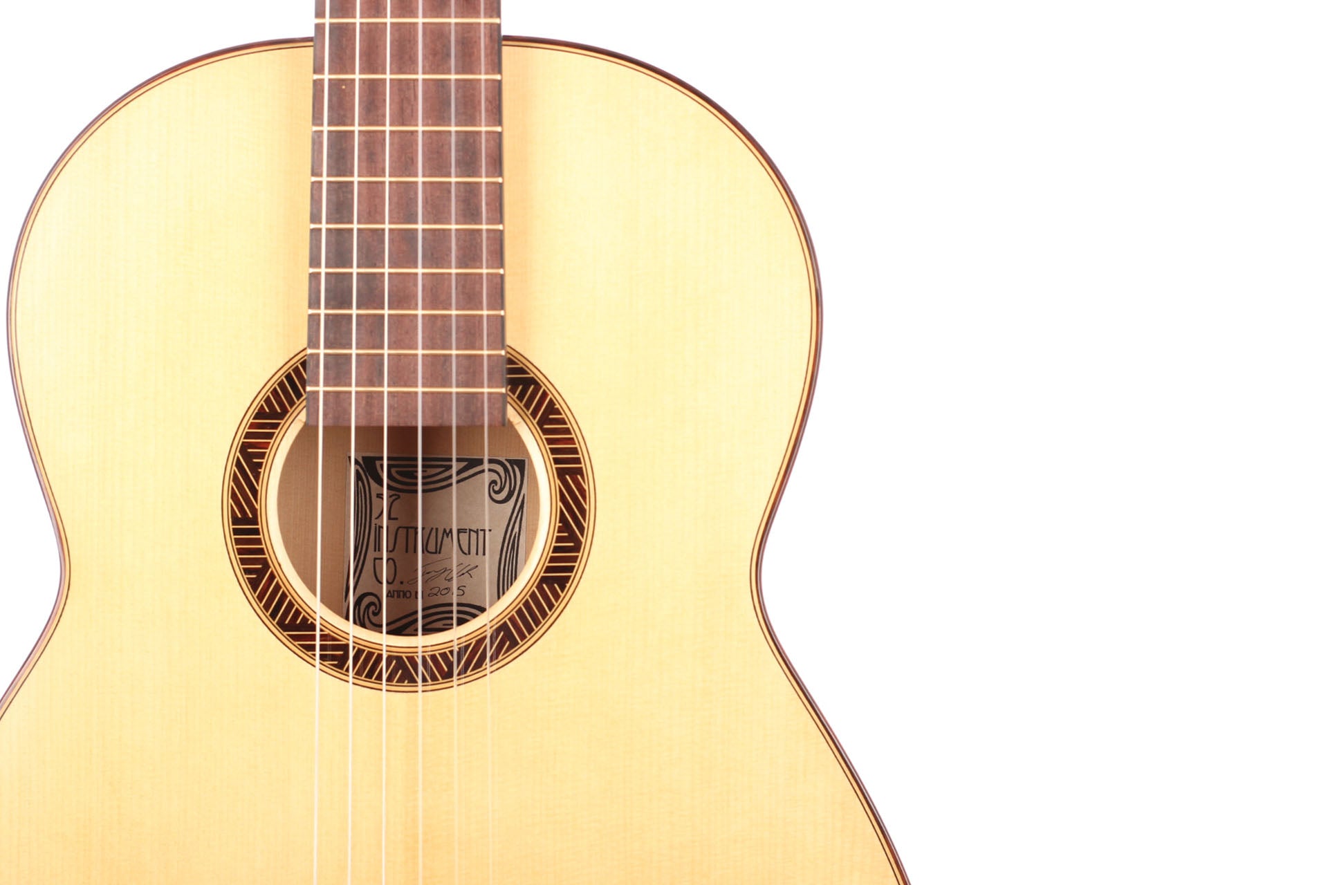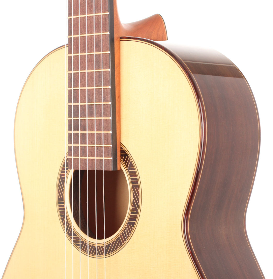 The classical guitar, with its soft nylon strings and characteristic timbre, has become a symbol of chamber music, Spanish tradition, and concert repertoire. Its modern form was shaped by Antonio de Torres in the 19th century, setting the standard for the body, fan bracing, and the 65-centimeter scale length that are still used today. Instruments in this category open up a rich palette from the refined Romantic miniatures of Tárrega to the majestic concertos of Rodrigo. Here you will find guitars that preserve historical continuity and at the same time inspire new interpretations.Look all products of the collection -