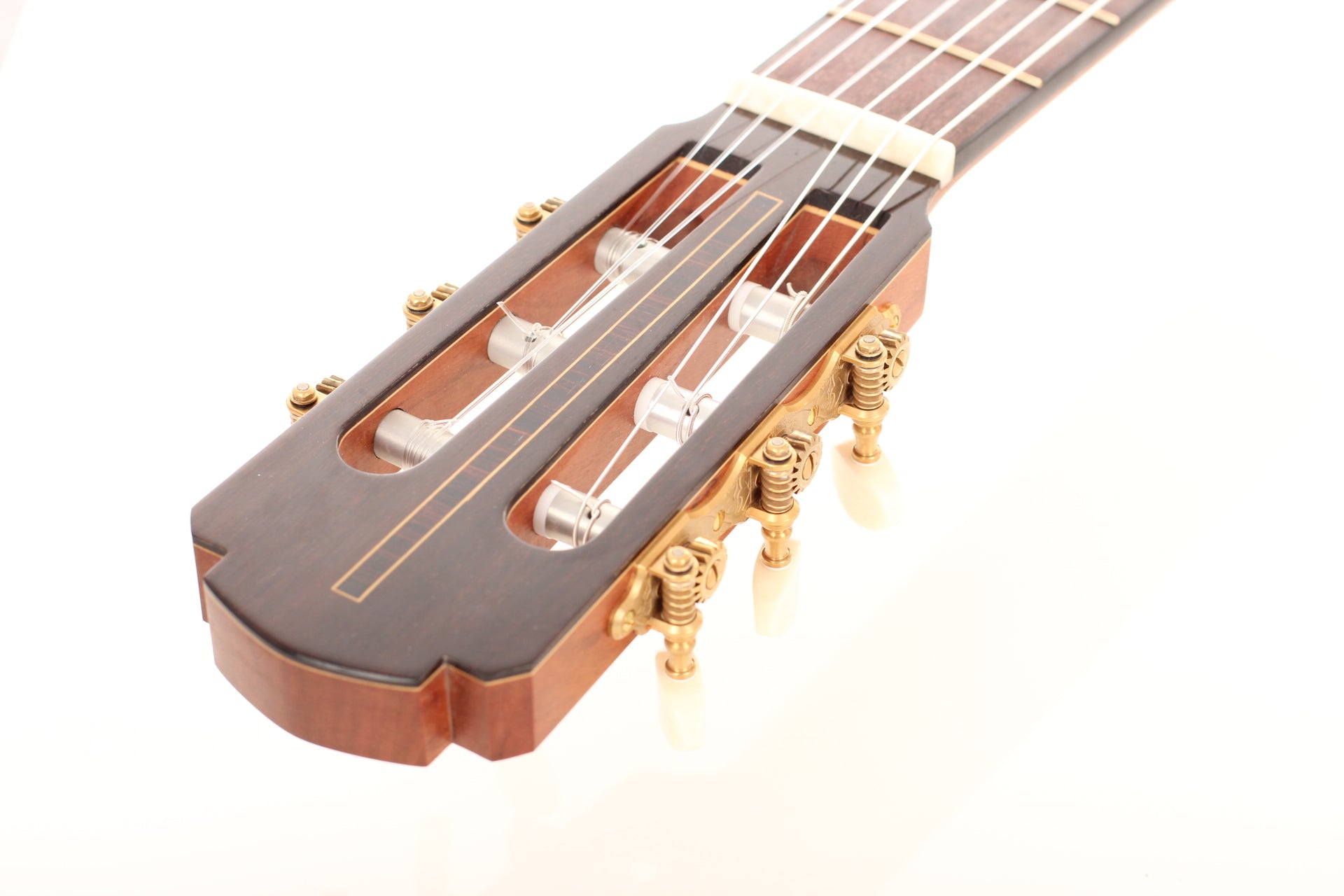 Price on requestLuthier: Fritz OberConstruction Year: 2019Construction Type: TraditionalTop: SpruceBack and Sides: Brazilian rosewood (CITES certified)Soundboard Finish: French polishBody Finish: French polishAir Body Frequency: C sharp / DWeight (g): 1345Tuner: Klaus SchellerCondition: Excellent -