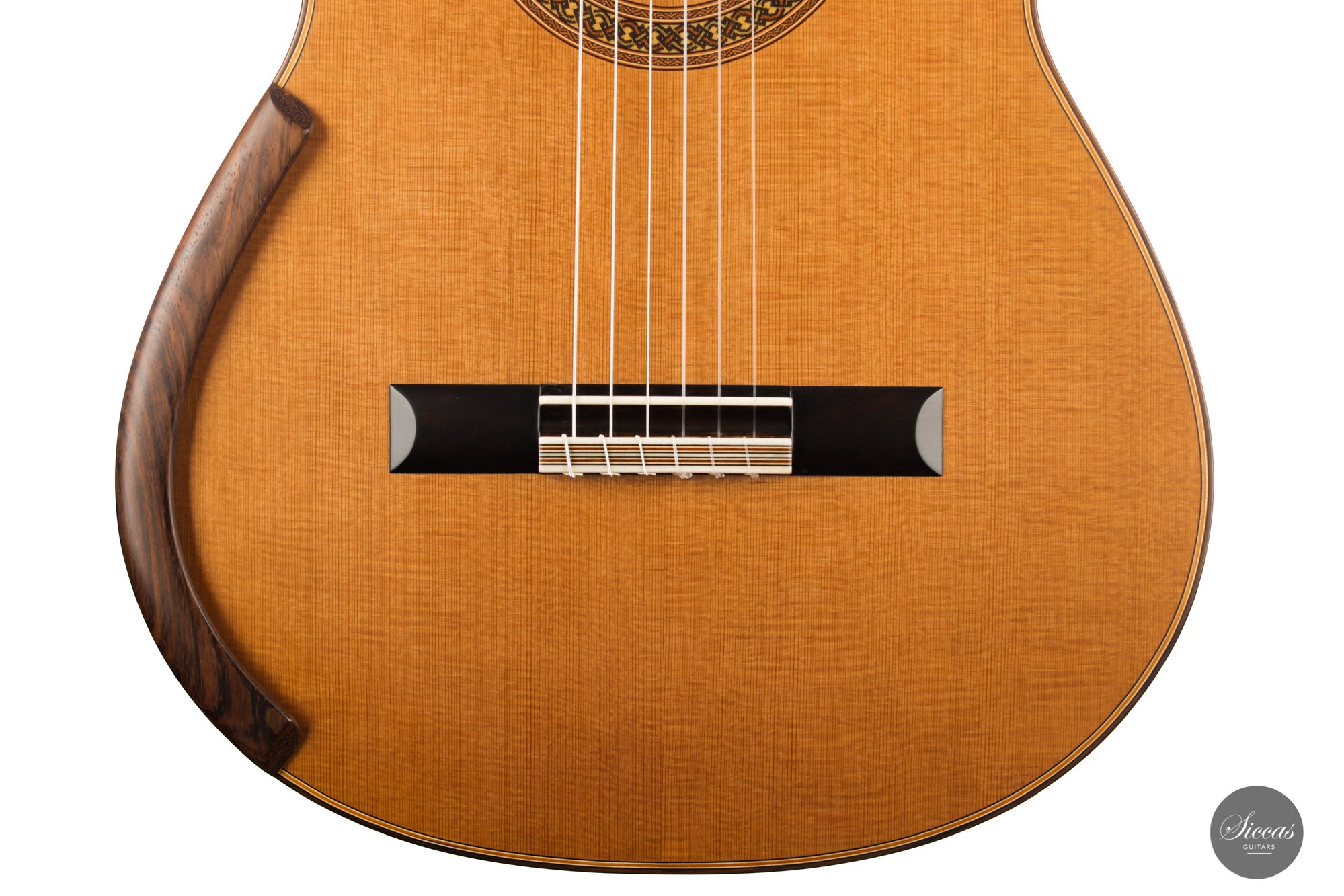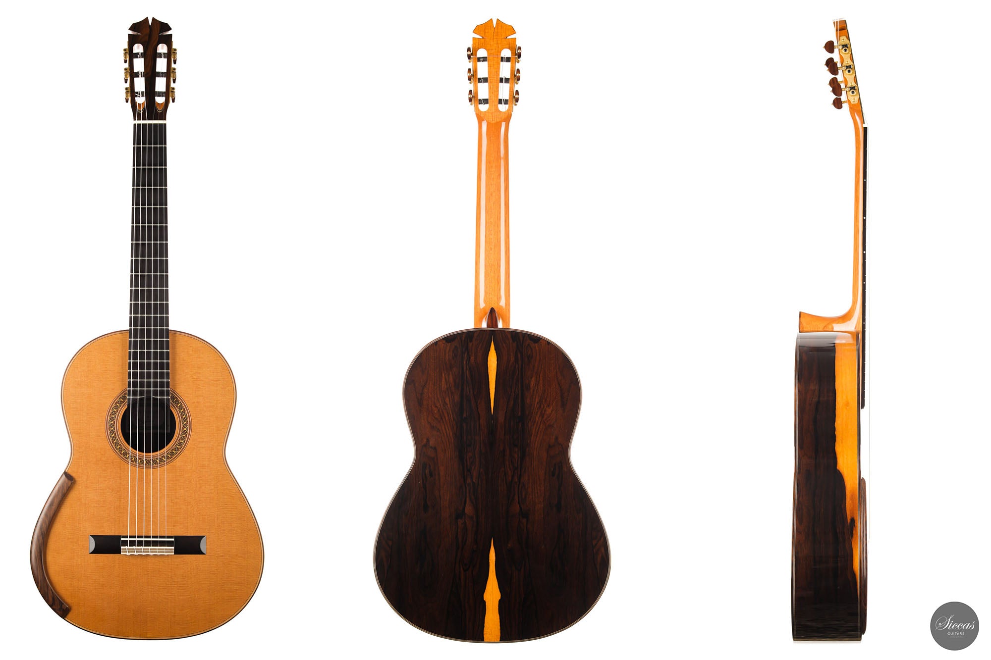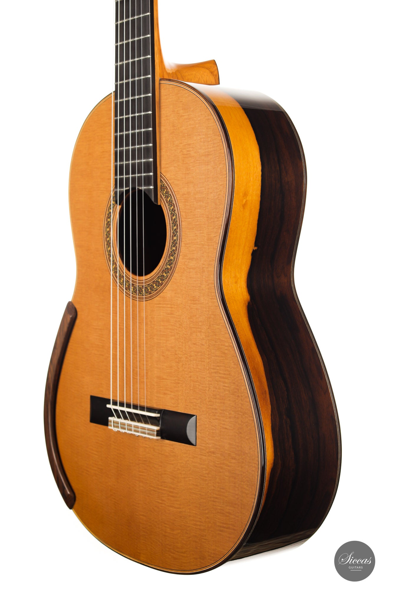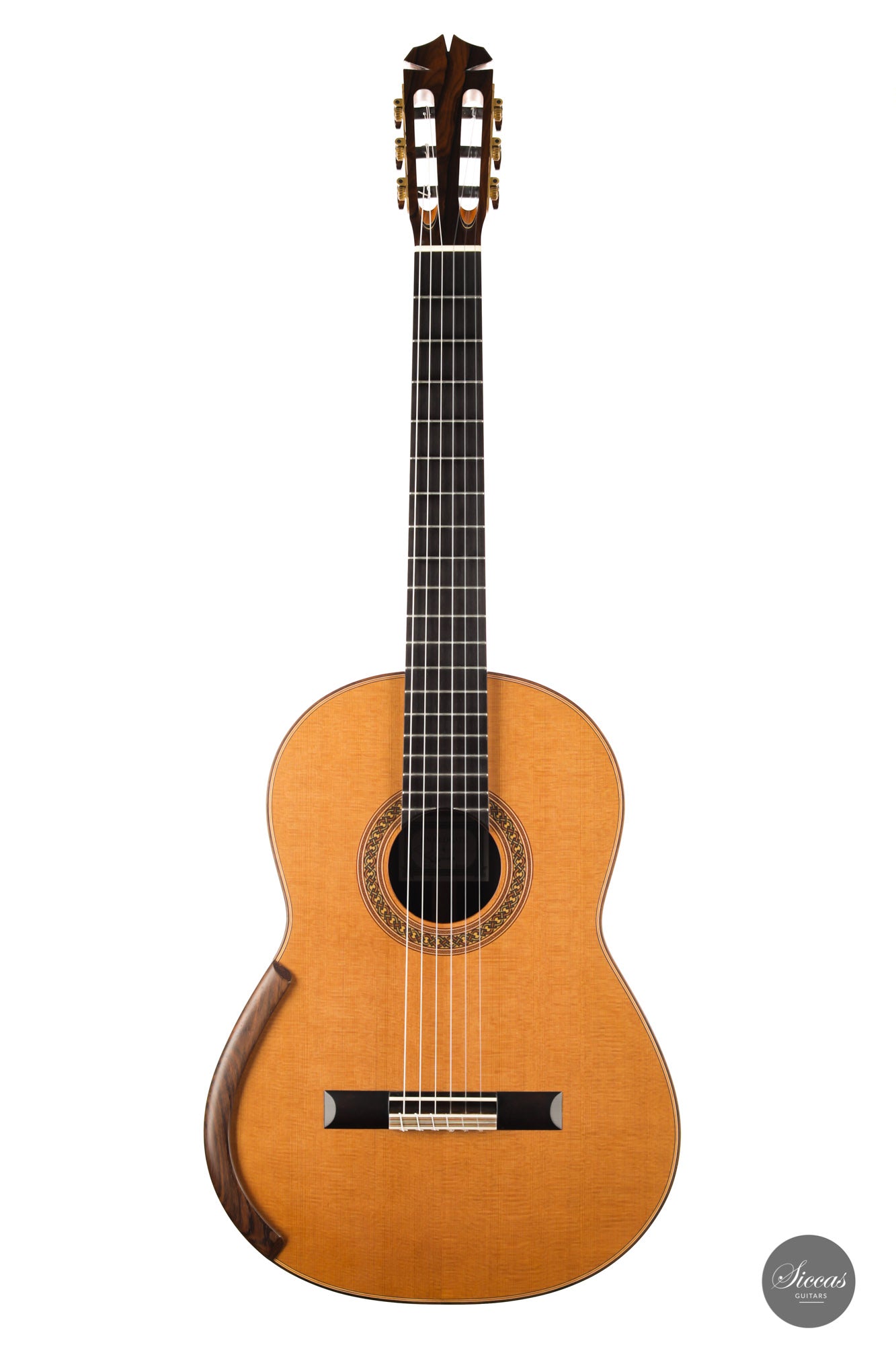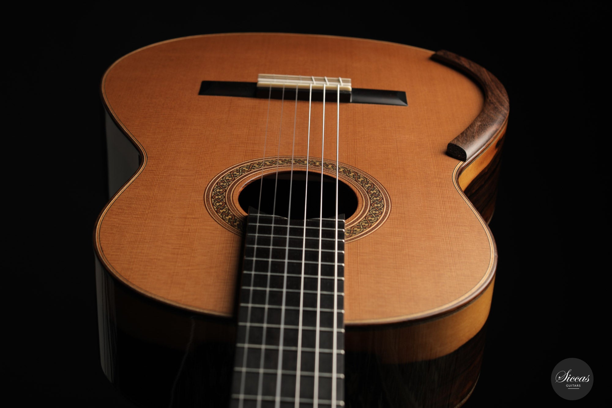 Jim Redgate is a highly sought-after Australian luthier known for the guitars built for artists such as Ana Vidovic, Pepe Roméro and Odair Assad. This model with lattice bracing is an exact copy of the guitar Ana Vidovic plays. Jim Redgate's instruments have a very unique character in sound and feel. The impressive sound volume combined with the rich overtone nuances and impressive clarity of tone are simply unique. The playability is fantastic, and the instruments are relatively light compared to other Australian guitars.