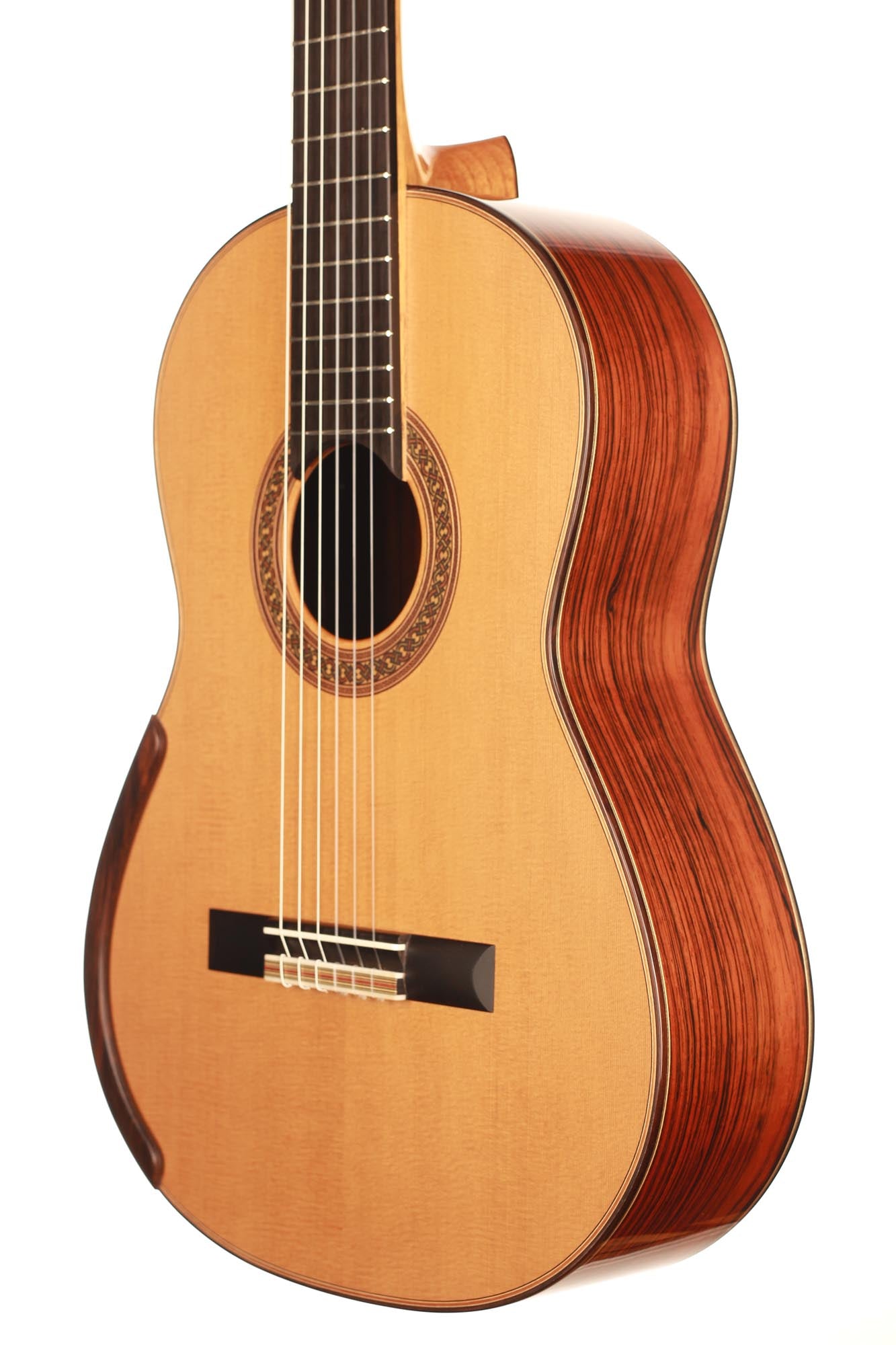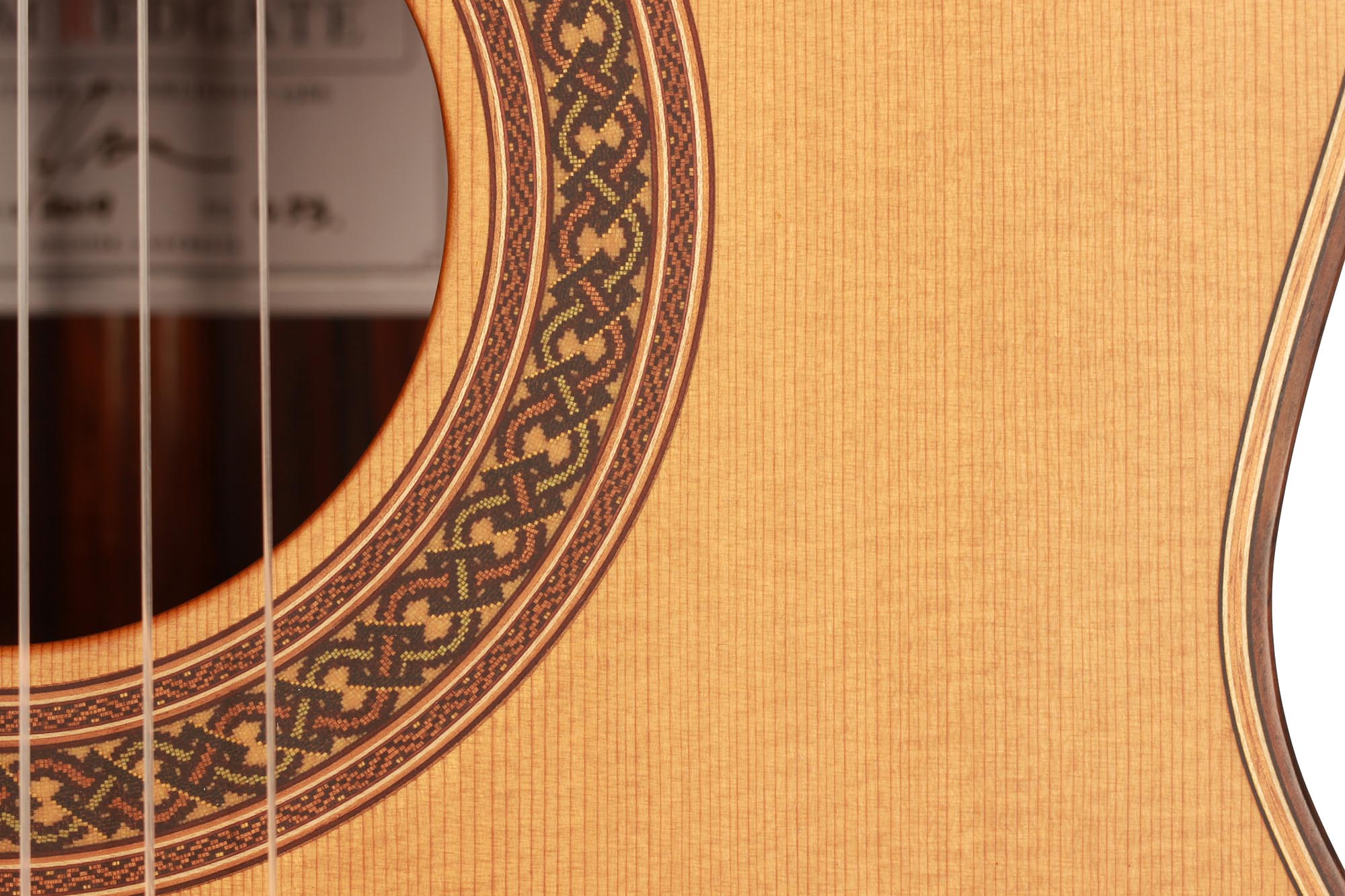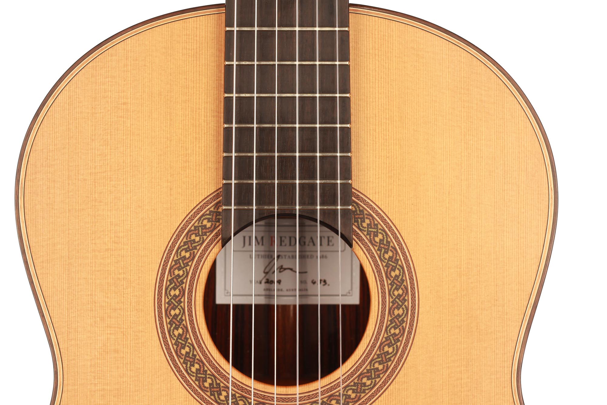 Jim Redgate is a highly sought-after Australian luthier, known for his guitars built for artists such as Ana Vidovic, Pepe Roméro and Odair Assad. This lattice-braced model is an exact copy of the guitar that Ana Vidovic plays. Jim Redgate's instruments have their own sound and touch. The breath-taking volume combined with rich harmonics and impressive clarity of sound are quite unique. The playability is fantastic, and the guitars are relatively light in weight compared to the Australian standard.