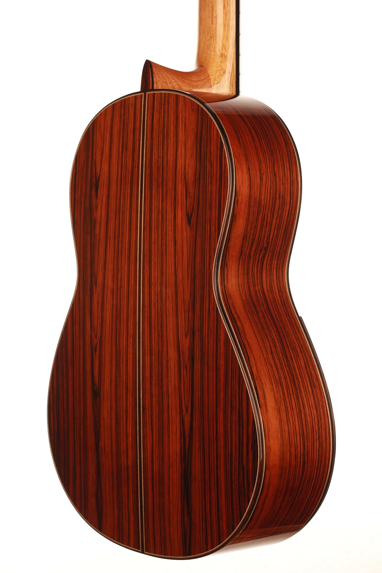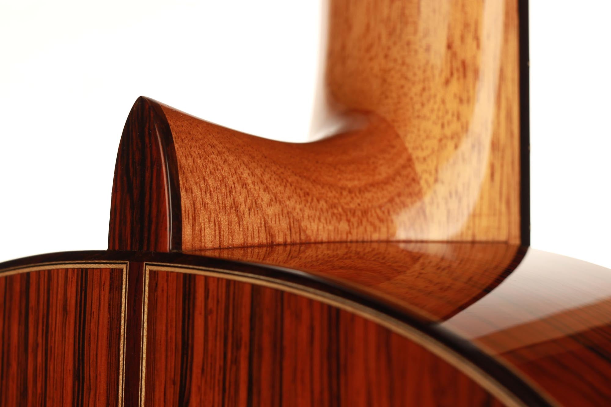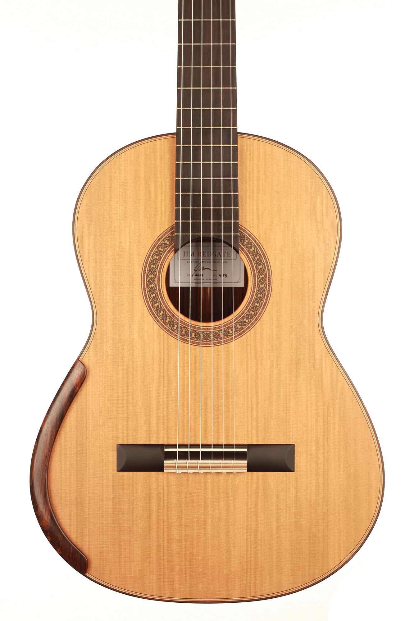 Jim Redgate is a highly sought-after Australian luthier, known for his guitars built for artists such as Ana Vidovic, Pepe Roméro and Odair Assad. This lattice-braced model is an exact copy of the guitar that Ana Vidovic plays. Jim Redgate's instruments have their own sound and touch. The breath-taking volume combined with rich harmonics and impressive clarity of sound are quite unique. The playability is fantastic, and the guitars are relatively light in weight compared to the Australian standard.