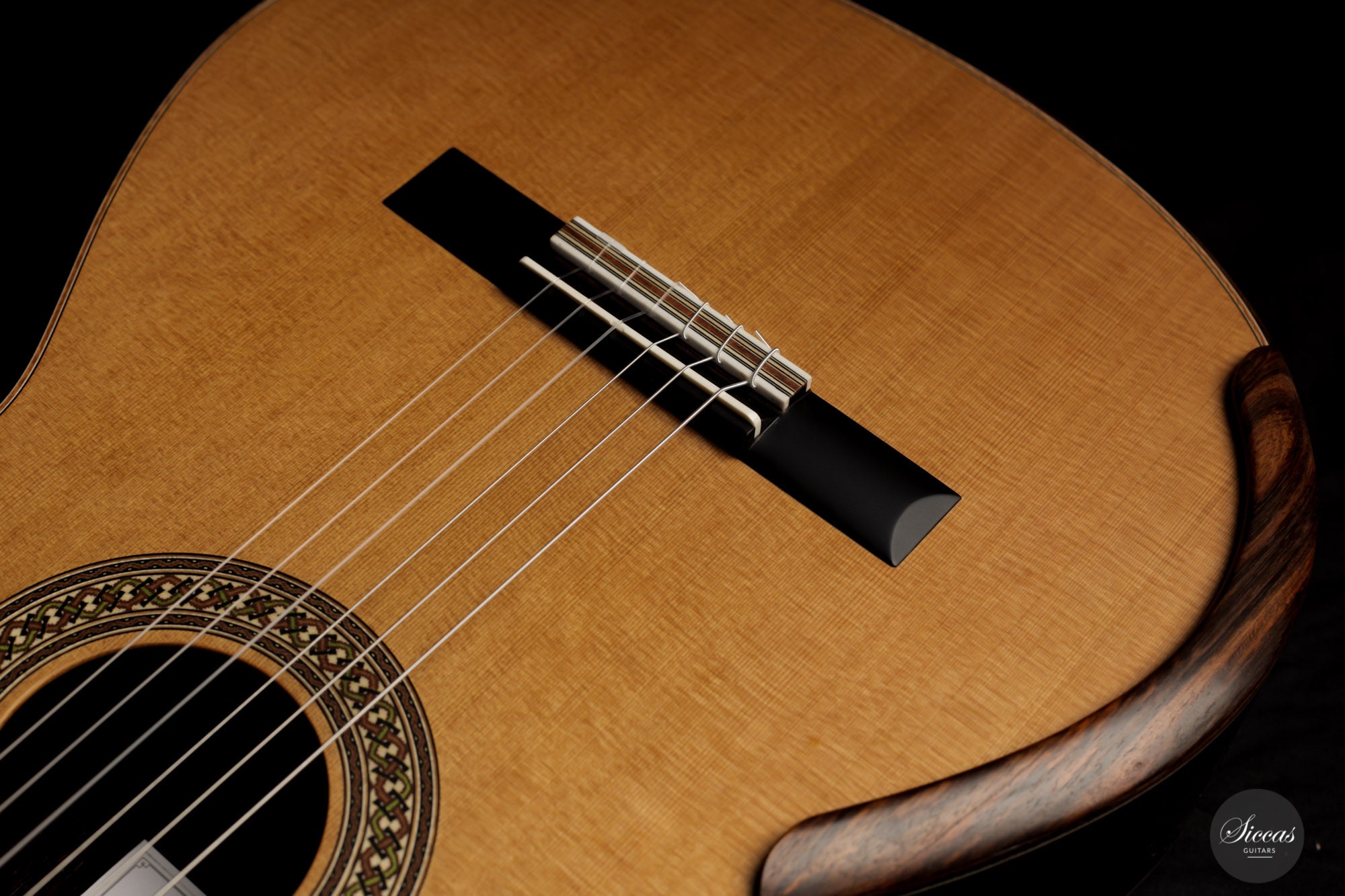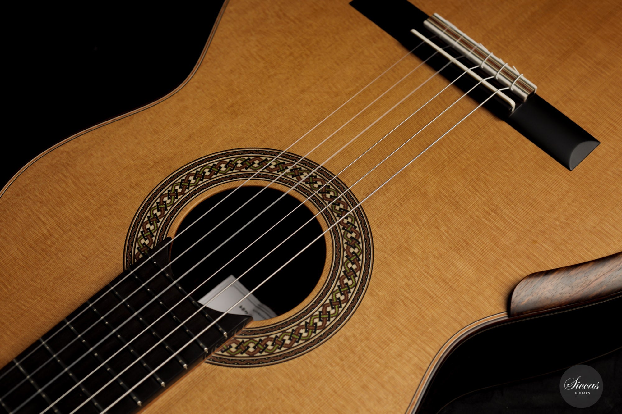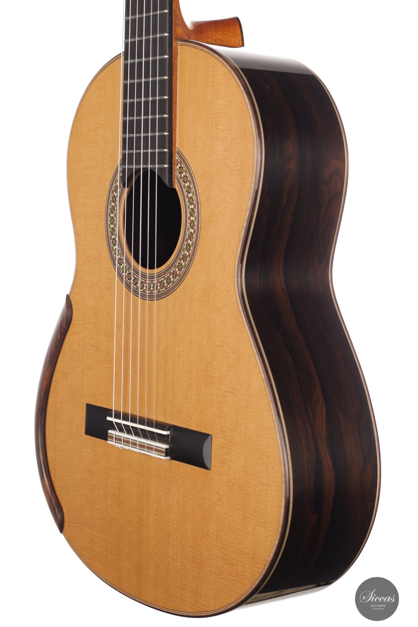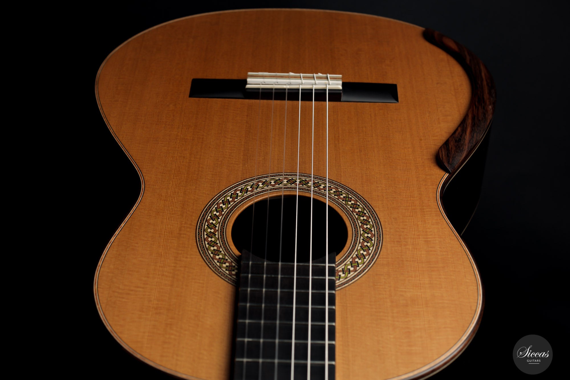 This lovely guitar number 489 is a true powerhouse. Figured ziricote back and sides add a real charm to the overall look, offering a delightful contrast to the cedar top and displaying a rich dark color. With tremendous volume, striking sustain, and spectacular tone quality, it is genuinely a dream guitar.