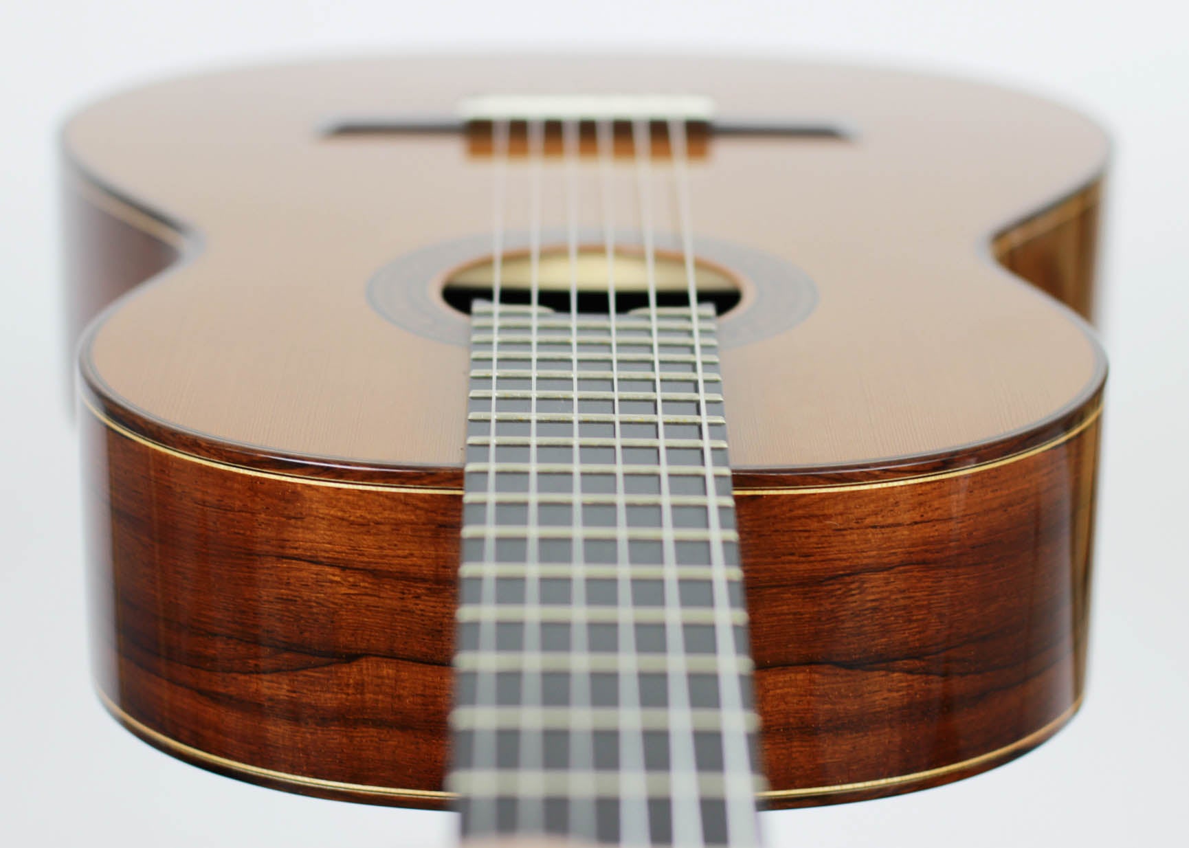 The classical guitar, with its soft nylon strings and characteristic timbre, has become a symbol of chamber music, Spanish tradition, and concert repertoire. Its modern form was shaped by Antonio de Torres in the 19th century, setting the standard for the body, fan bracing, and the 65-centimeter scale length that are still used today. Instruments in this category open up a rich palette from the refined Romantic miniatures of Tárrega to the majestic concertos of Rodrigo. Here you will find guitars that preserve historical continuity and at the same time inspire new interpretations.Look all products of the collection -