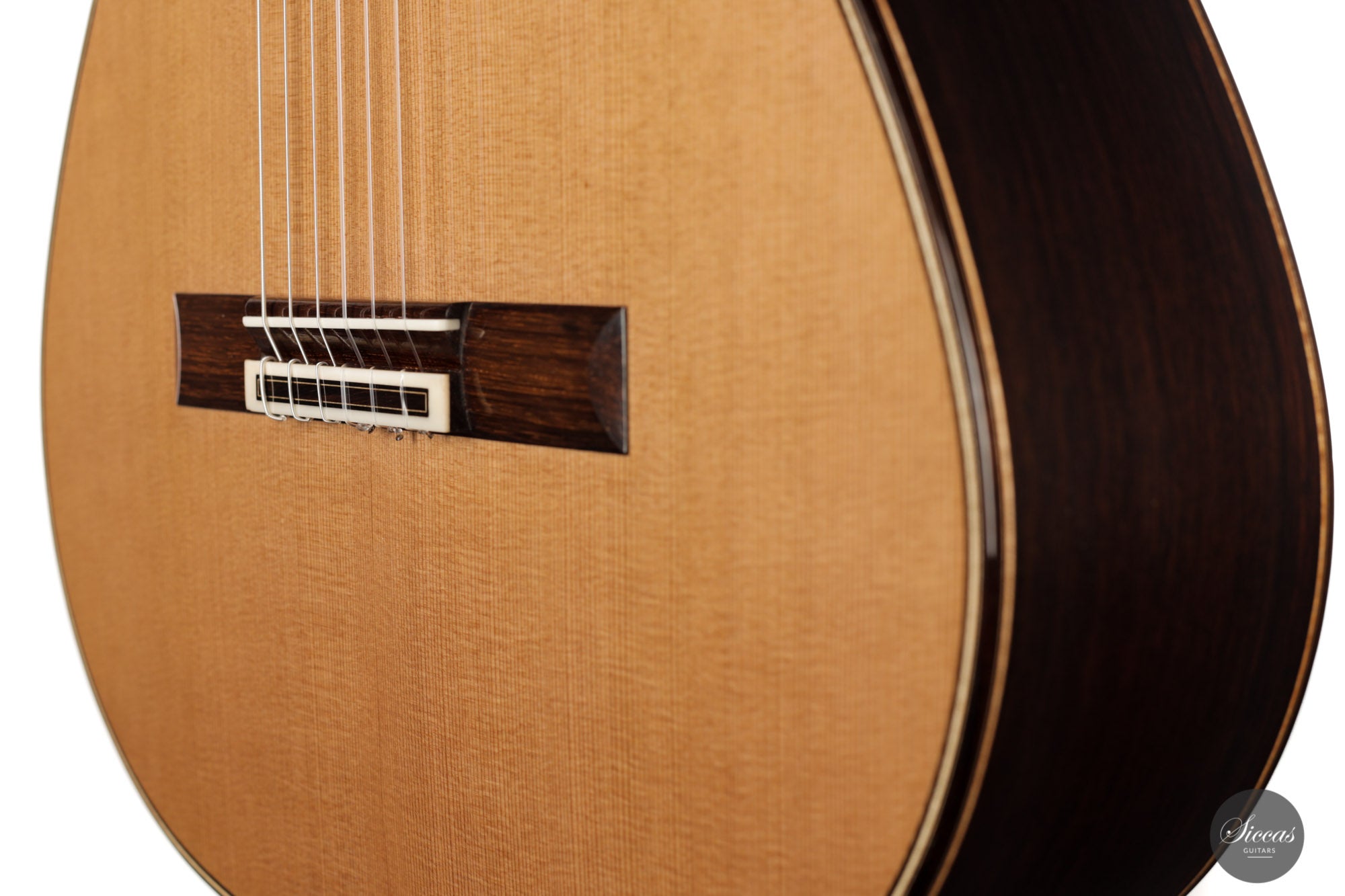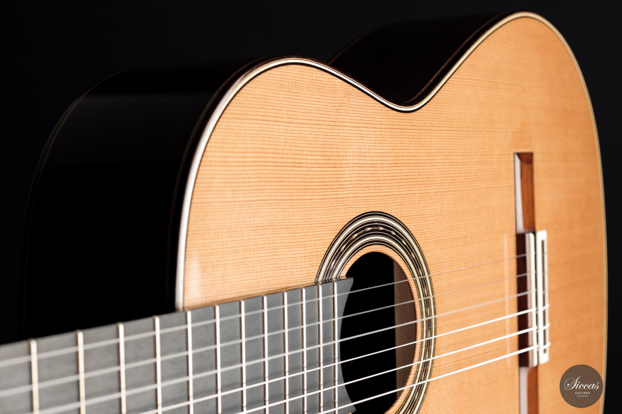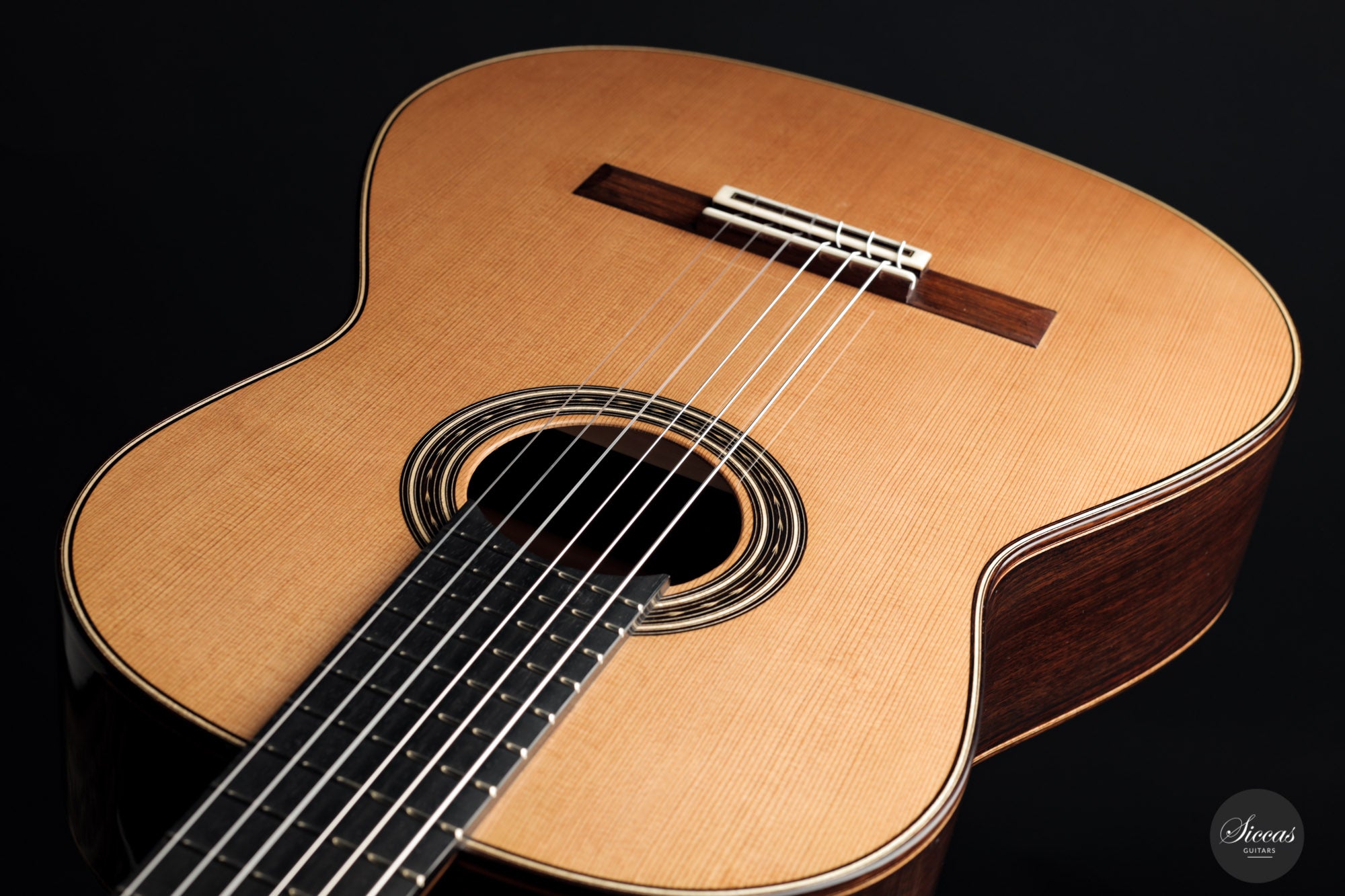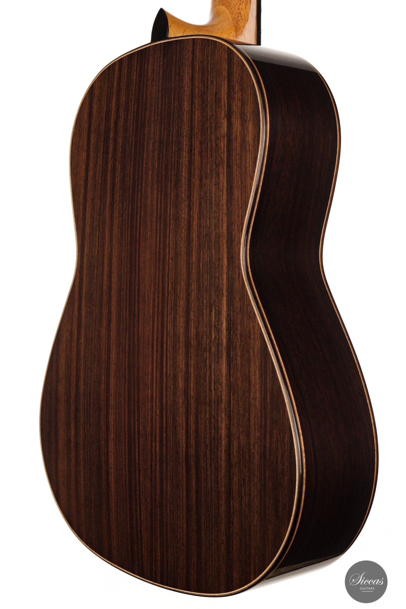 Diese wunderbare Gitarre kommt direkt aus Johans Werkstatt und ist schlichtweg bezaubernd. Mit ihrer Zederndecke mit Gitterstreben und doppelten Zargen aus indischem Palisander/Zypresse verfügt sie über einen sehr natürlichen und warmen Klangcharakter. Der dunkle und geschmeidige Ton ist faszinierend und verleiht den Diskantsaiten eine außergewöhnliche Behaglichkeit und Anmut. Es ist deutlich spürbar, dass Johan die Form und die Größe des Halses auf größtmöglichen Komfort hin optimiert hat, so dass man sich als Spieler jederzeit unterstützt fühlt. Es handelt sich insgesamt um ein wunderbares Instrument mit einer charismatischen Ausstrahlung, von einem sehr fachkundigen und fähigen Gitarrenbauer, der auf dem Besten Weg ist, sich in der klassischen Gitarren-Szene langhaltig zu etablieren.