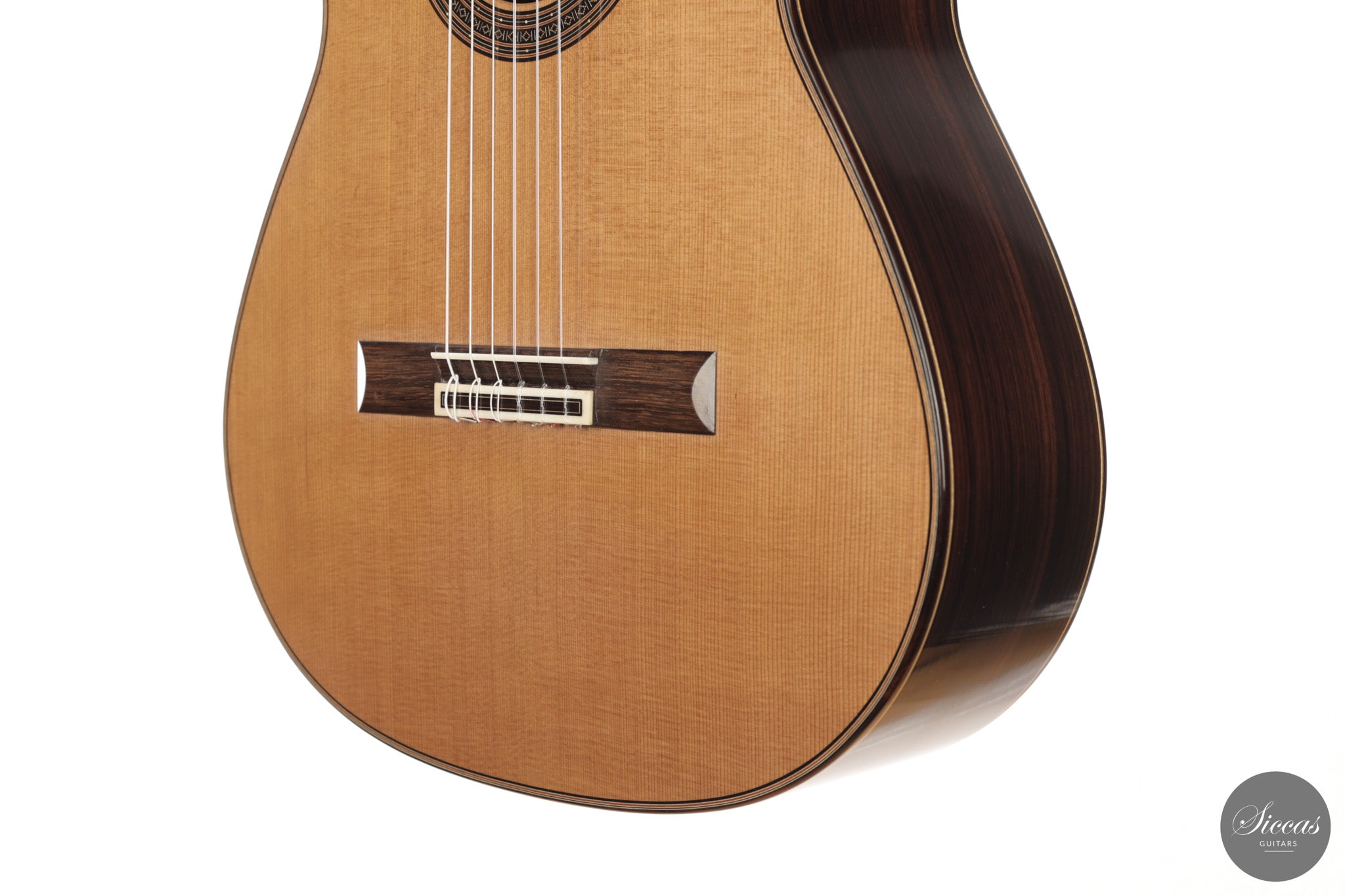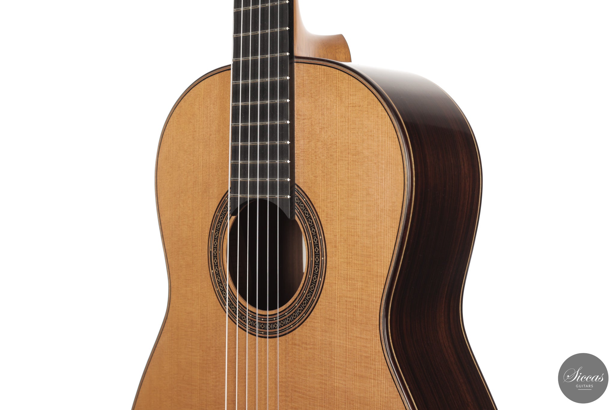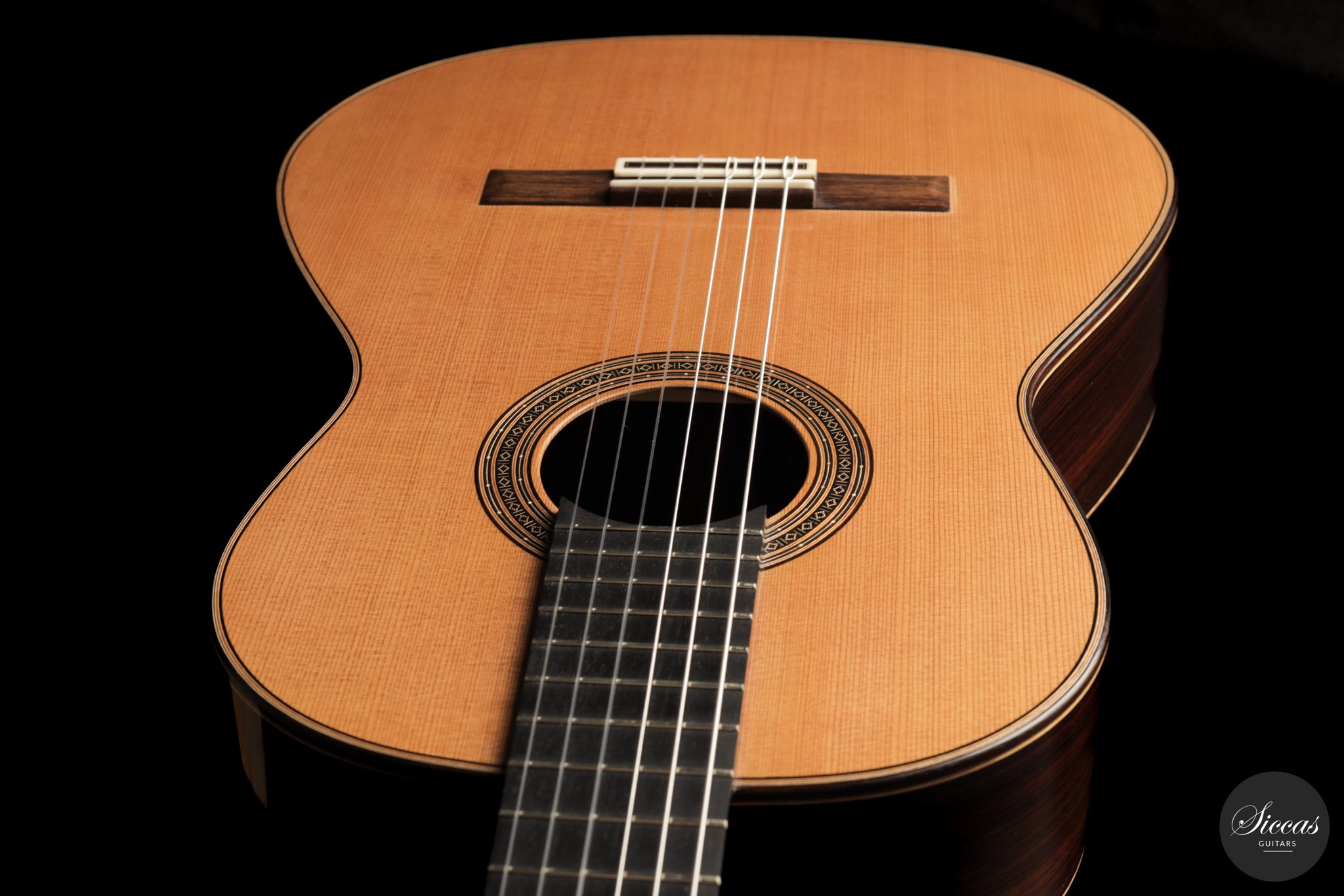 This combination of fast response, overtone richness and a warm tonal colour gives the instrument a wide dynamic range while preserving clarity in the voice. The result is a responsive modern concert guitar that allows subtle control of articulation and colour.
