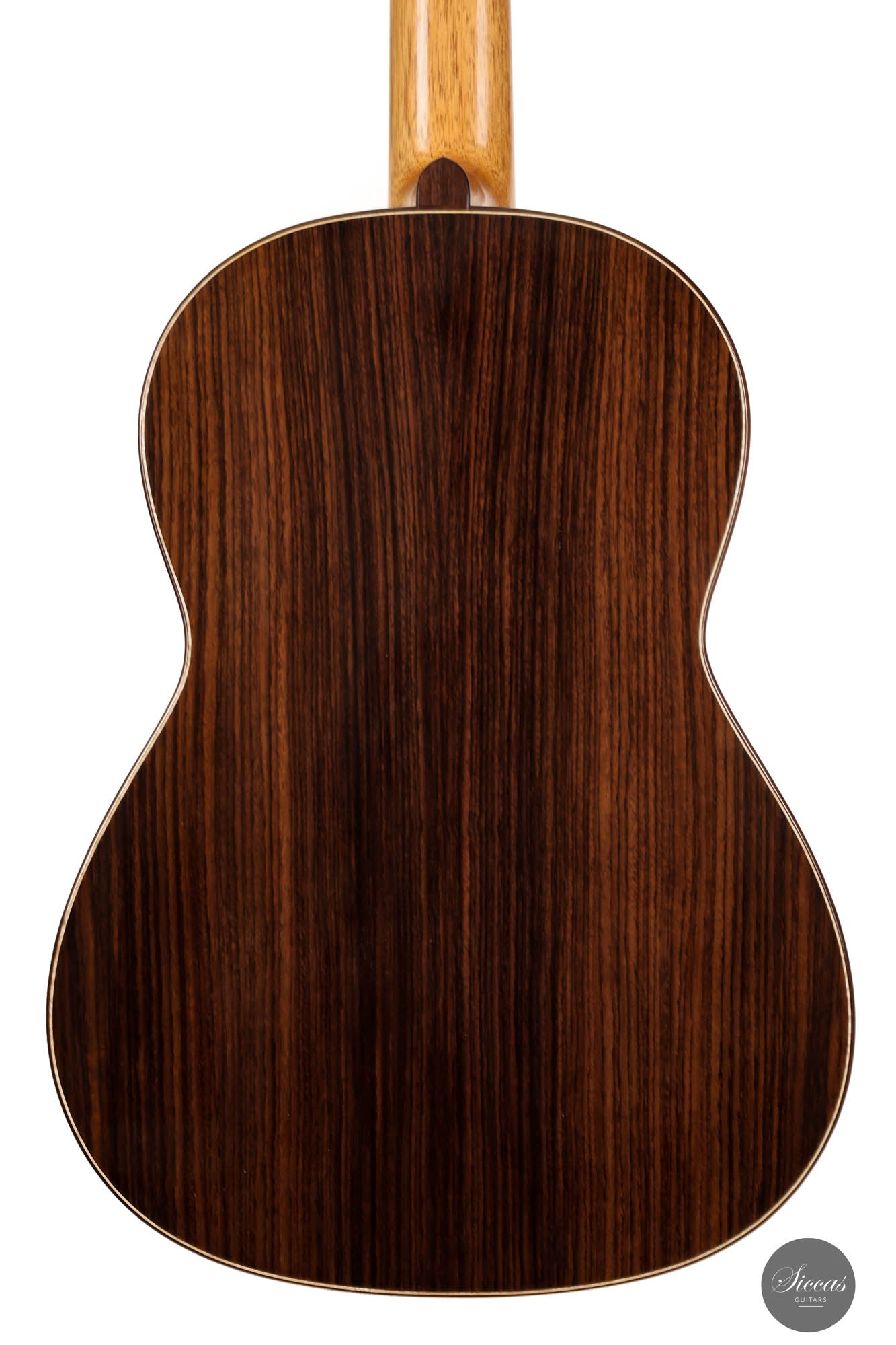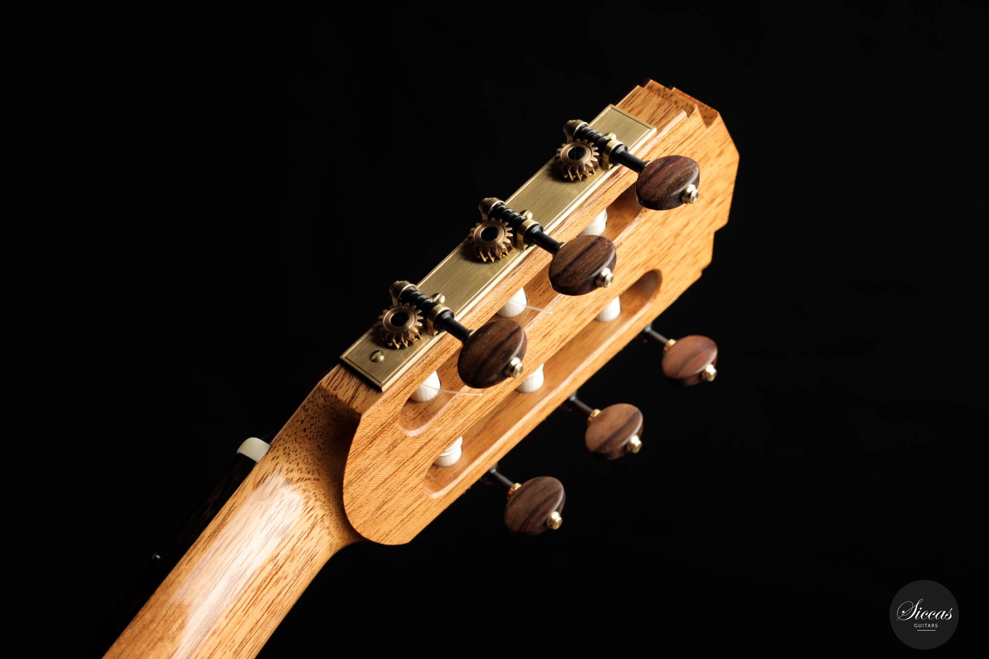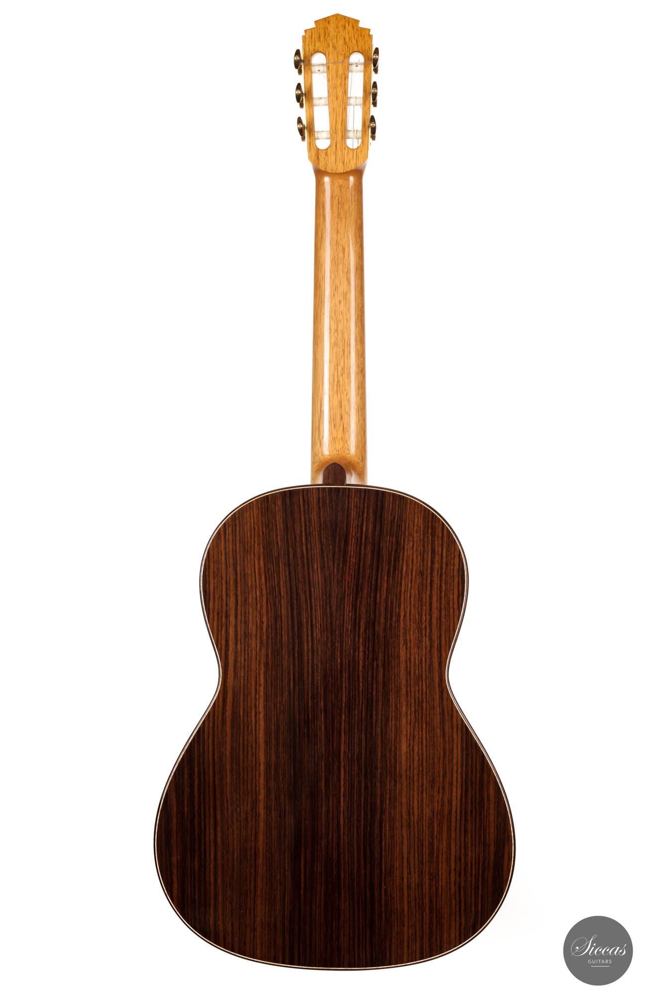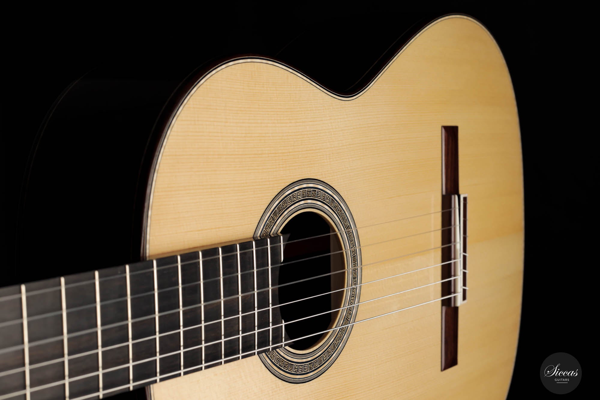 This beautiful instrument is a unique combination of a traditional Spanish guitar and a modern concert classical guitar. It has a traditional design that Jose L. Romanillos heavily influenced. Yet, it also features some modern elements in contemporary guitar making, such as elevated fingerboard, significant volume and projection, and excellent playability. This guitar displays Johanna's very high level of craftsmanship and artistry. The spruce soundboard was tuned to the F/F#, creating deep and hunting bass characteristics. Meanwhile, the crystal-clear trebles match the overall voicings in a charming proportion. This fine instrument is a true concert guitar that will fulfill the need of a guitarist of any level and for any concert situation.