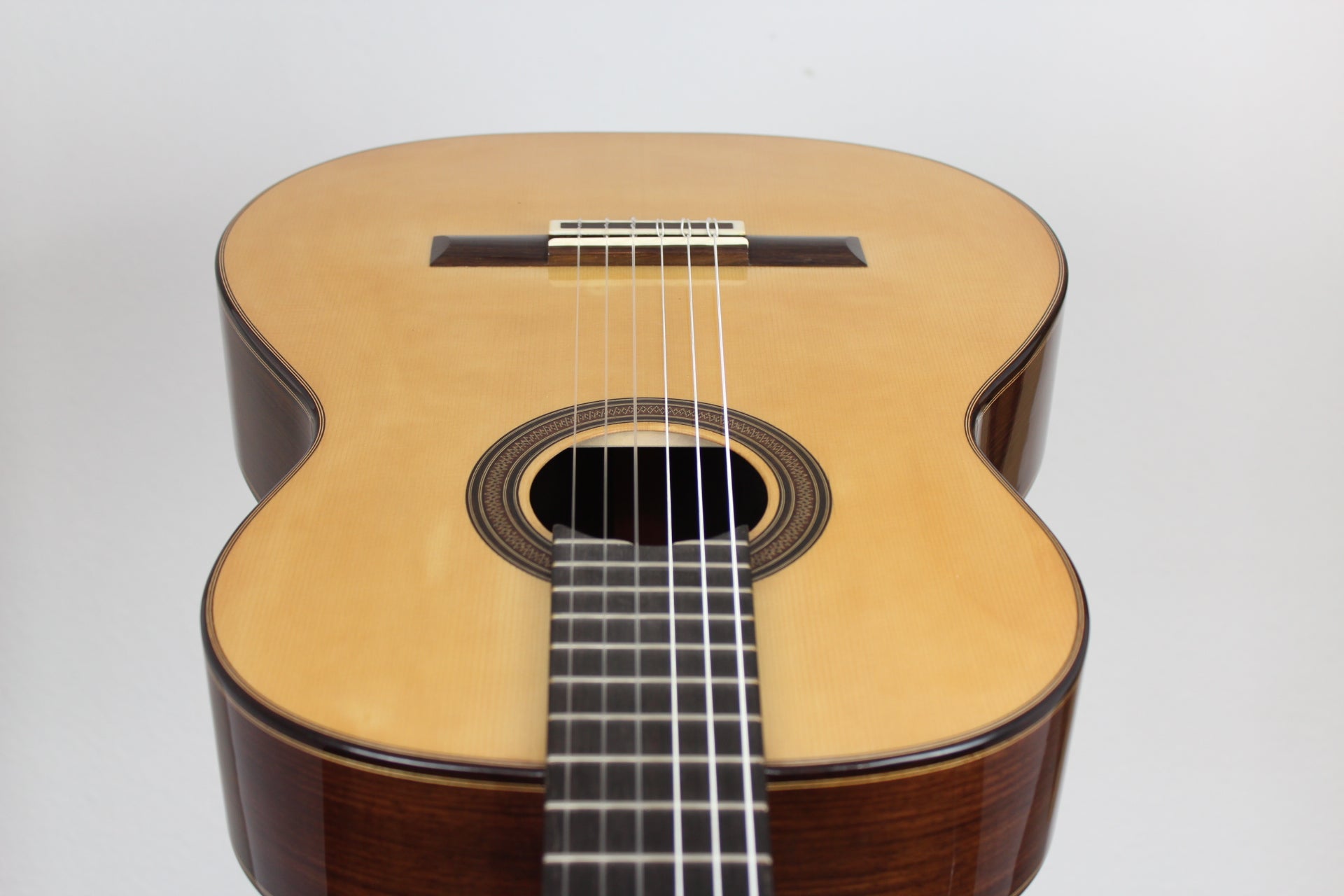 Luthier: José Luis RomanillosConstruction Year: 1979Construction Type: TraditionalTop: SpruceBack and Sides: Indian rosewoodSoundboard Finish: French polishBody Finish: French polishAir Body Frequency: G / G sharpWeight (g): 1410Tuner: Klaus SchellerCondition: Excellent