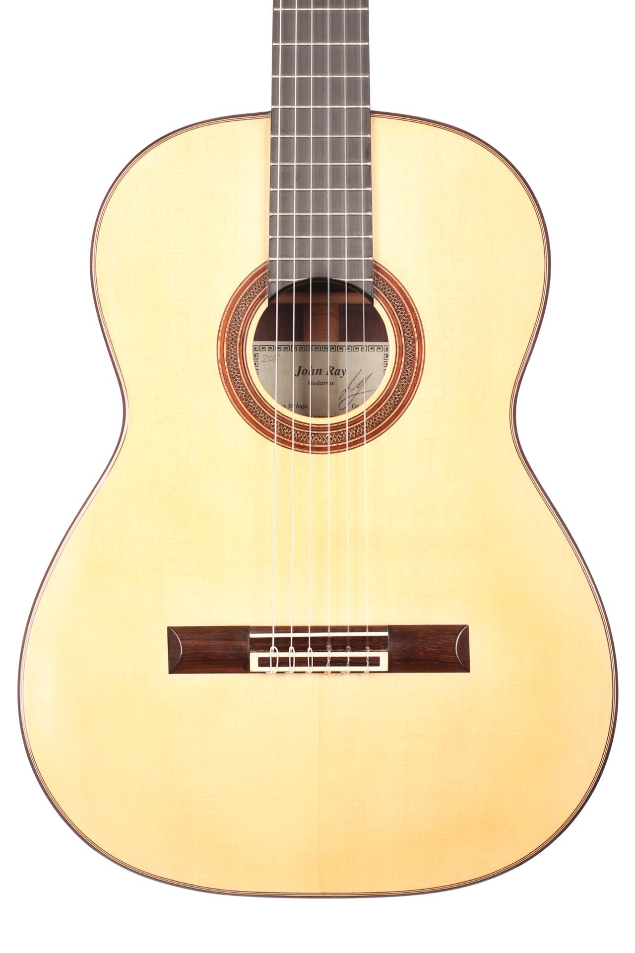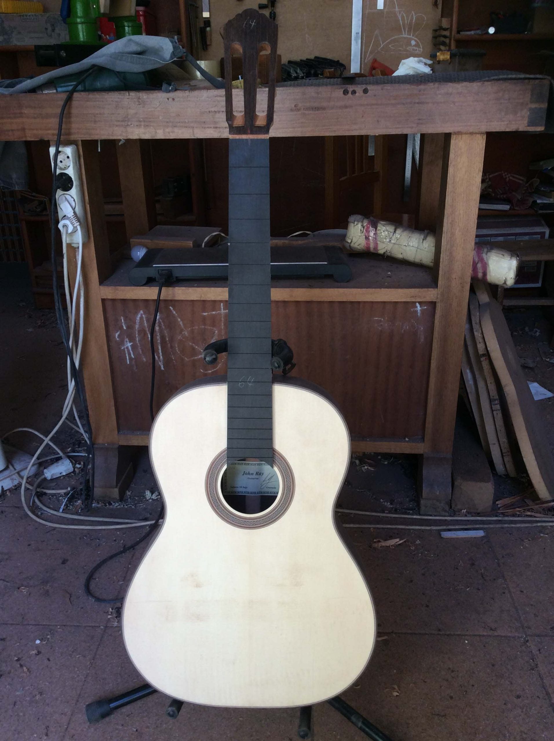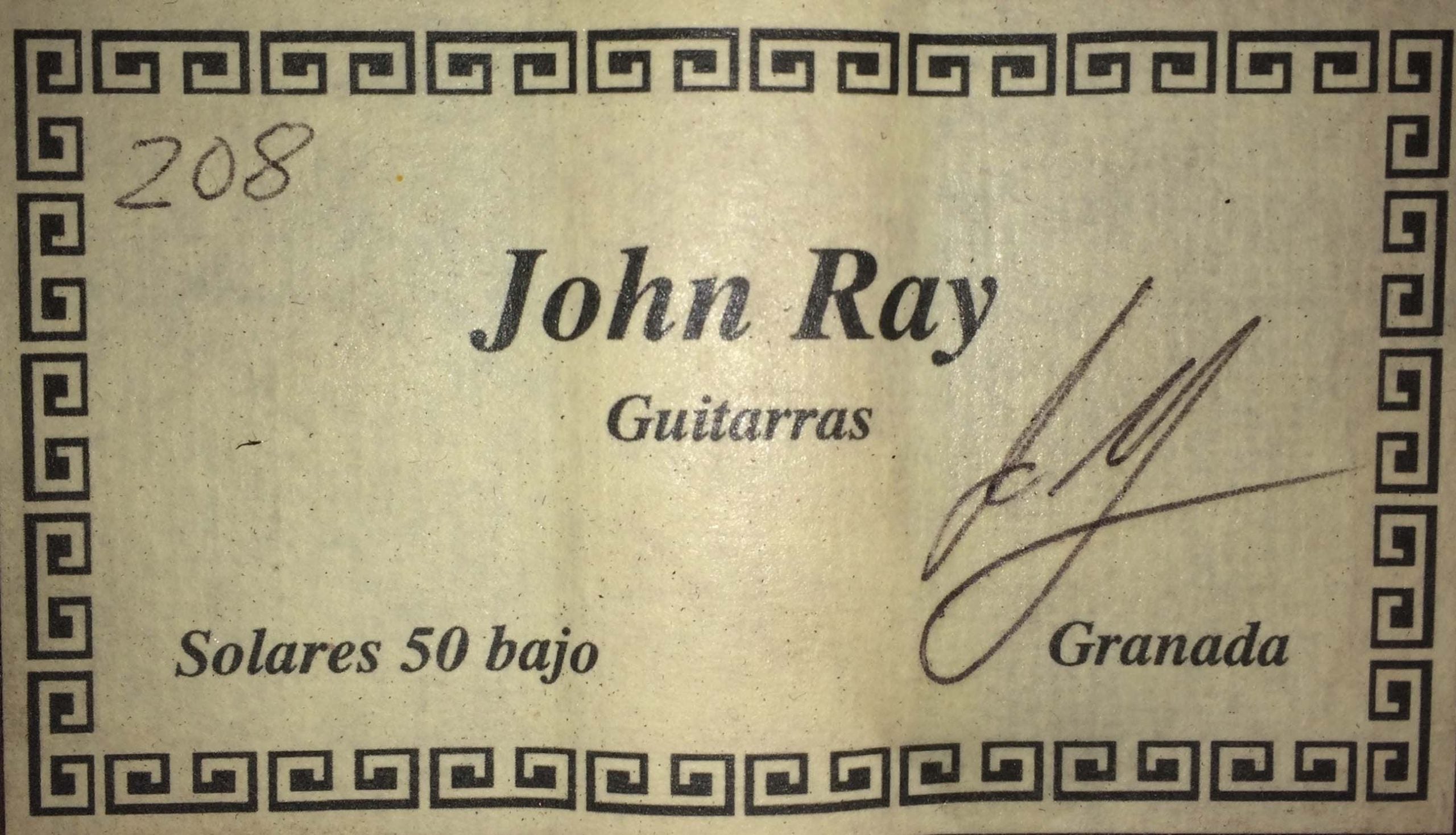 Originating from Canada, John Ray came to Granada in 1989 to learn the profession of a guitar maker. He was able to learn a lot from the local luthiers, especially from the German guitar builder Rolf Eichinger, who had emigrated to Granada as well, to commit himself to guitar making. Furthermore, John restored a lot of guitars made by great masters, as for example Miguel Rodriguez, Vicente Arias, Manuel Ramirez and Salvador Ibañez. Today his guitars are well known among professional guitar players.
