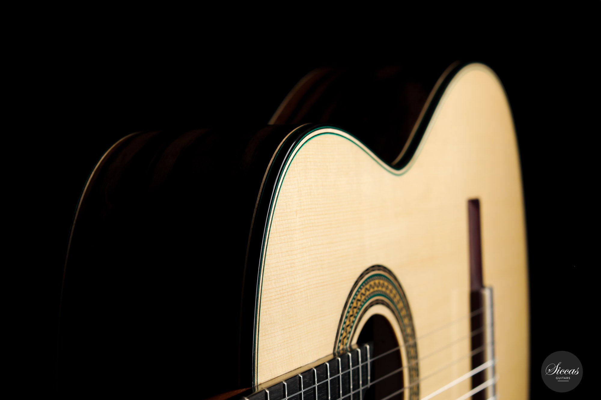This concert guitar with its modern construction has a very interesting concept: a double top made entirely of wood, consisting of spruce and balsa, offering power, richness, and responsiveness without the use of composite materials. The ebony back and sides are the perfect resonator for this very light top, projecting the sound efficiently towards the audience. The playability is excellent and the volume of sound is very impressive. This Marques is an excellent concert guitar with double top construction at a very attractive price.