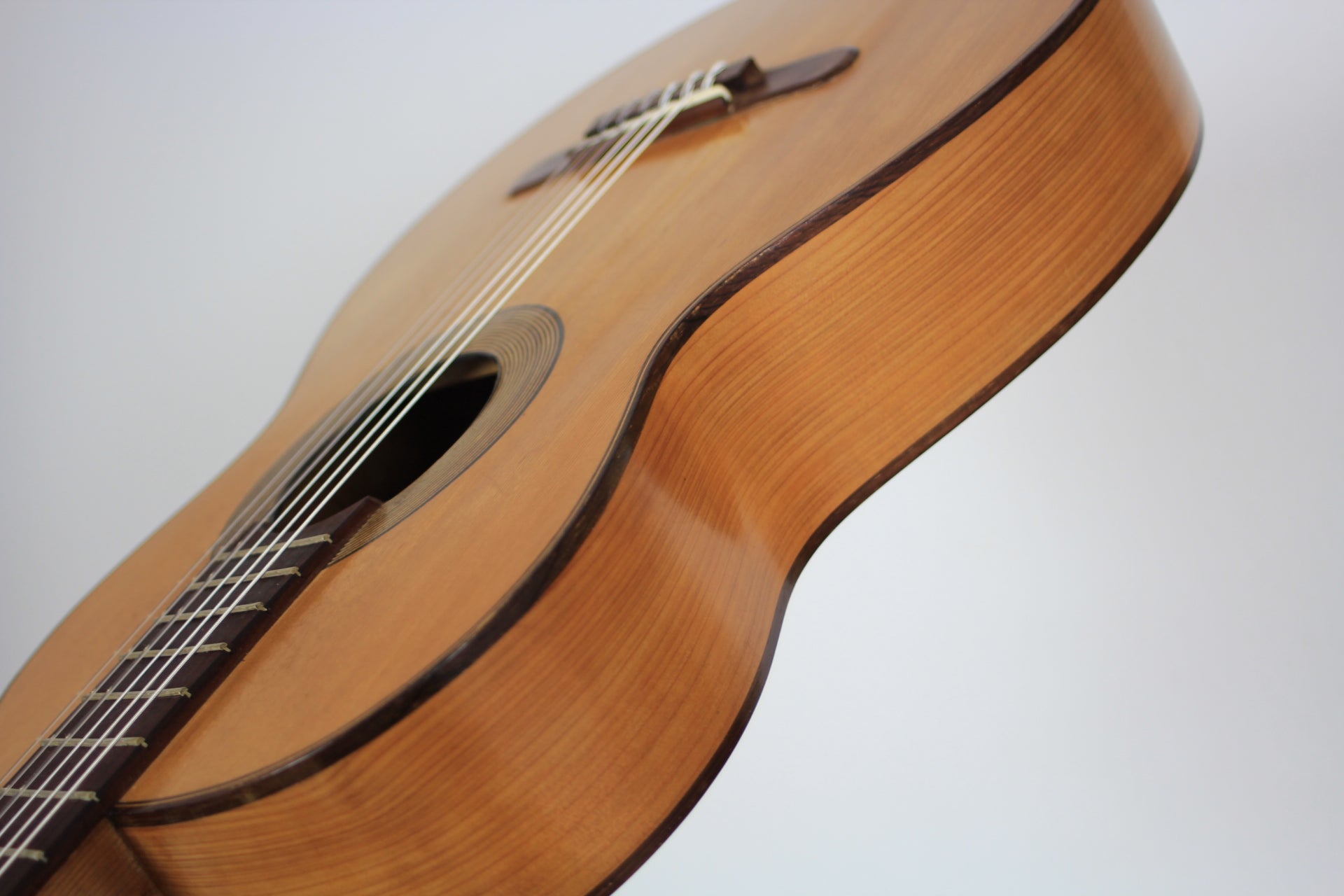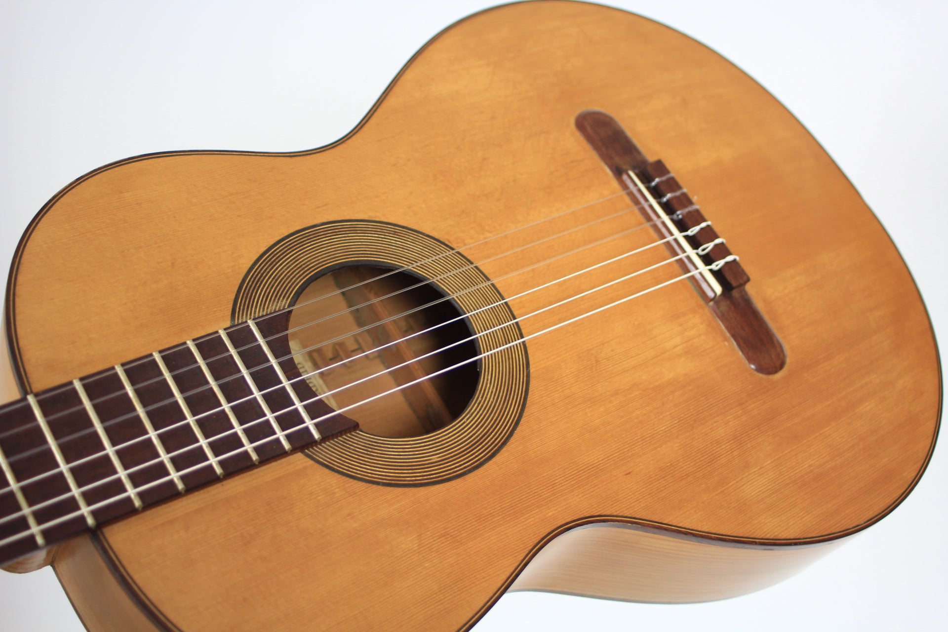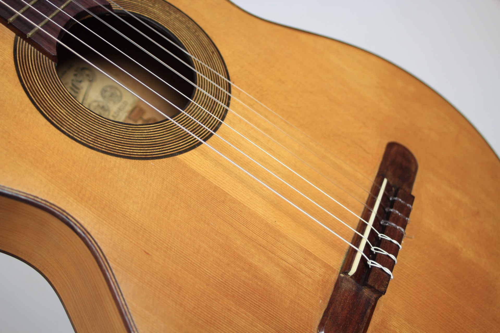 The House of Ramirez contructs since 1882 fine and high quality guitars. These instruments were and are played by the greatest guitarists of the world like Julian Bream, Andres Segovia, Laurindo Almeida, Oscar Ghiglia, Jose Luis Gonzales and many more. This guitar has like most flamenco guitar a spruce top, sides and back are made of cypress. This is a very special guitar with a very bright, silvery and voluminous tone. Very good condition.