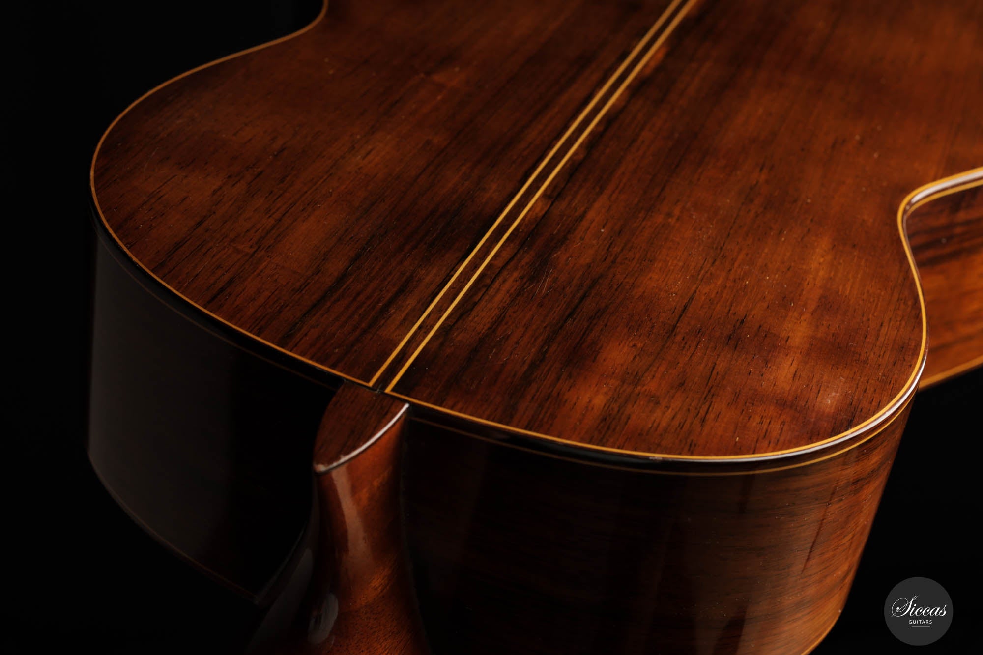 Despite the superficial hairline crack on the upper bout bass side, the guitar's sound quality remains uncompromised. Far from detracting from the guitar's appeal, this minor imperfection adds an authentic charm, telling a tale of its rich history and careful preservation. It bears testimony to the guitar’s longevity and the meticulous care that has gone into preserving it over the years.