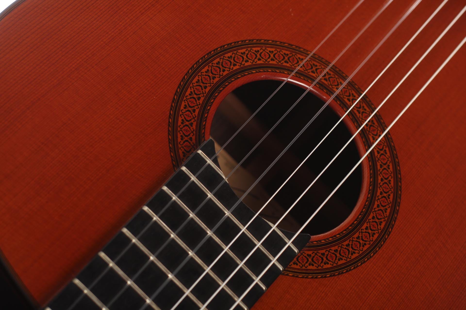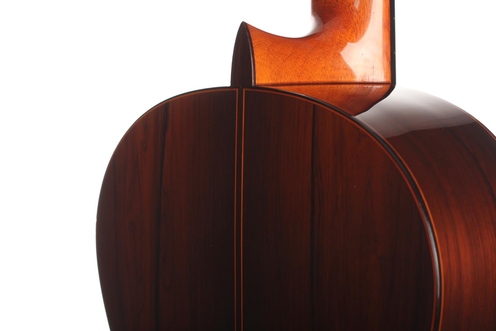 This guitar was built in 1971 and has a cedar top and stunning CITES-certified Brazilian rosewood back and sides. The ample basses are very strong, warm and responsive. The balance between bass and treble is excellent and the sympathetic resonances are supporting the mediums to give a very complete instrument. The guitar is in near original mint condition with only a very few superficial playing marks. Altogether, the original condition of this guitar and its beautiful sound makes it very interesting for both players and collectors. The tuning machines are made by Fustero. The original hard-shell case is included.
