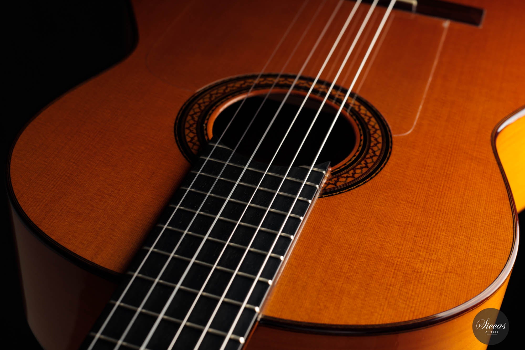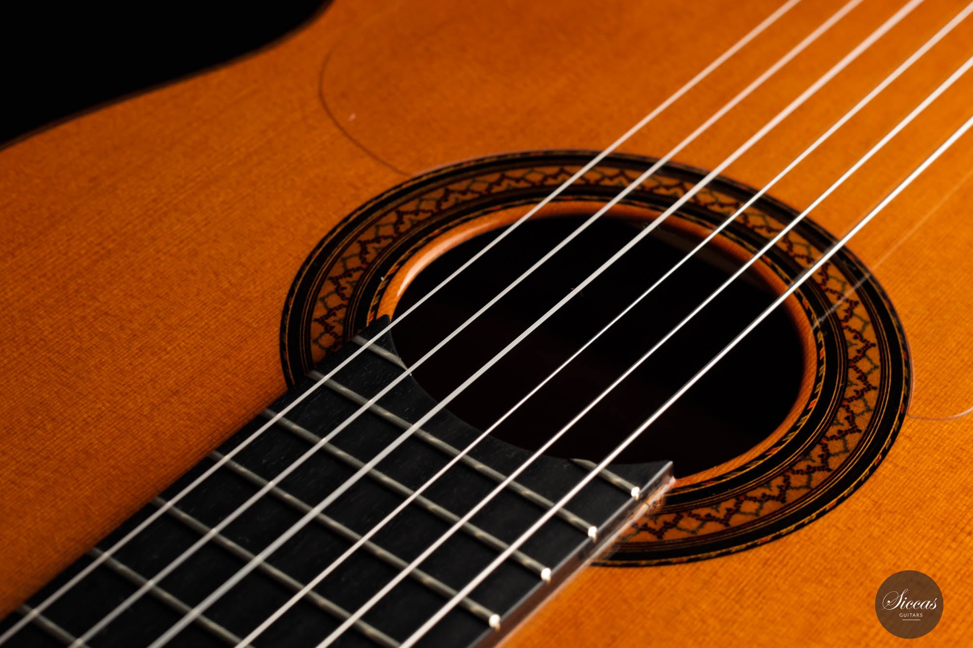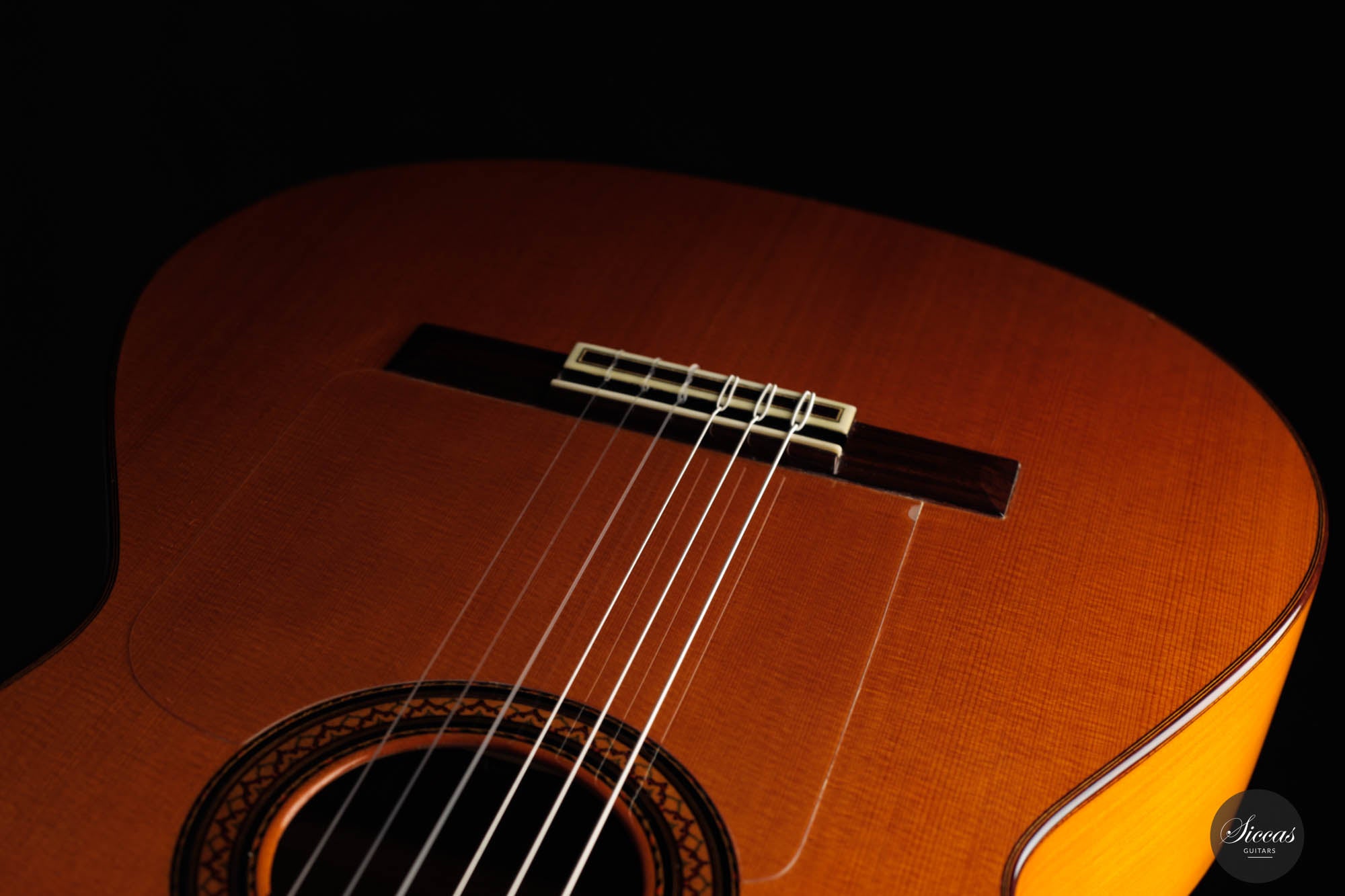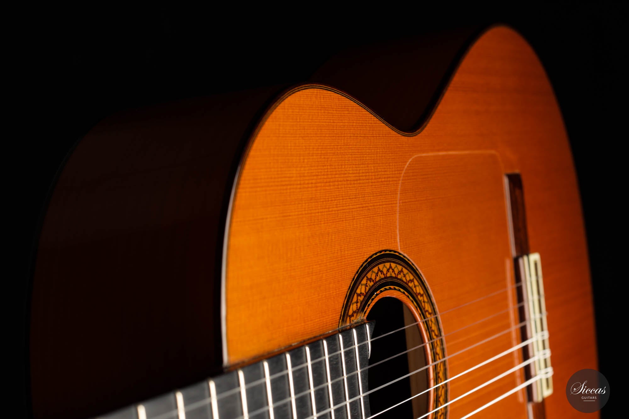 José Ramirez III (1922-1995) was a pioneer of cedar tops for guitars. His instruments gained international fame in the 1960s through Andrés Segovia and his many students. Starting in 1965, José Ramirez III began developing a new instrument built with a top made of Western Red Cedar (Thuja plicata) and featuring double sides (rosewood and cypress). This revolutionary new way of building guitars and the use of this innovative type of wood spread very quickly in the guitar world. In addition, Andrés Segovia played several J. Ramirez III as his main concert instrument. He played four instruments over an extended period of time [1962 (but dated 1963), Spruce, 1965, 1967, 1969 (all three cedar)].