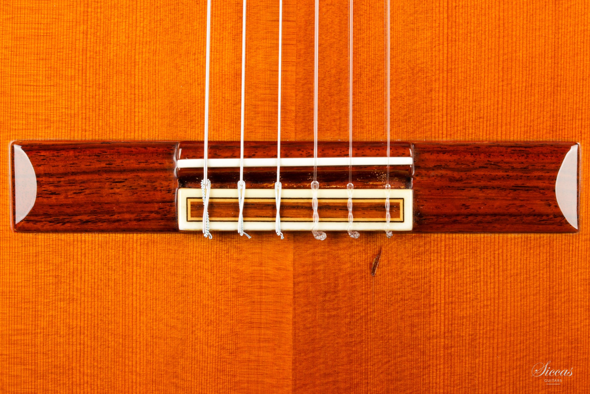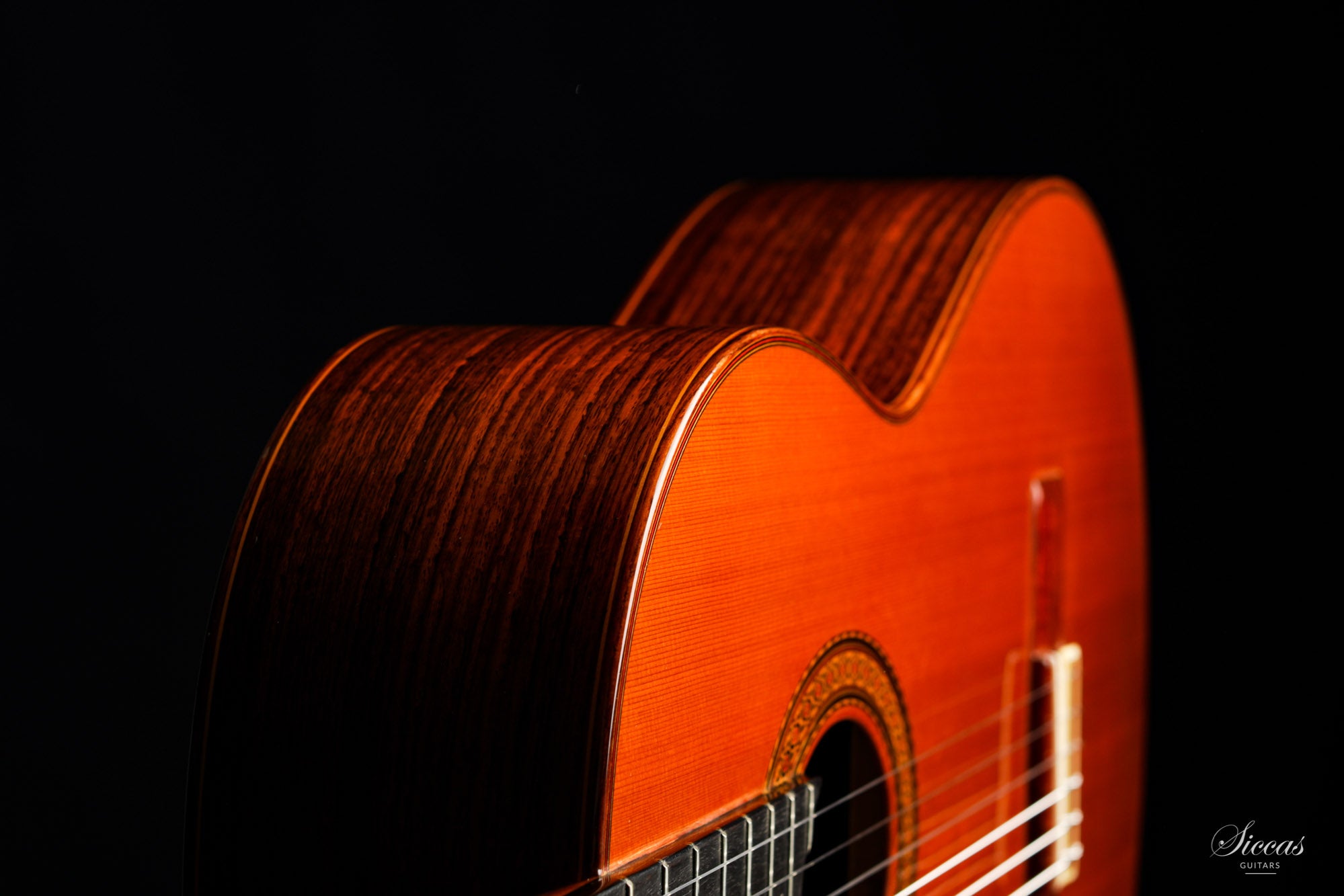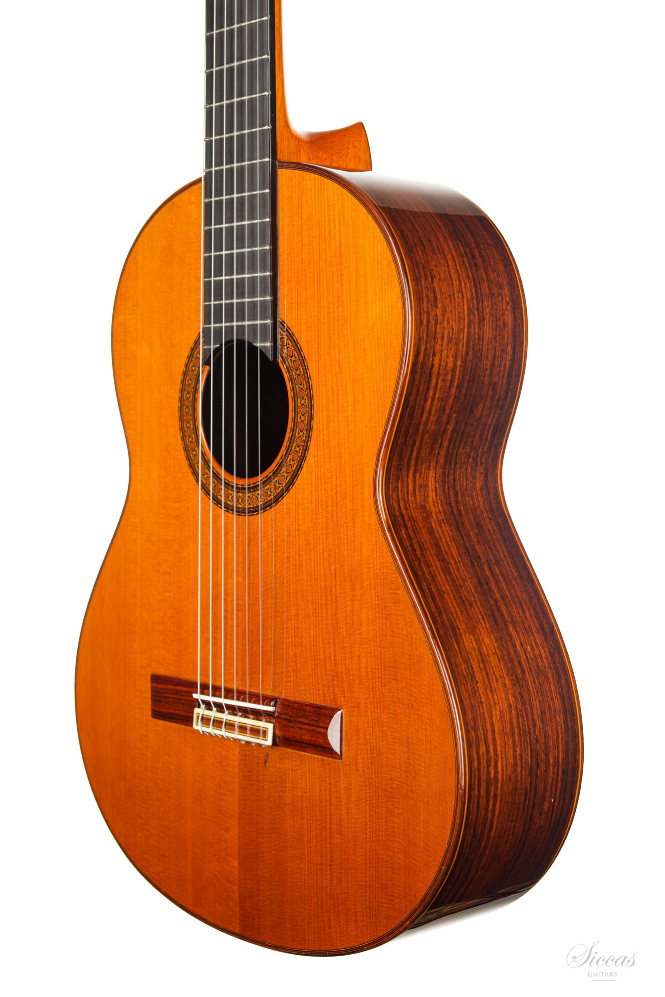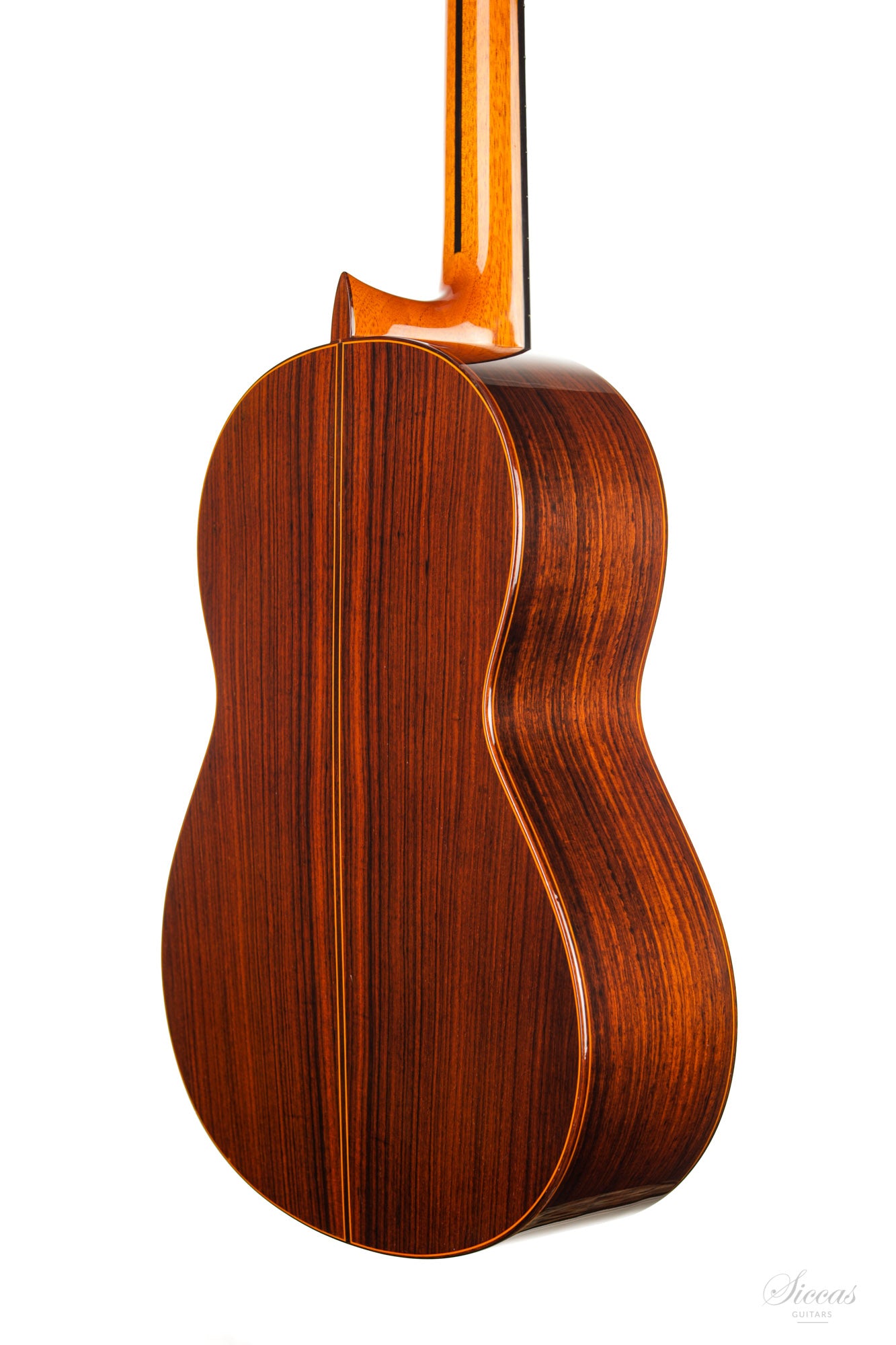 The charming sound is very refined, rich and delicate. It is a complete guitar with a very high level on every aspect expected from a concert guitar: quality of tone, sustain, sympathetic resonances, contrast and balance as well as power. This is a rare and outstanding instrument.