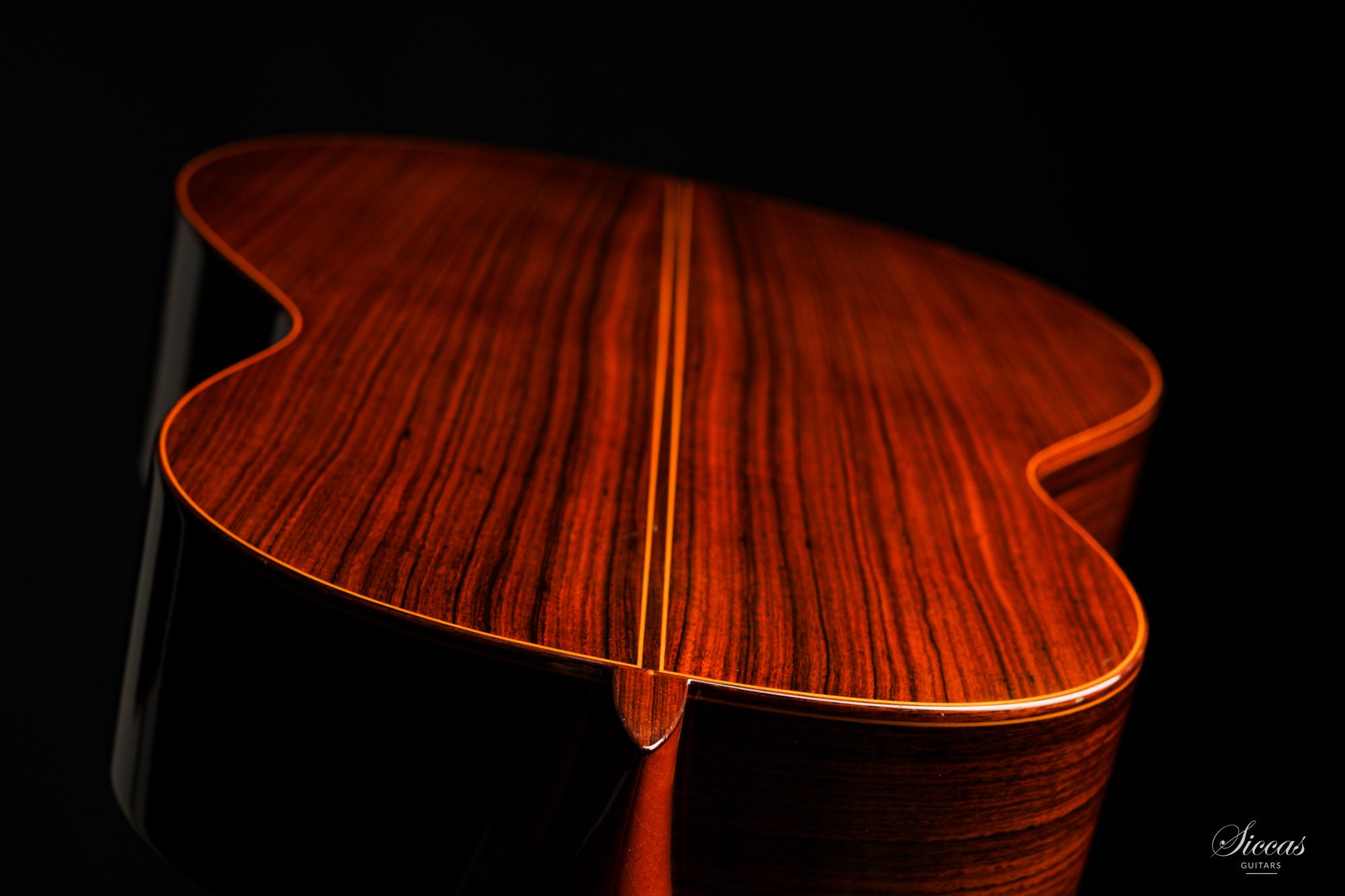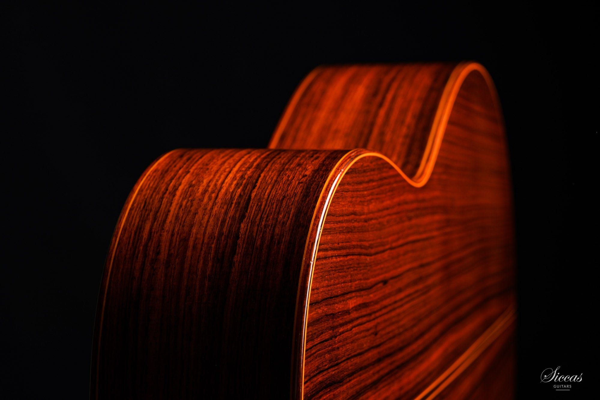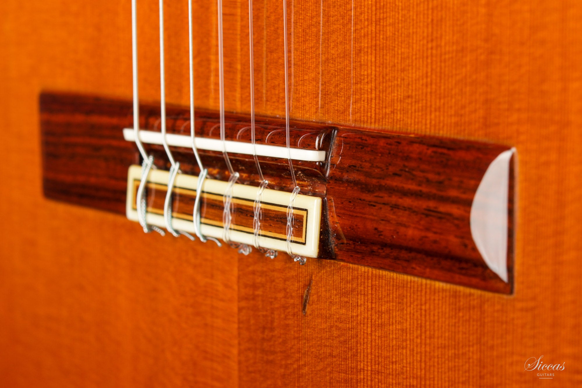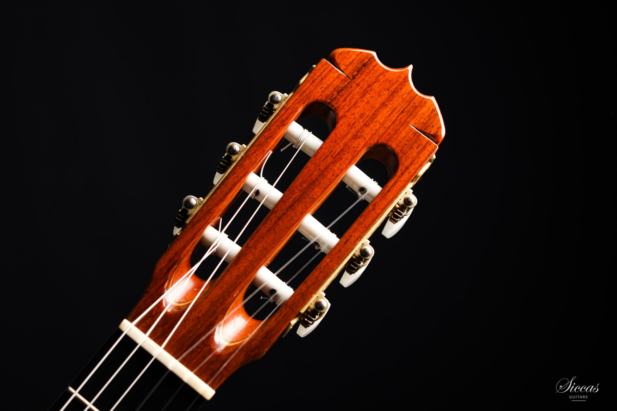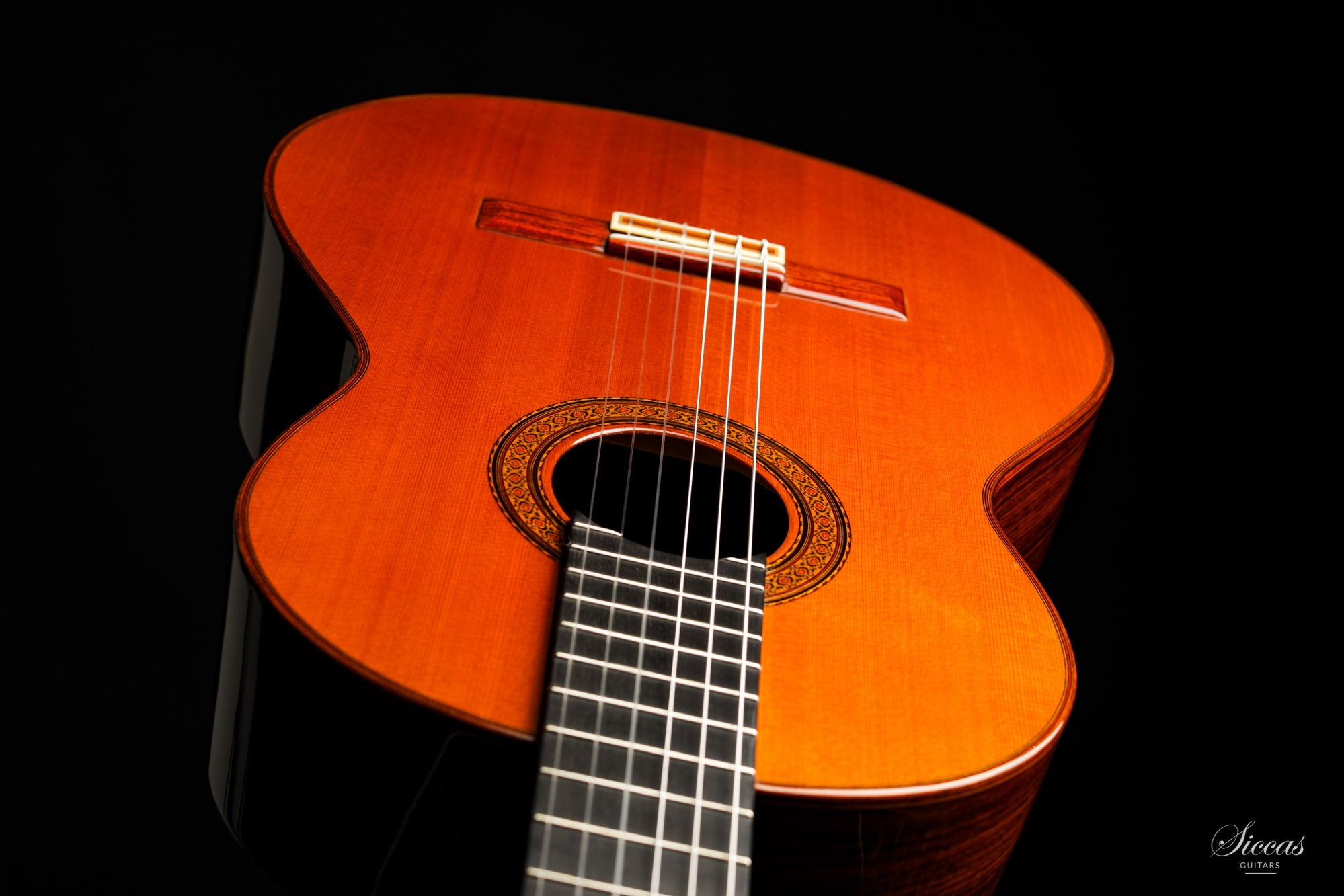 The charming sound is very refined, rich and delicate. It is a complete guitar with a very high level on every aspect expected from a concert guitar: quality of tone, sustain, sympathetic resonances, contrast and balance as well as power. This is a rare and outstanding instrument.