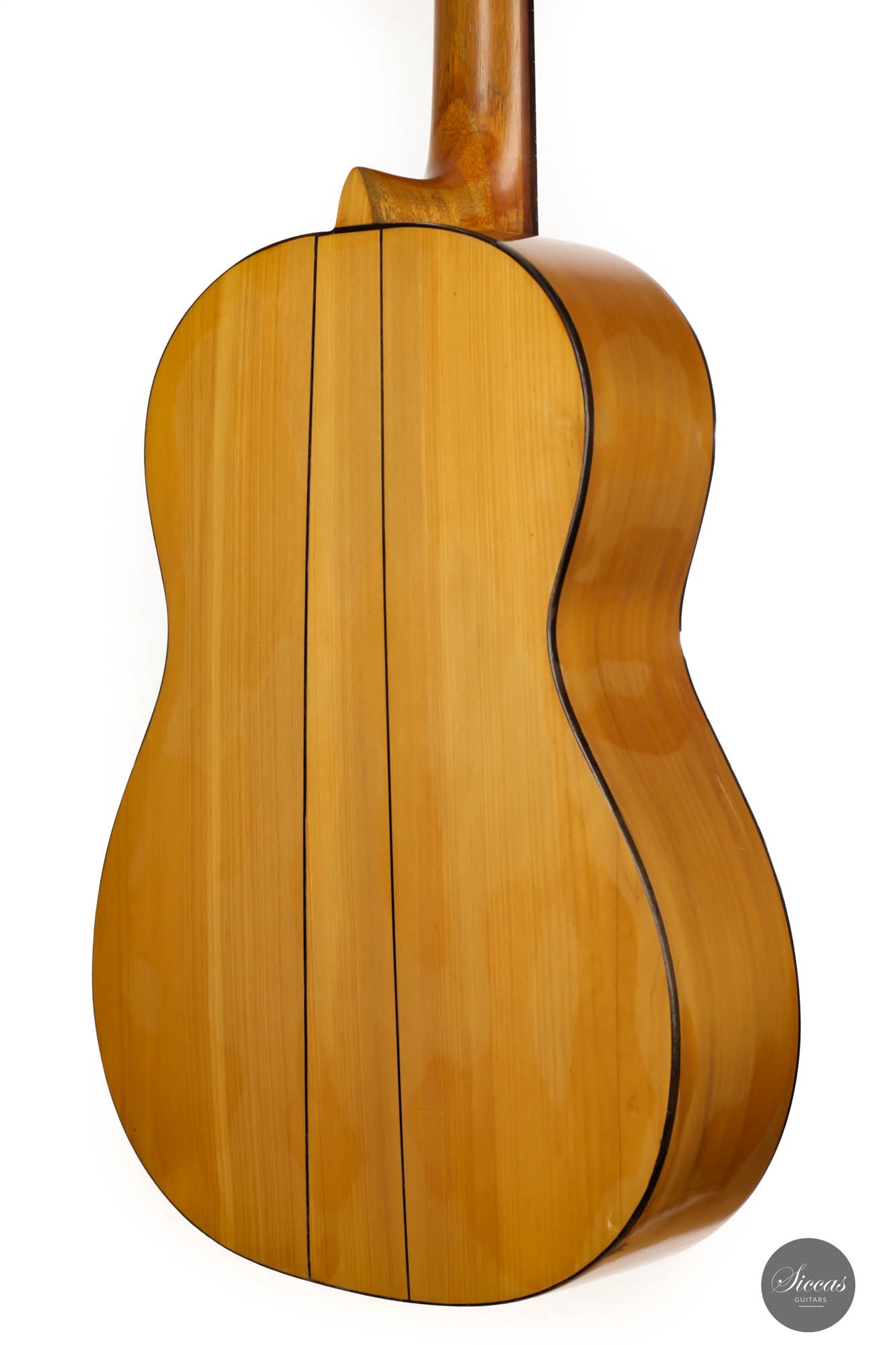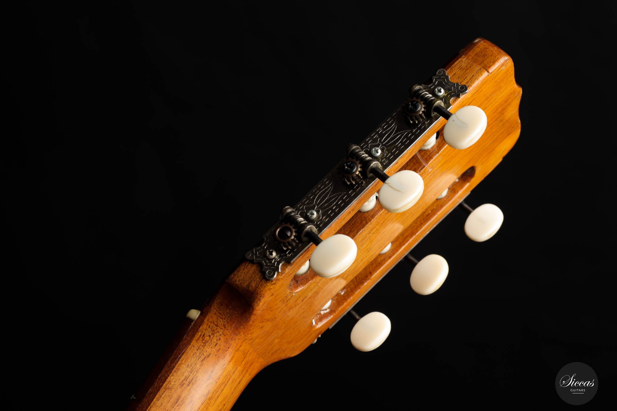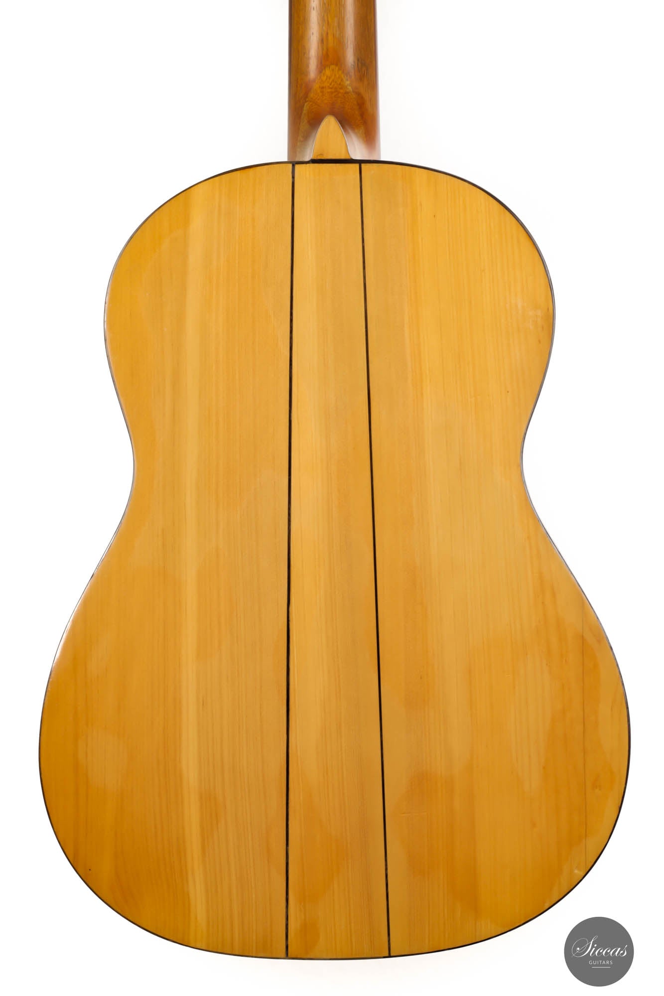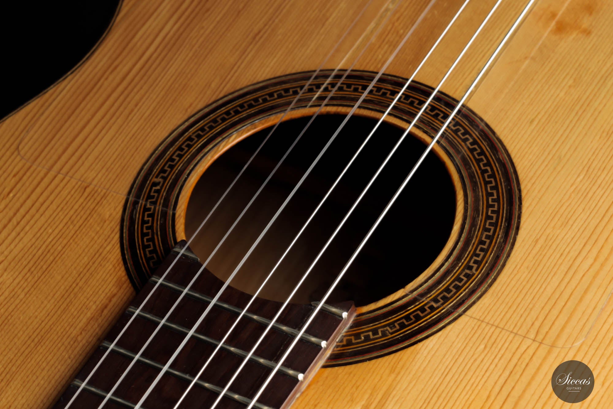 This instrument built in 1941 is a fantastic guitar that exemplifies and represents the special merit of the Ramirez workshop despite the difficult times during the Spanish Civil War. It is a simple yet attractive instrument which responds quickly to the right-hand attack with its bright, silvery, and voluminous tone. The spruce soundboard and Spanish cypress back and sides have several repaired cracks and have been refurnished. A rare opportunity to own and enjoy an instrument that is part of the exciting history of the legendary Ramirez dynasty.
