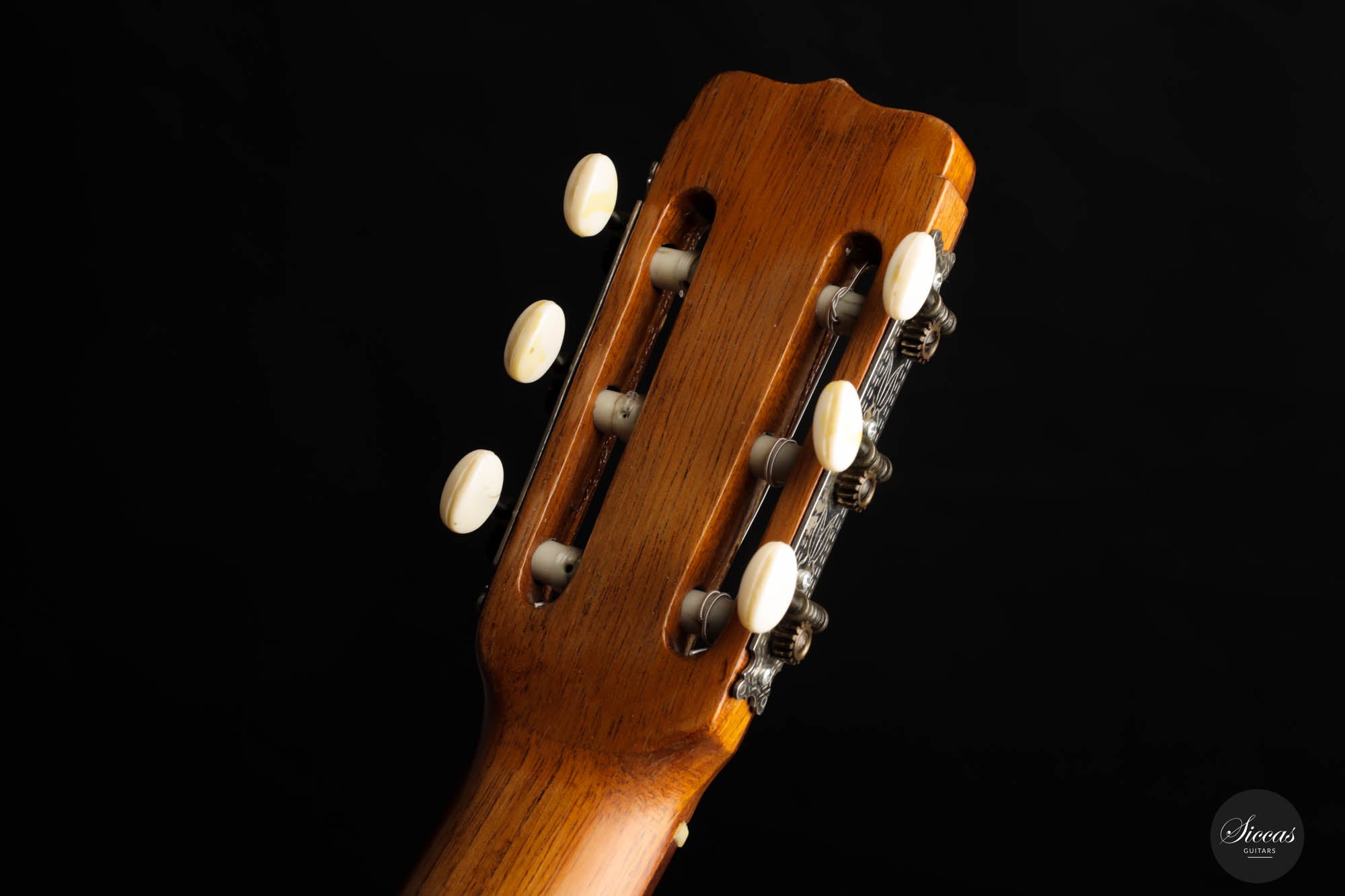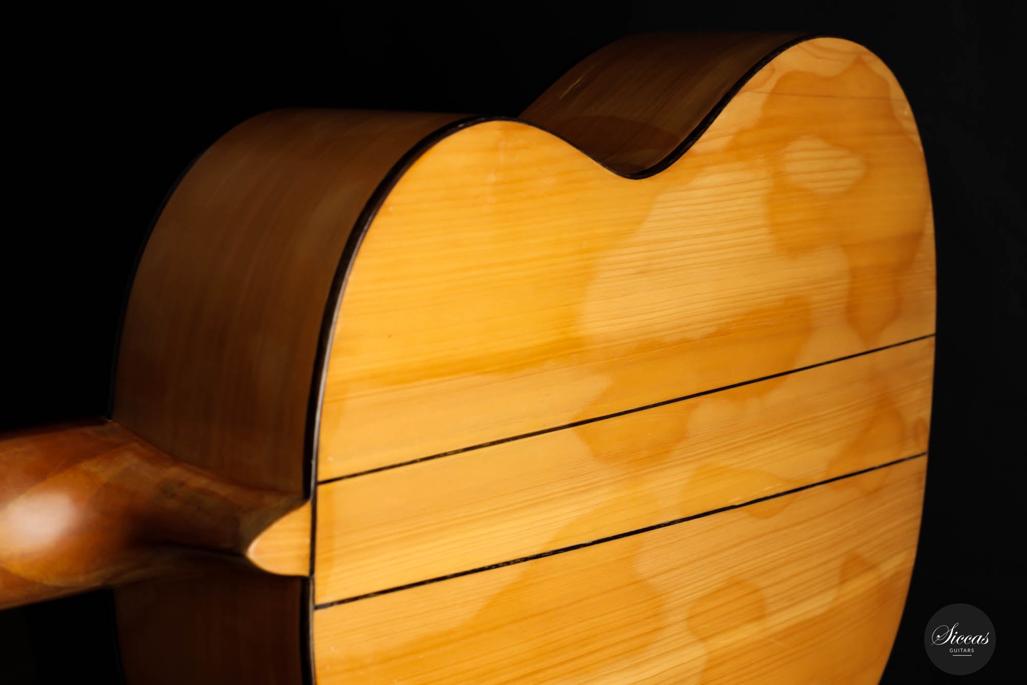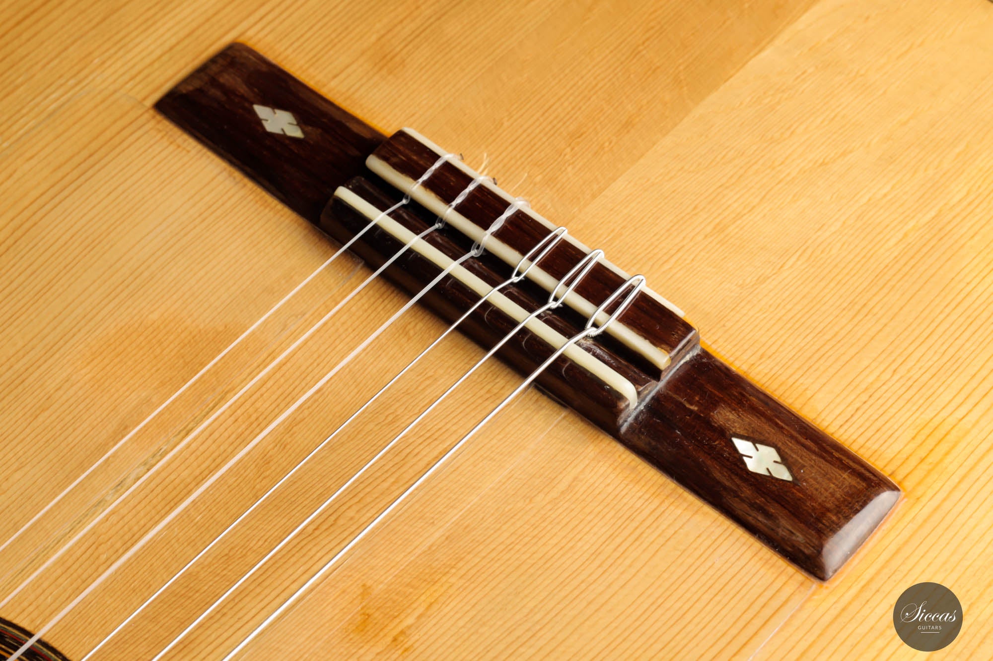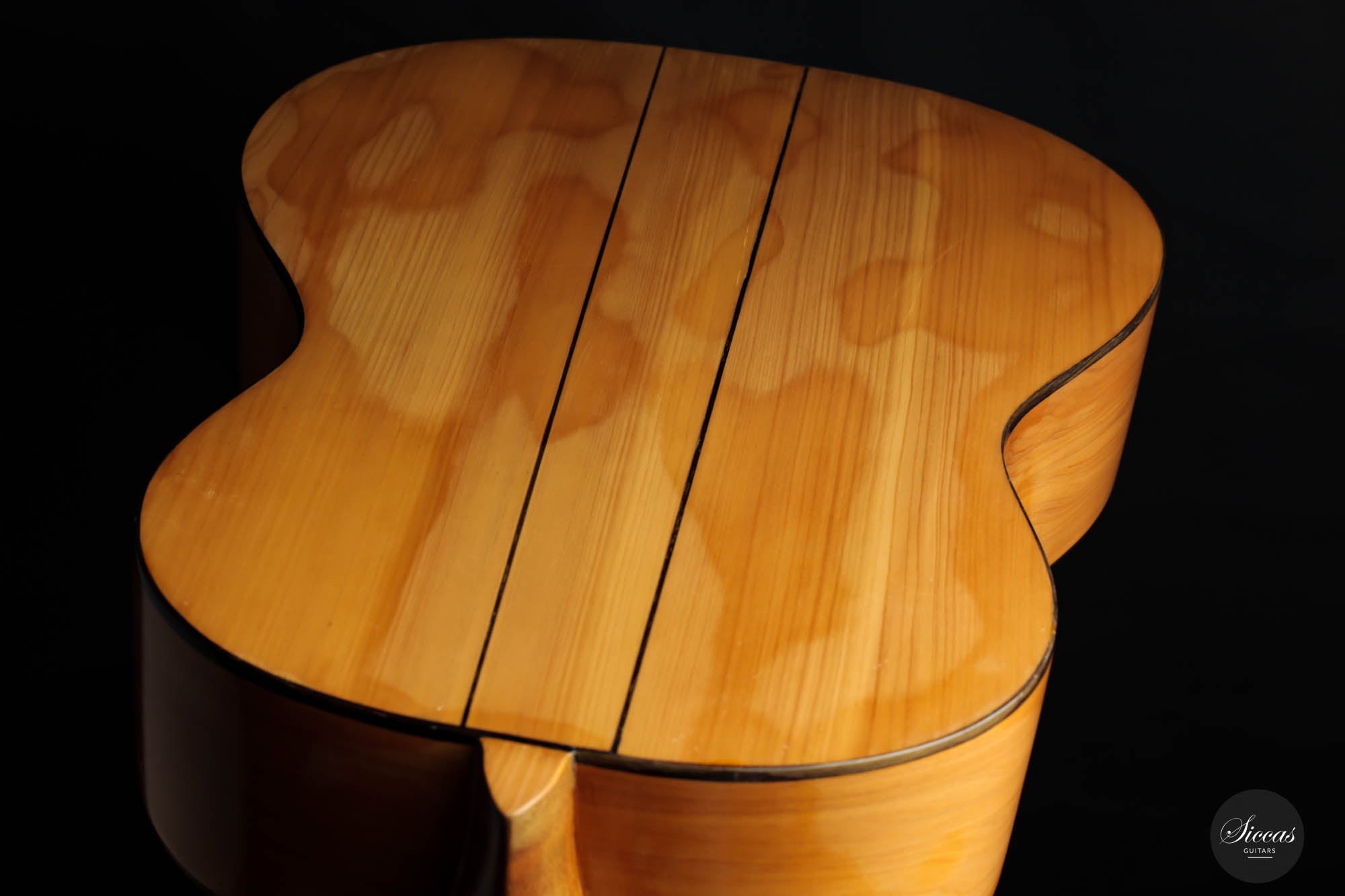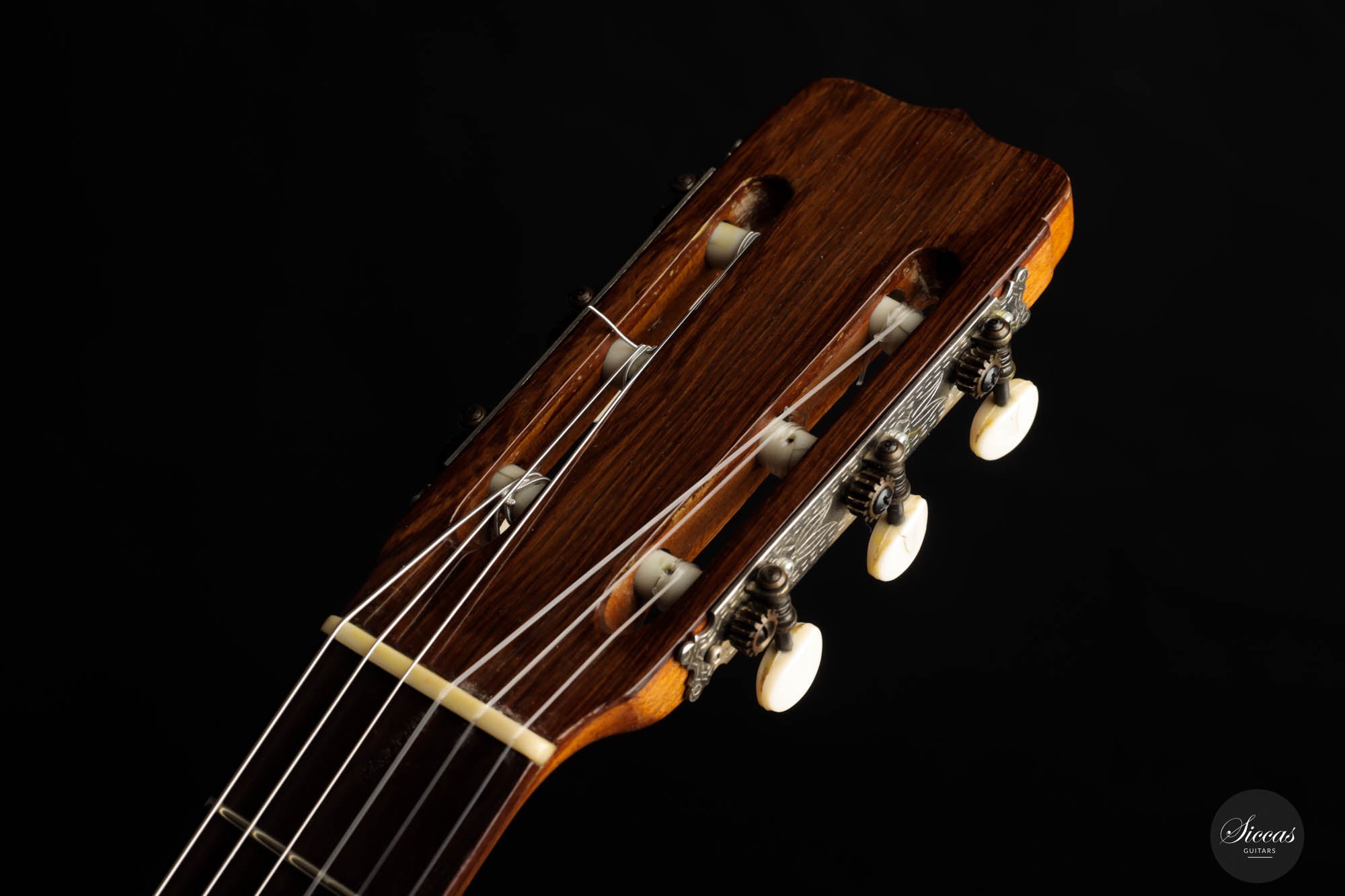 This instrument built in 1941 is a fantastic guitar that exemplifies and represents the special merit of the Ramirez workshop despite the difficult times during the Spanish Civil War. It is a simple yet attractive instrument which responds quickly to the right-hand attack with its bright, silvery, and voluminous tone. The spruce soundboard and Spanish cypress back and sides have several repaired cracks and have been refurnished. A rare opportunity to own and enjoy an instrument that is part of the exciting history of the legendary Ramirez dynasty.