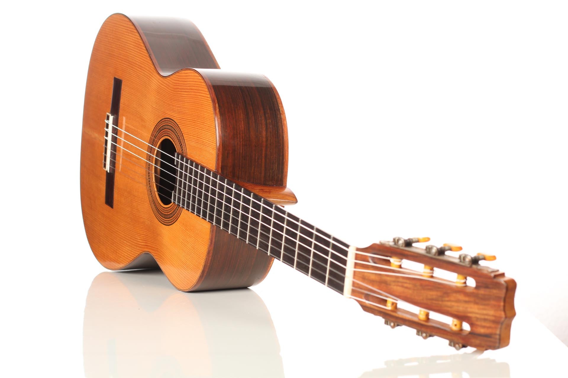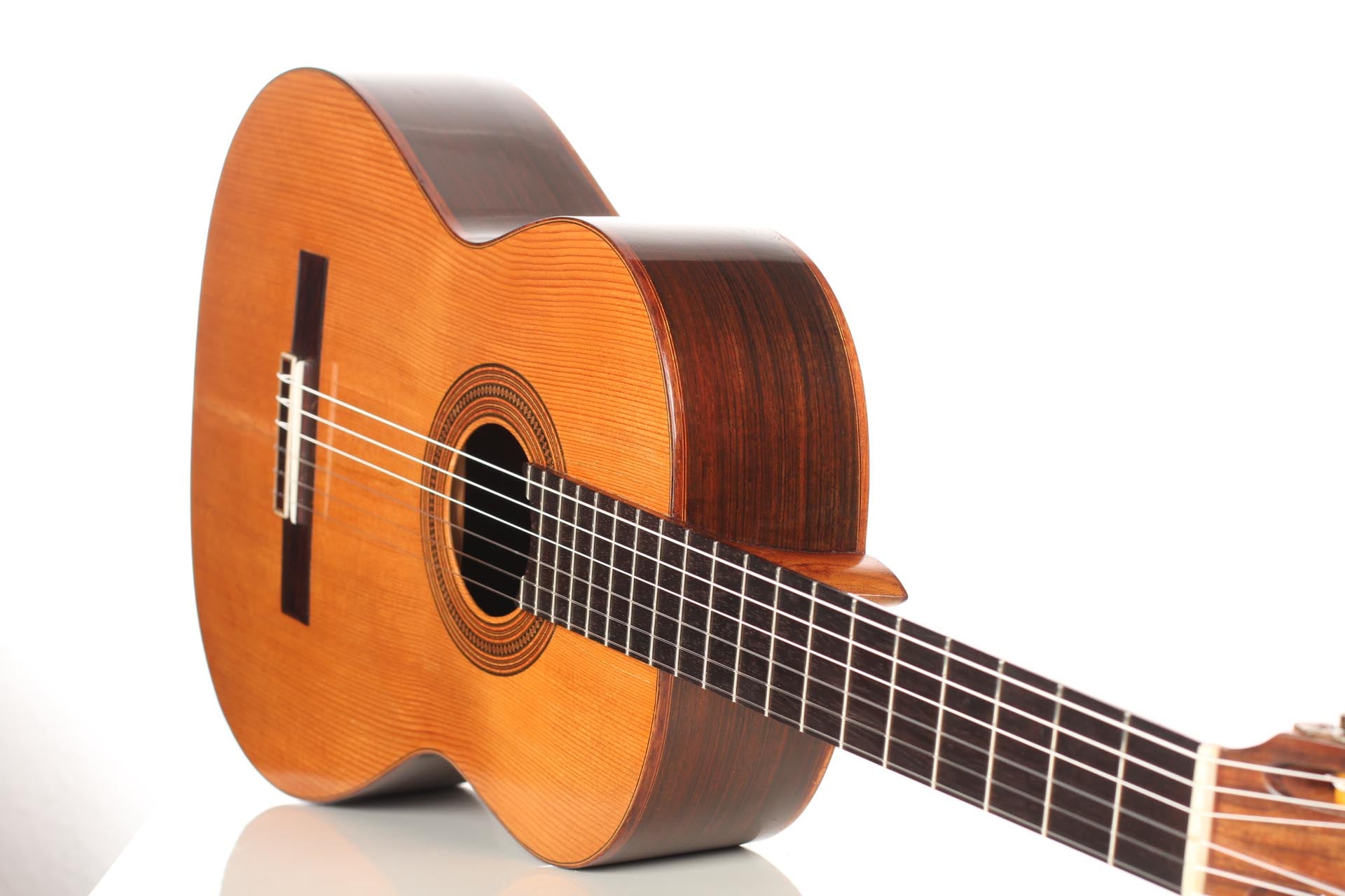 Price on requestLuthier: Hermann Hauser IIConstruction Year: 1956Construction Type: TraditionalTop: SpruceBack and Sides: Brazilian rosewood (CITES certified)Soundboard Finish: French polishBody Finish: French polishAir Body Frequency: F sharp / GWeight (g): 1440Tuner: LandstorferCondition: Excellent -