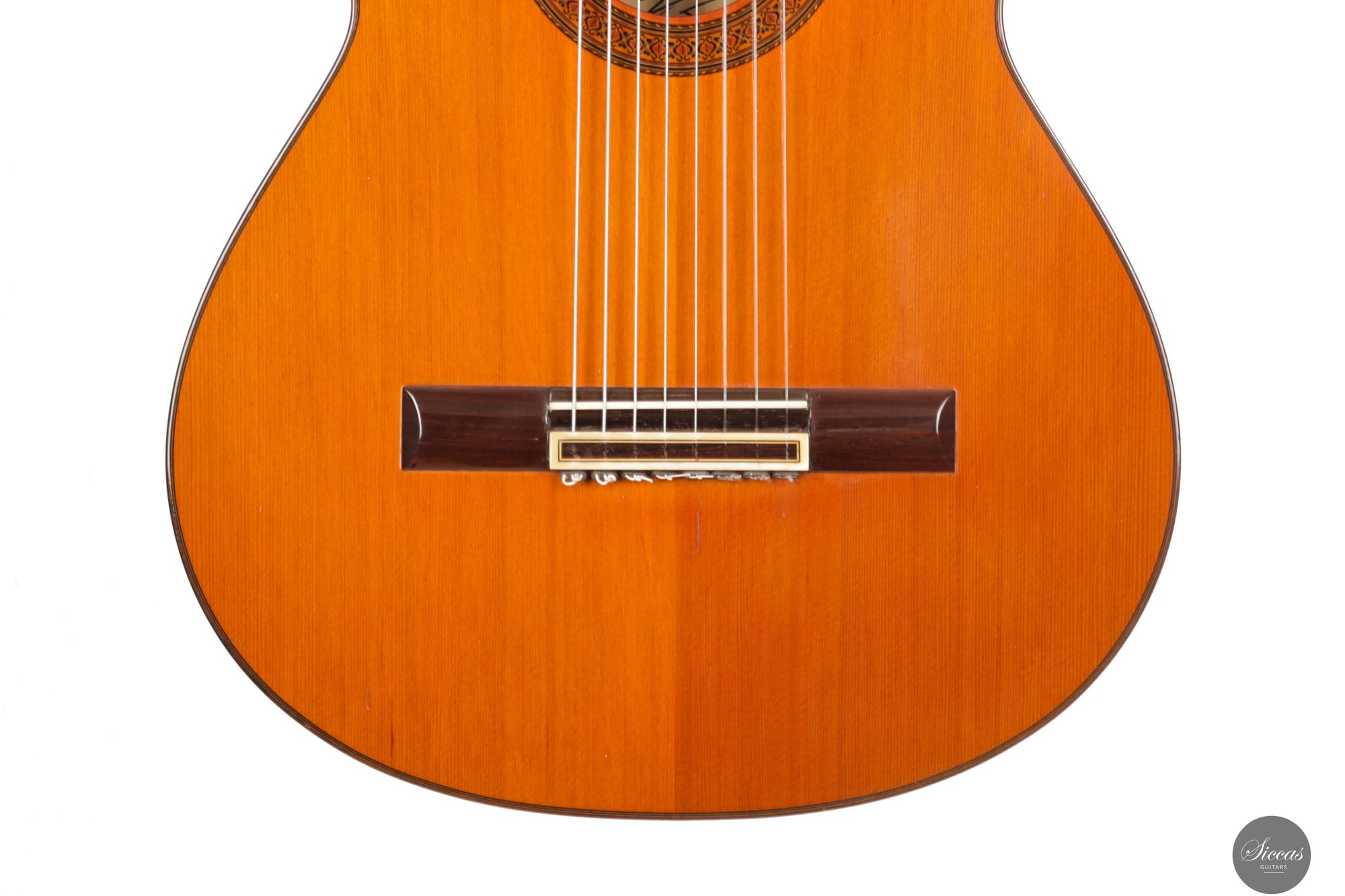 José Ramirez III (1922-1995) pioneered cedar tops for guitars. His instruments gained international fame in the 1960s through Andrés Segovia and his many students. In 1965, José Ramirez III began developing a new instrument built with a top made of Western Red Cedar (Thuja plicata) and double sides (rosewood and cypress). This revolutionary new way of building guitars and using this innovative type of wood spread very quickly in the guitar world. In addition, Andrés Segovia played several J. Ramirez III was his main concert instrument. He played four instruments over an extended period [1962 (but dated 1963), Spruce, 1965, 1967, 1969 (all three cedar).