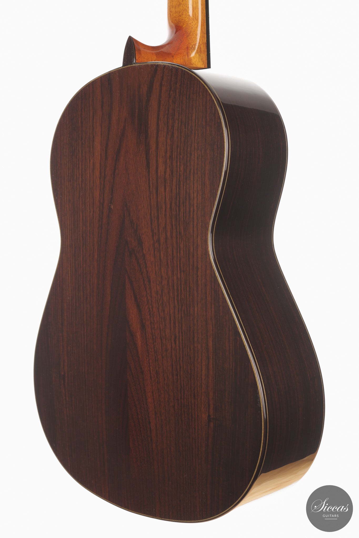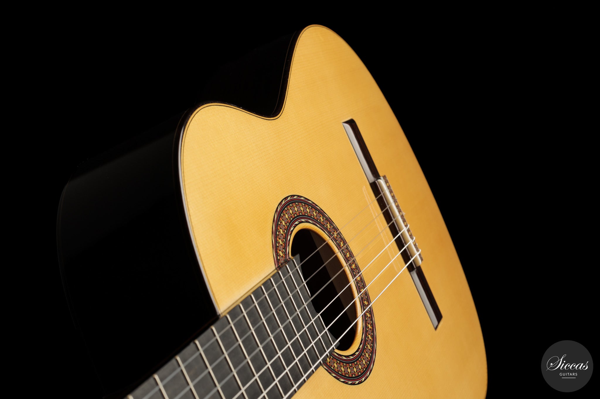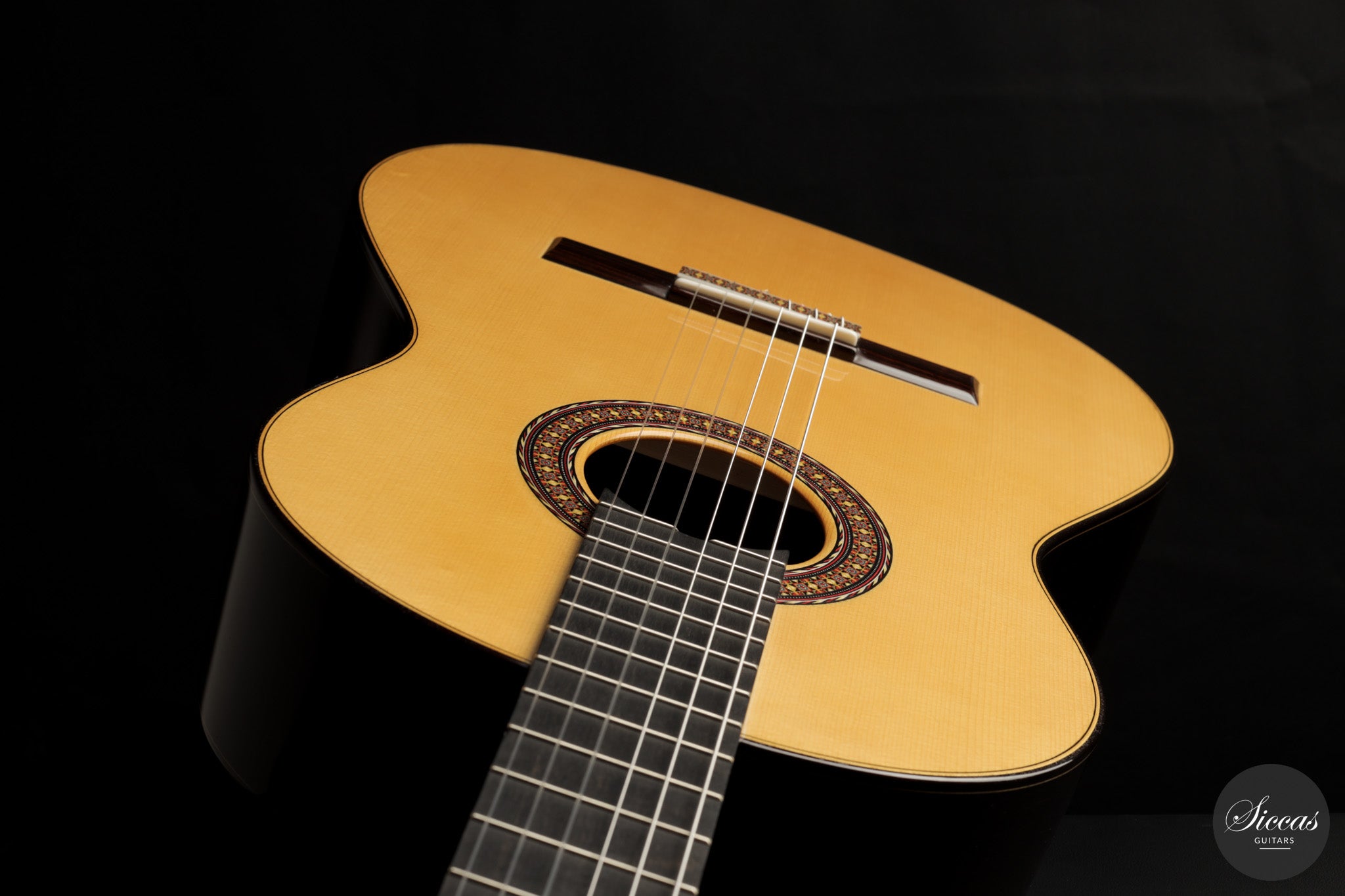 This classical concert model from 2026 was developed exclusively for Siccas Guitars and is built in traditional construction with a spruce top and Indian rosewood back and sides. The visual concept is refined and restrained, with discreet decorative elements that underline its Spanish character without excess.