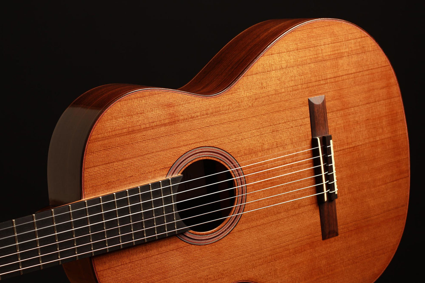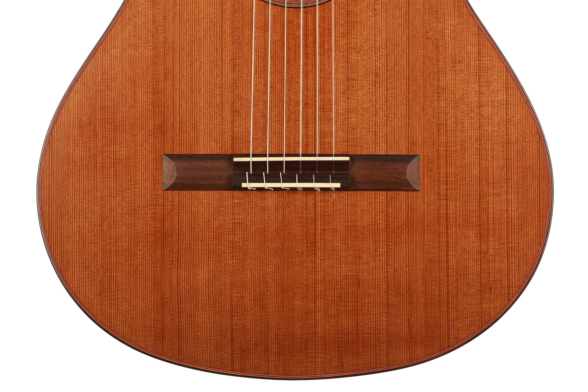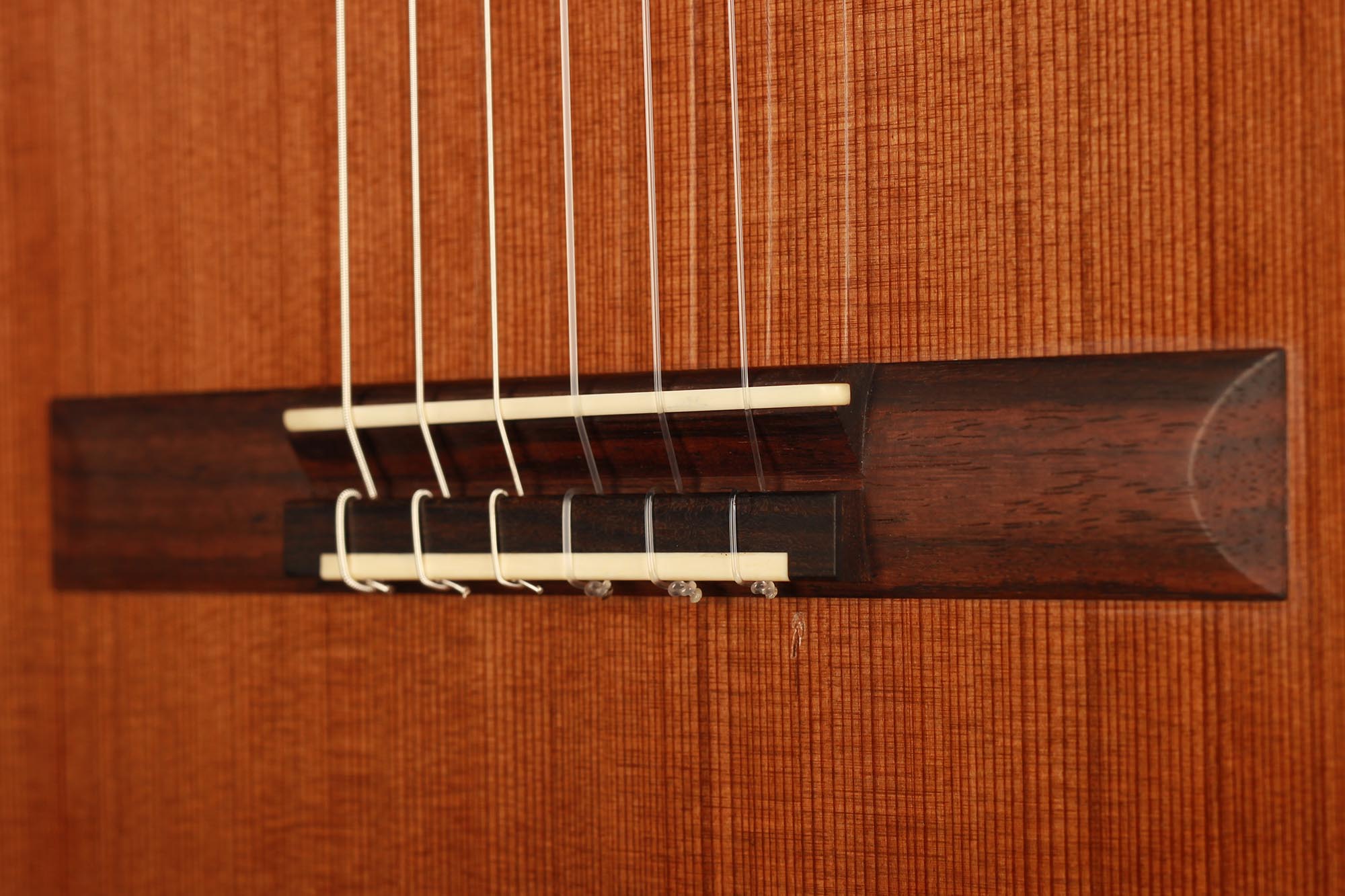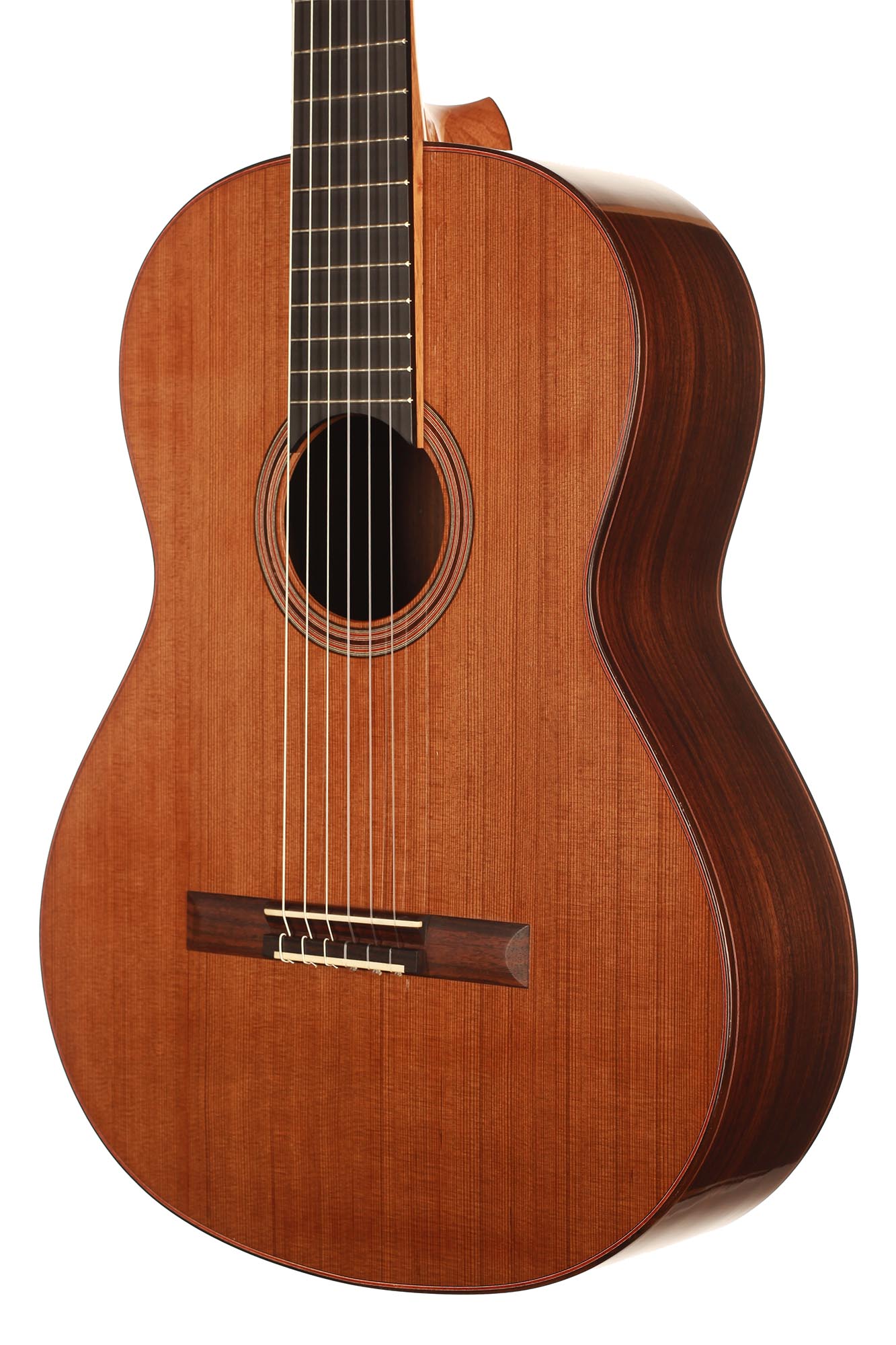 This model has been developed as a cost-effective alternative to the more elaborate instruments from the Kirschner workshop and offers high sound quality and best playability e.g. for students or guitarists with a limited budget. Built by Solveig and Andreas in their workshop and fully French polished, it is showing a very clean craftmanship as well as a a visually clear and pure aesthetic. A nice feature of this guitar is the cedar double top, which is combined with a traditional spruce fan bracing. This results in a powerful, warm sound with beautiful timbres. Only some superficial playing marks can be found on the soundboard. The playability is perfect and the instrument is excellently balanced, so that this guitar is ready to be played.