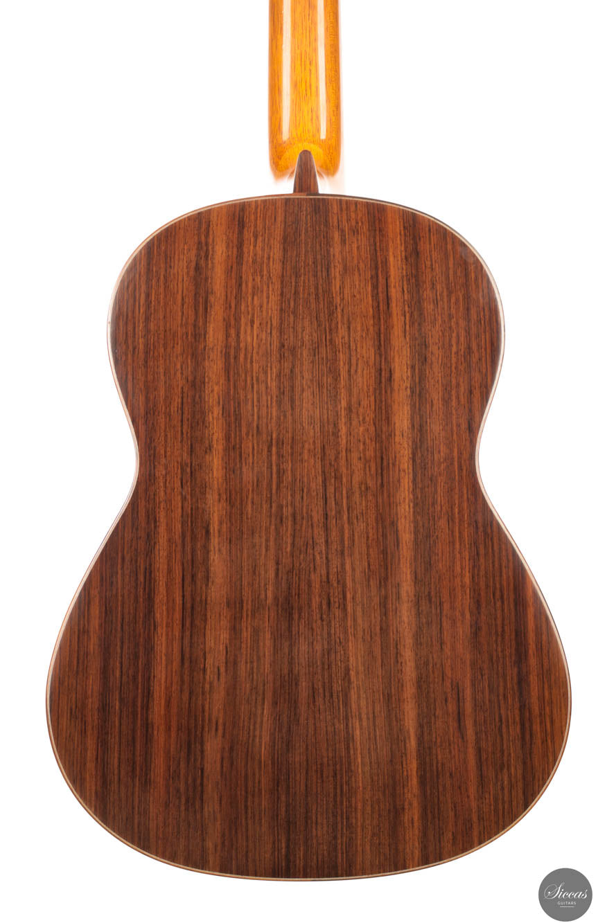 This classical guitar was built in 1999 and features a two-piece spruce top framed by elegant dark and light purflings. The back and sides are made of beautiful Indian rosewood, lending the instrument a warm and rich tonal palette. The guitar is in excellent condition, with only minor traces of nail wear. It has recently been fitted with new high-quality Alessi machine heads. The sound is typical of Panhuyzen’s work—well-balanced, with exceptional sustain and deep, resonant basses. A true concert-quality instrument from one of the great German-Canadian luthiers of our time.Regular care extends the life of the instrument