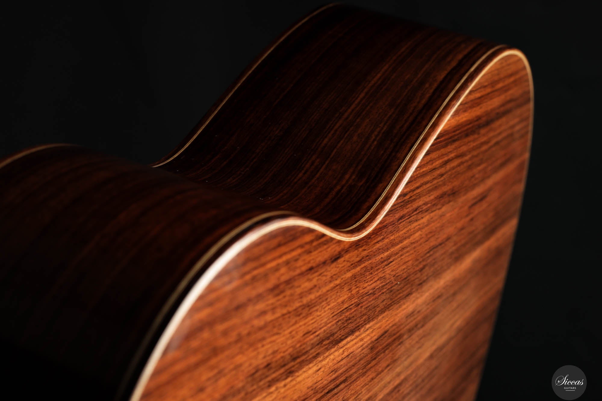 Be mindful when touching your instrument with greasy or unwashed hands: any skin contact is a small attack on the varnish. Of course, a guitar is made to be played, but taking a few precautions helps preserve its beauty: wash your hands before playing, wear long sleeves, and avoid unnecessary direct skin contact with the body of the instrument.