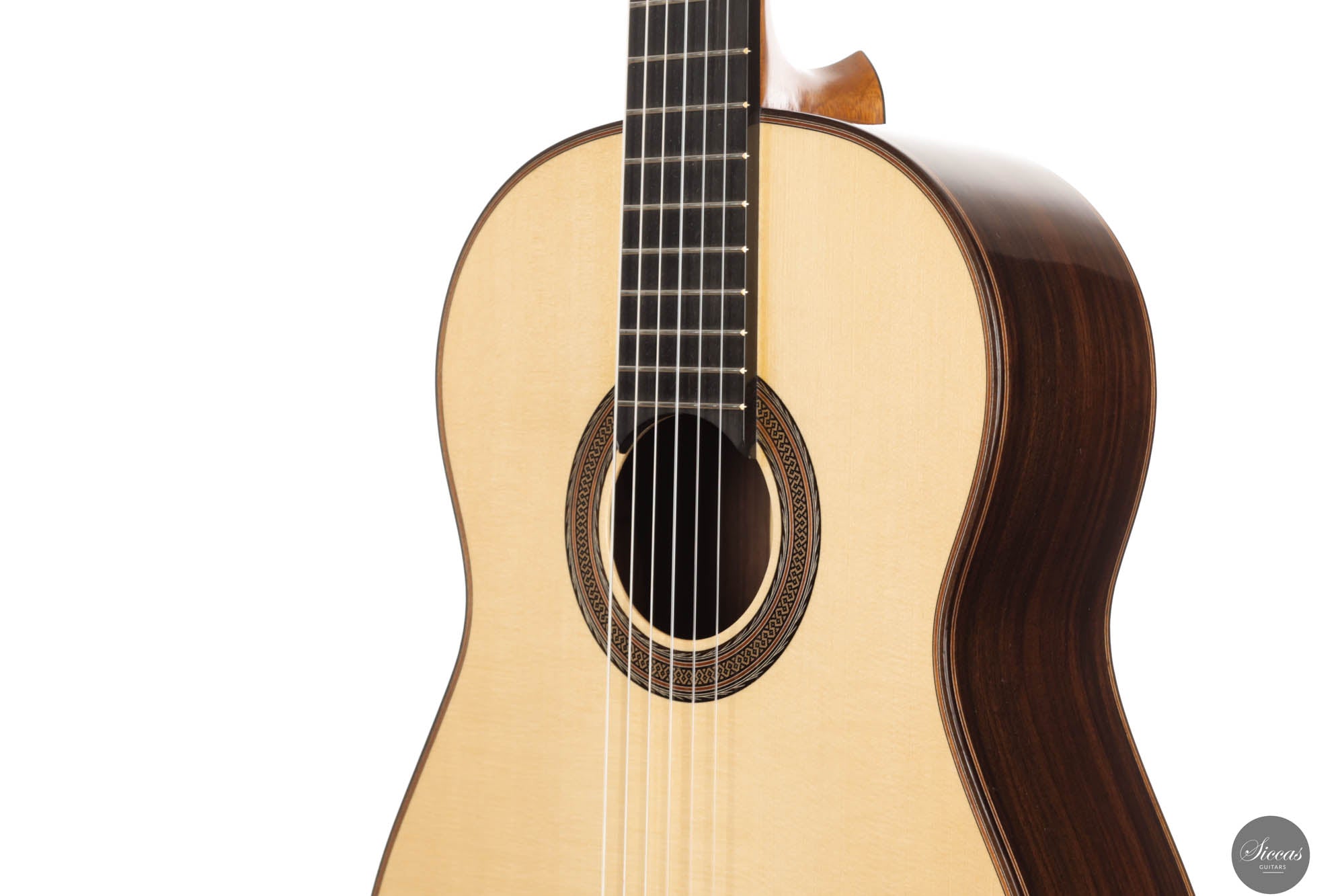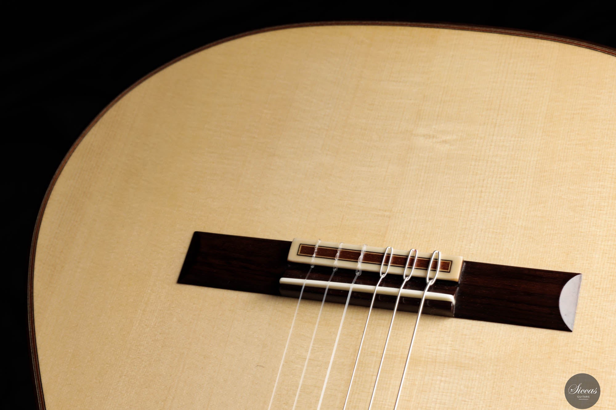 After a master in Sociology, Kristof Meeus joined the Centre for Musical instrument Building (CMB) in Puurs, Belgium, in 2006. Working in parallel in Walter Verreydt’s workshop, he very quickly gathered solid skills in guitar making. From 2012 on, Kristof started his career as an independent guitar maker. The CMB then recruited him as a teacher in 2016. As did the great painters for centuries, Kristof went for European travel to refine his knowledge and draw inspiration from his predecessor’s work. He, therefore, visited the collection of Gabriele Lodi, Lorenzo Frignani, Bruno Marlat, Antonio Marin, Rafael Moreno and many more, getting a global understanding of both the old masters and the modern classical guitar.