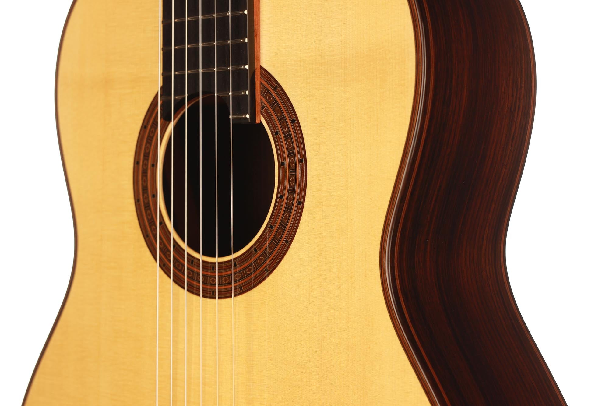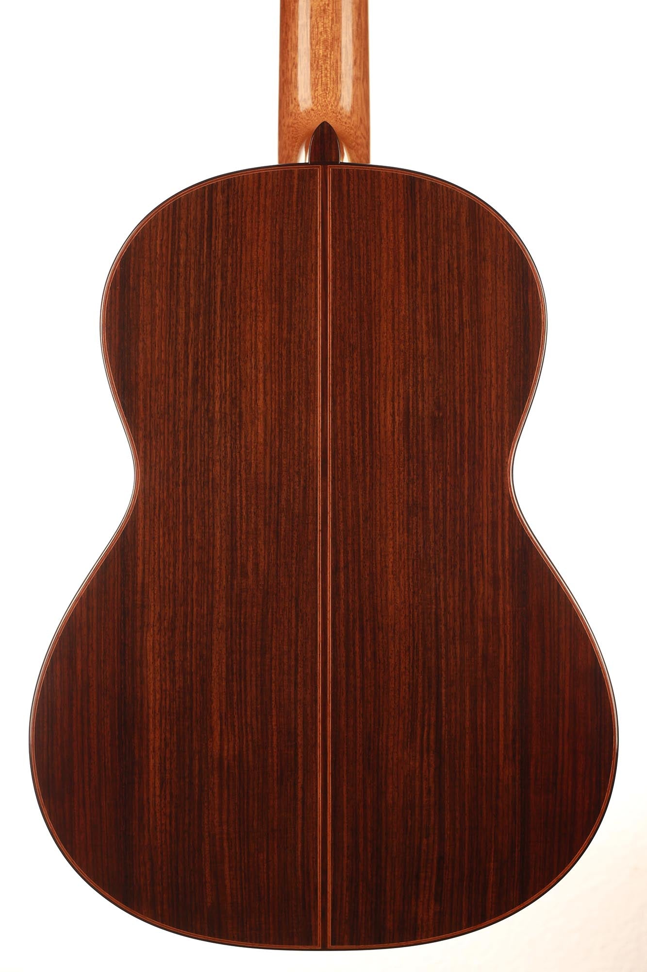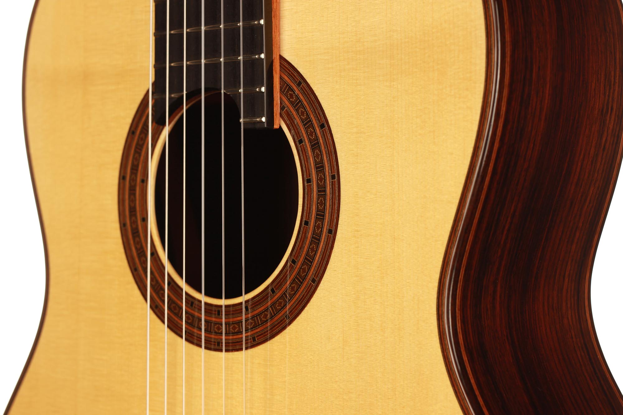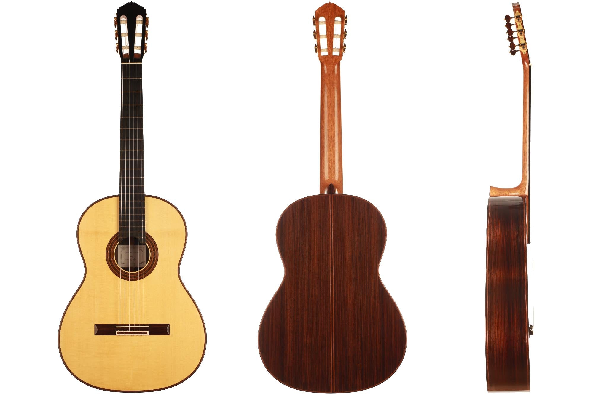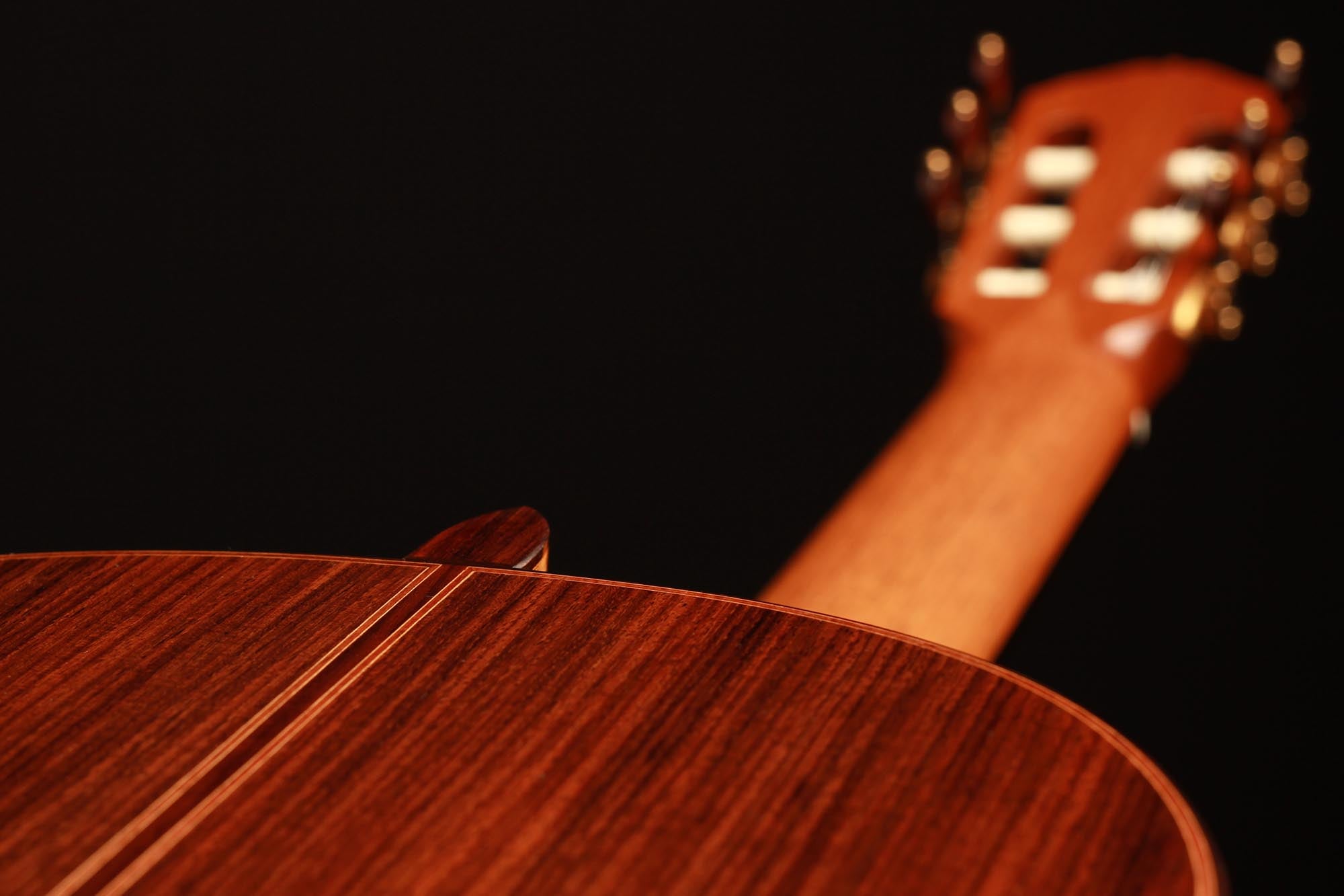 This gorgeous and refined instrument sums up everything we appreciate in a classical guitar. It is built with extreme precision, great aesthetical taste, and most of all it sounds marvellous. Sweet tone, spontaneity, excellent balance and boundless sustain are the first striking features. After having played for a moment, the second emotion-flow arrives as one discovers the rich tone colours, wild dynamic possibilities and joyfully singing first string. Certainly, an elegant and genuinely accomplished guitar.
