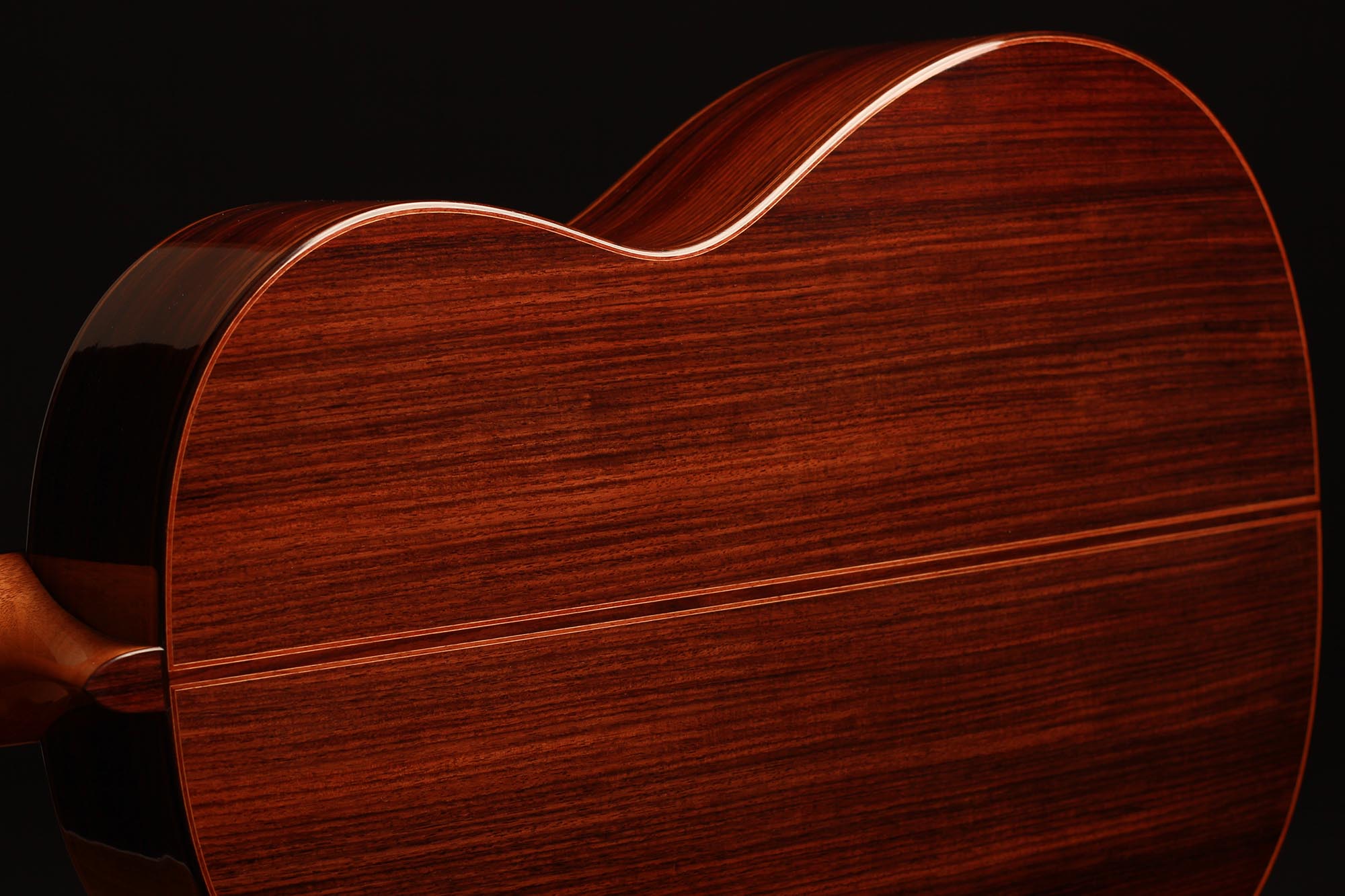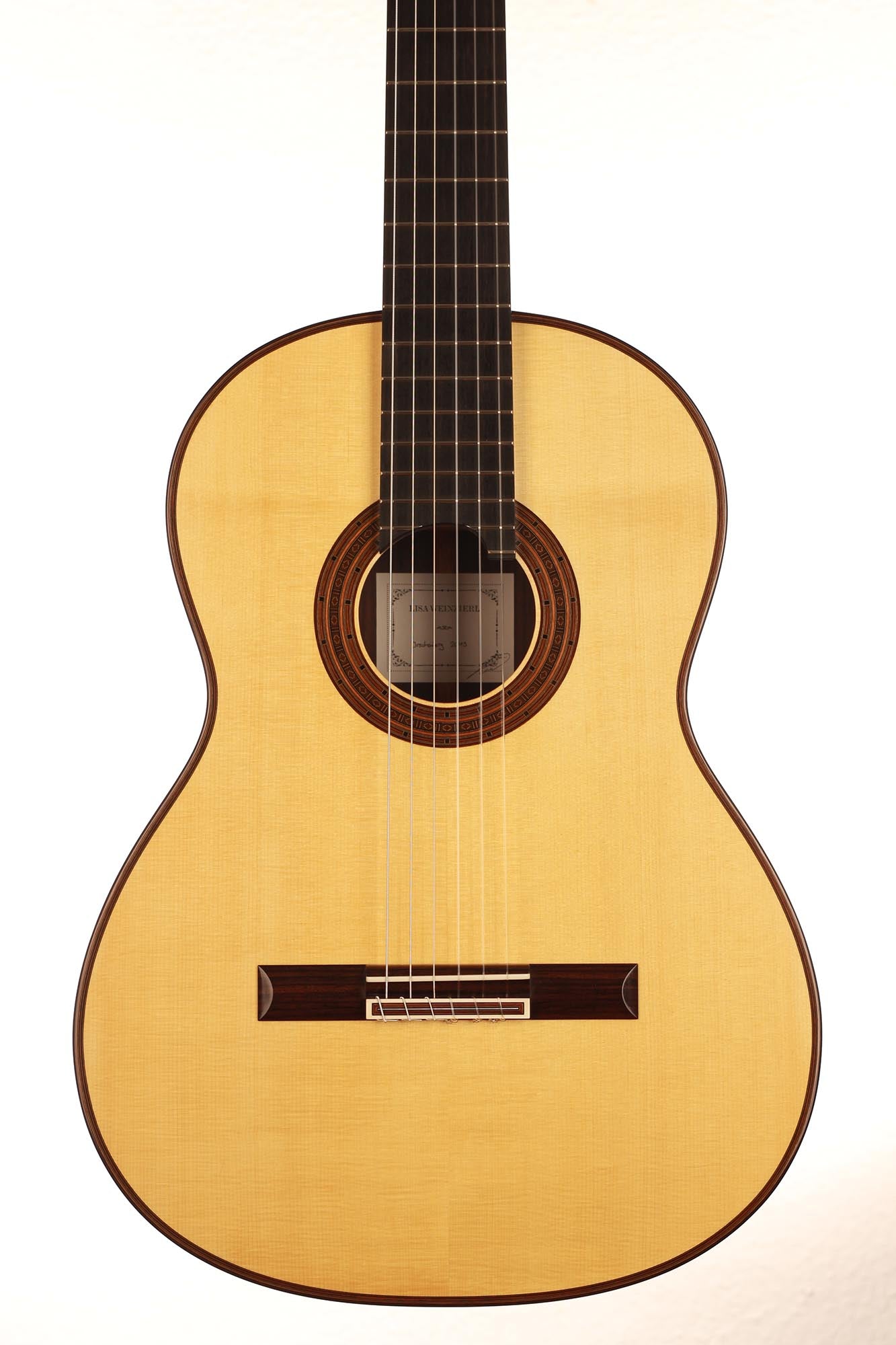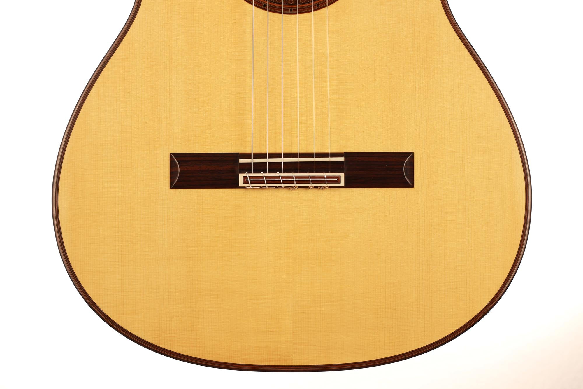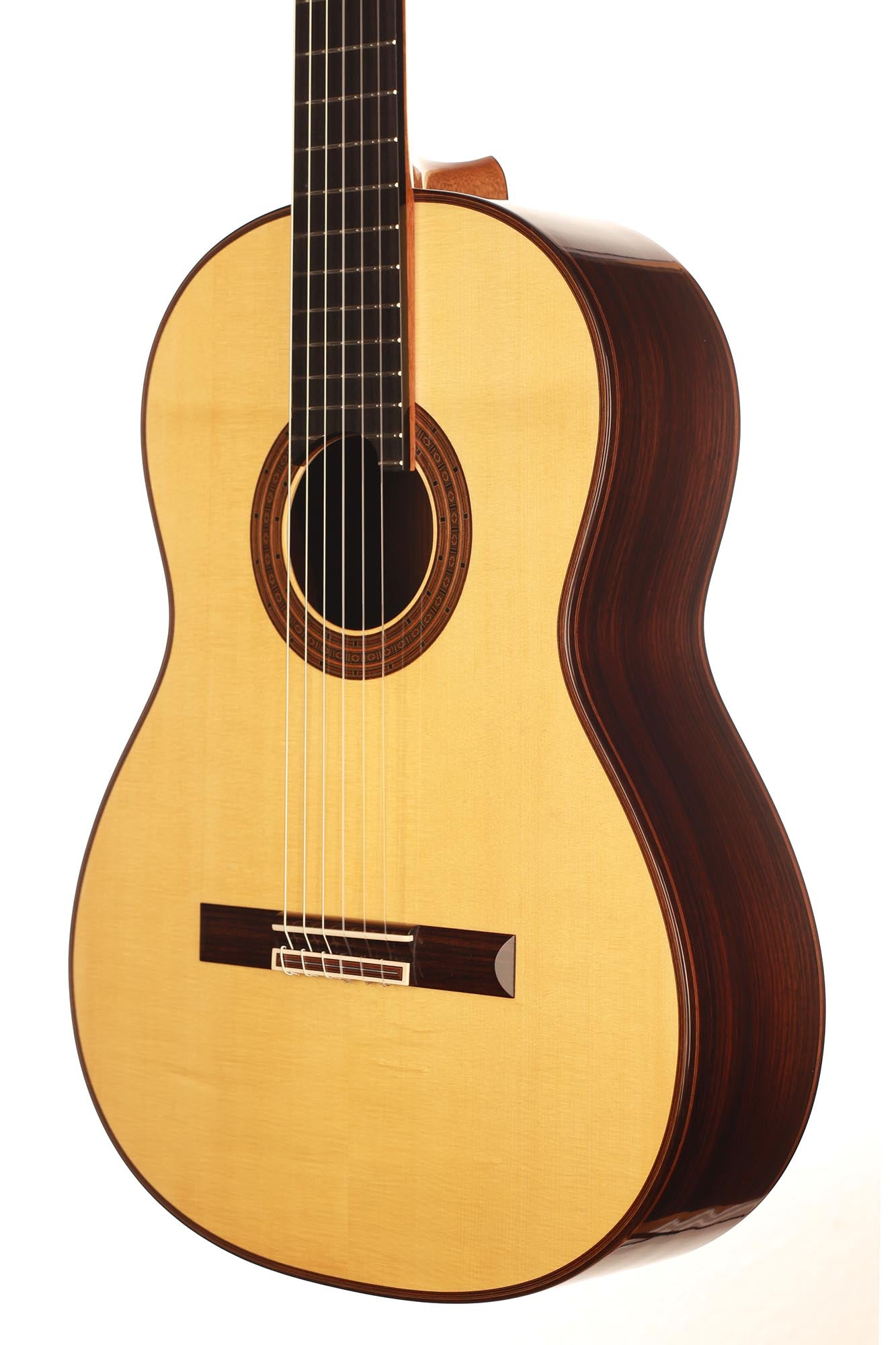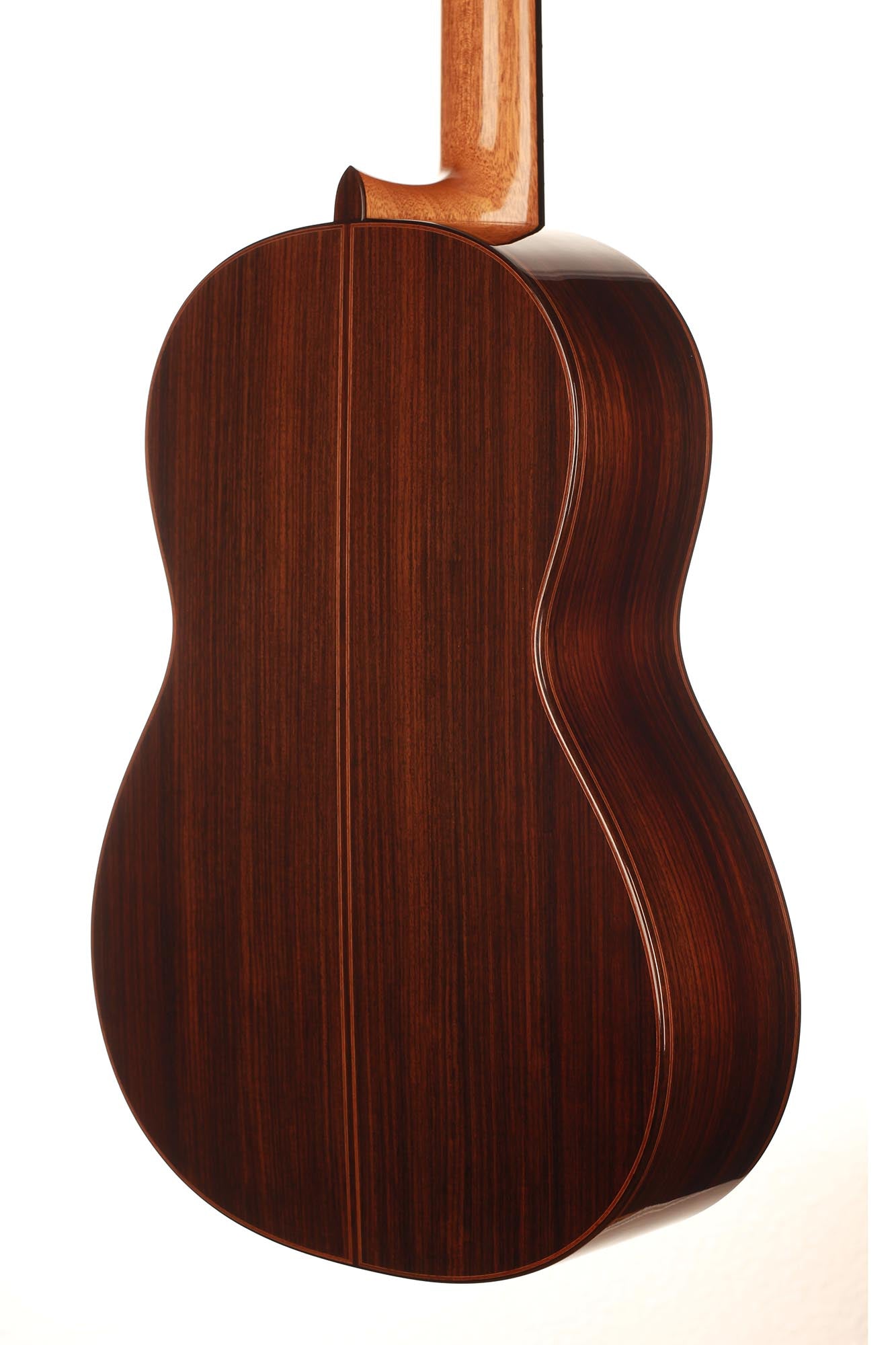 This gorgeous and refined instrument sums up everything we appreciate in a classical guitar. It is built with extreme precision, great aesthetical taste, and most of all it sounds marvellous. Sweet tone, spontaneity, excellent balance and boundless sustain are the first striking features. After having played for a moment, the second emotion-flow arrives as one discovers the rich tone colours, wild dynamic possibilities and joyfully singing first string. Certainly, an elegant and genuinely accomplished guitar.