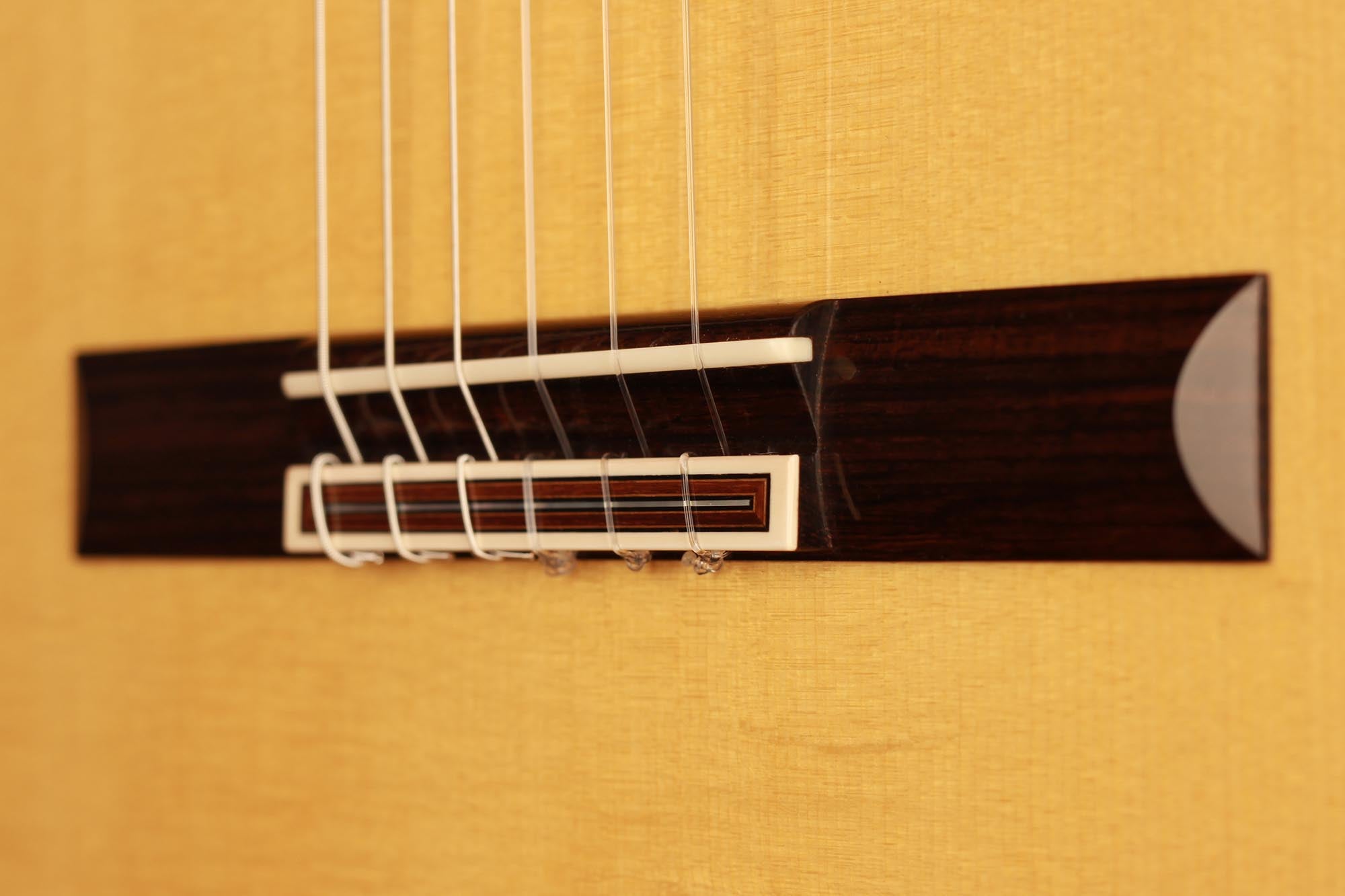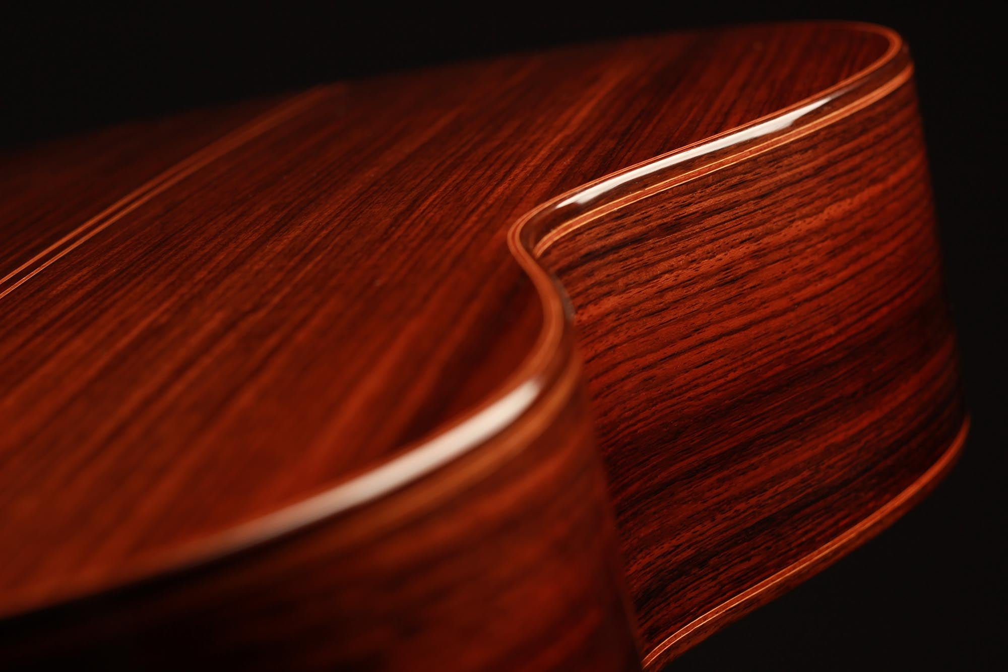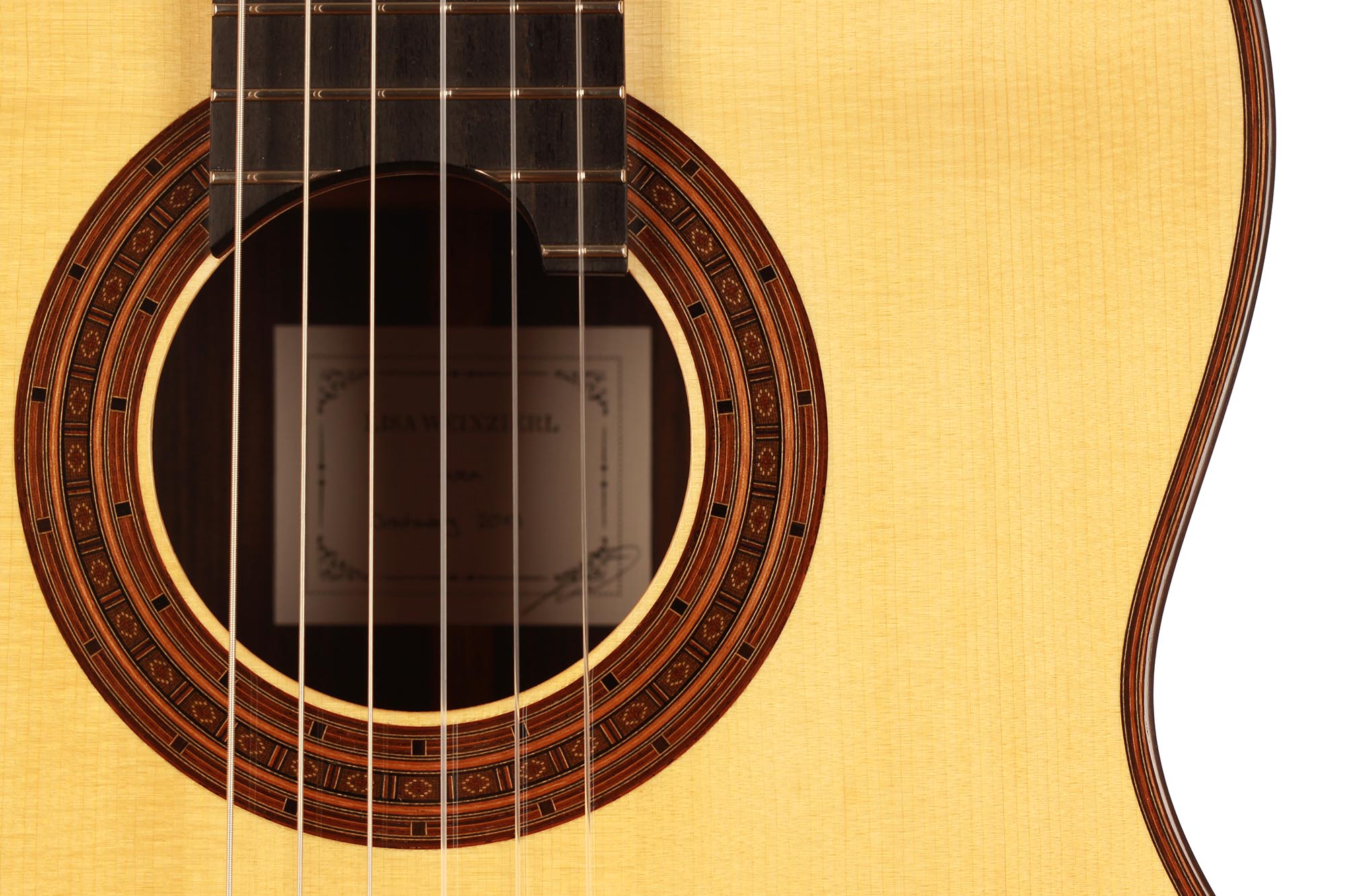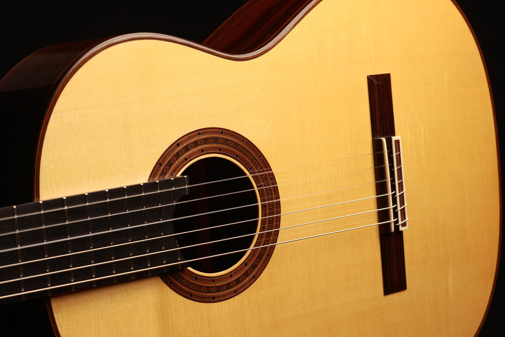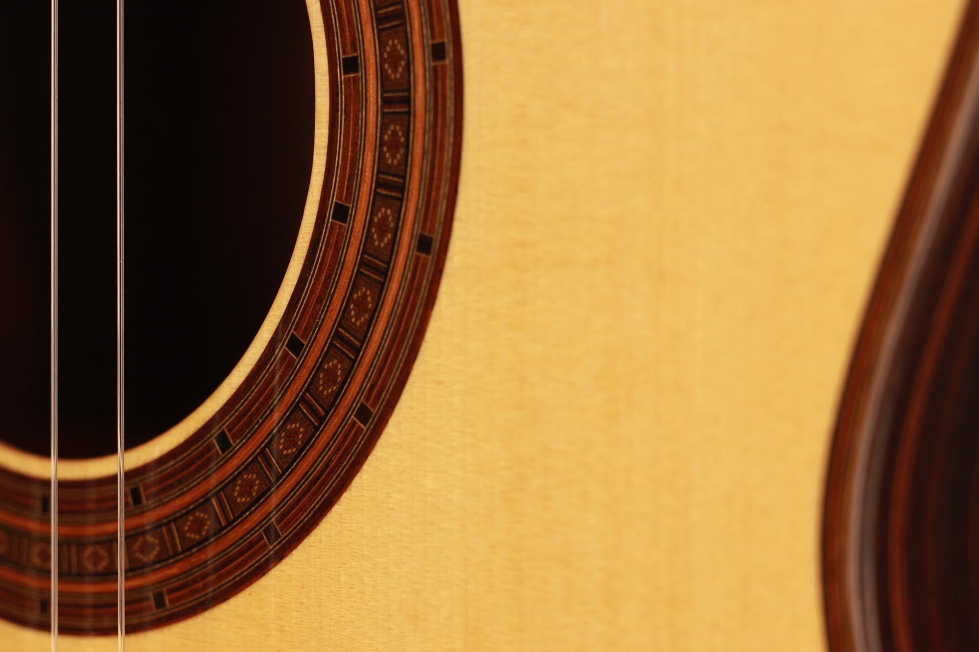 This gorgeous and refined instrument sums up everything we appreciate in a classical guitar. It is built with extreme precision, great aesthetical taste, and most of all it sounds marvellous. Sweet tone, spontaneity, excellent balance and boundless sustain are the first striking features. After having played for a moment, the second emotion-flow arrives as one discovers the rich tone colours, wild dynamic possibilities and joyfully singing first string. Certainly, an elegant and genuinely accomplished guitar.