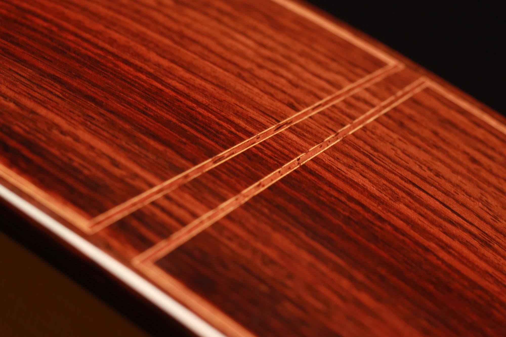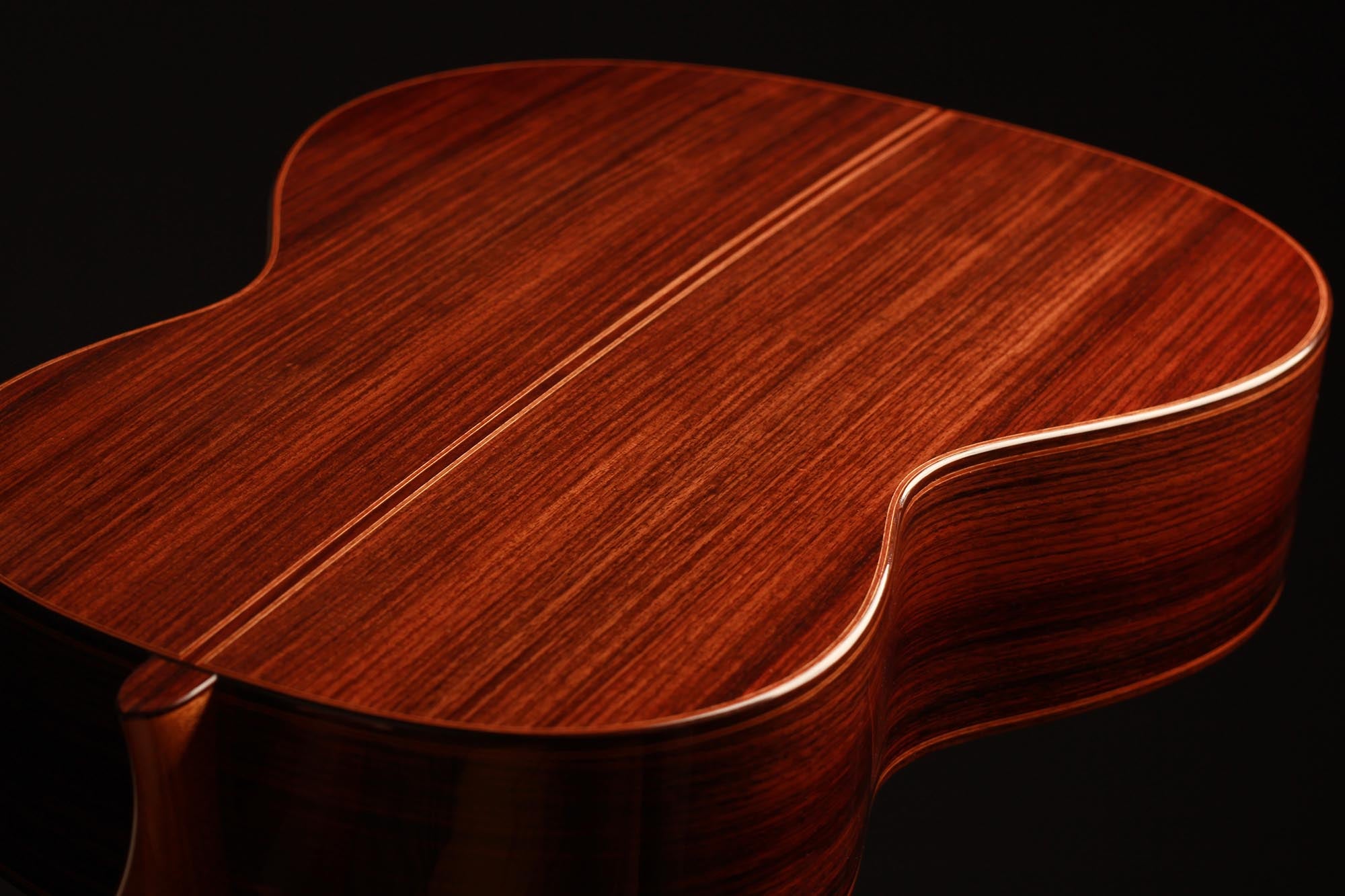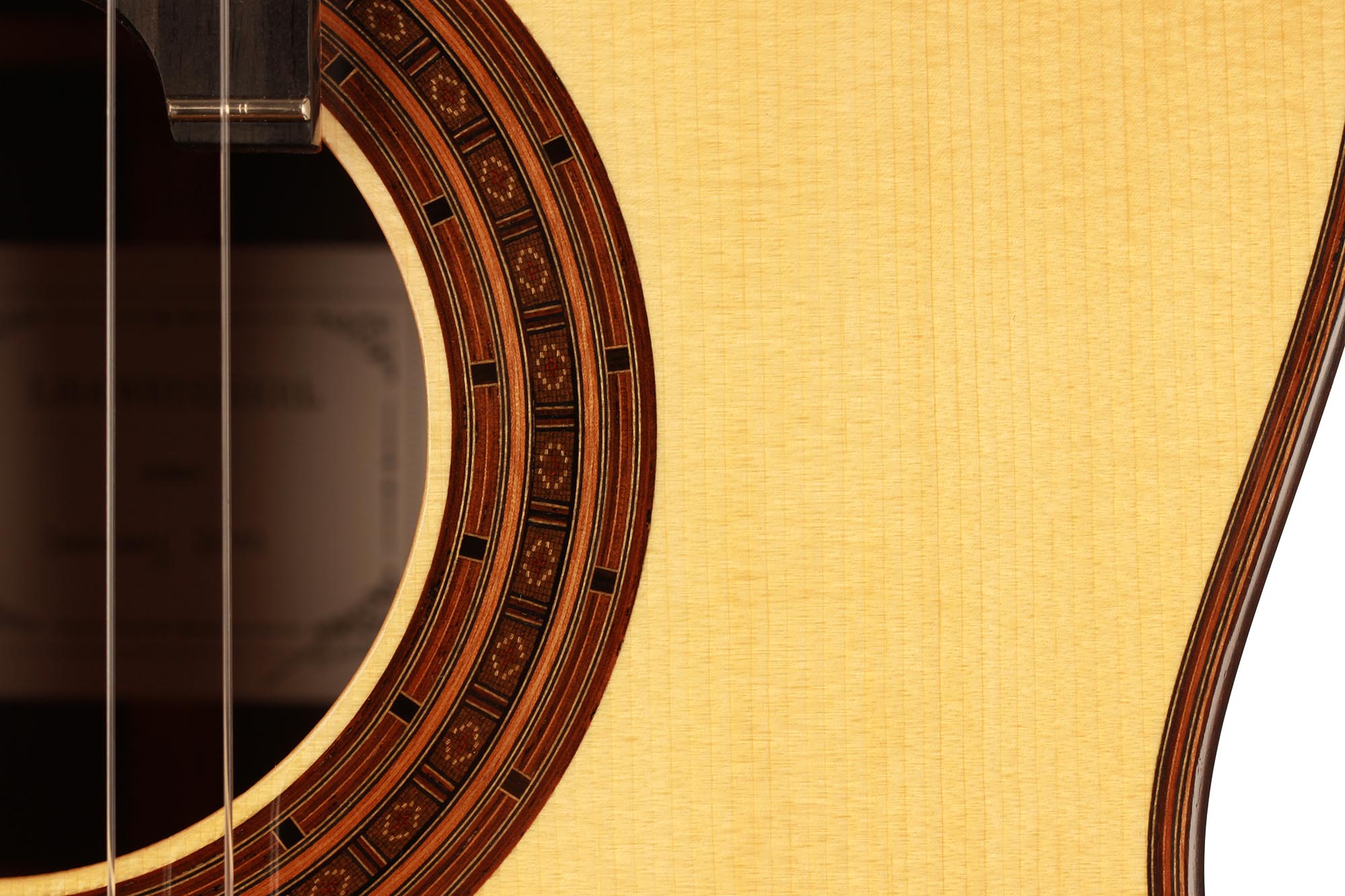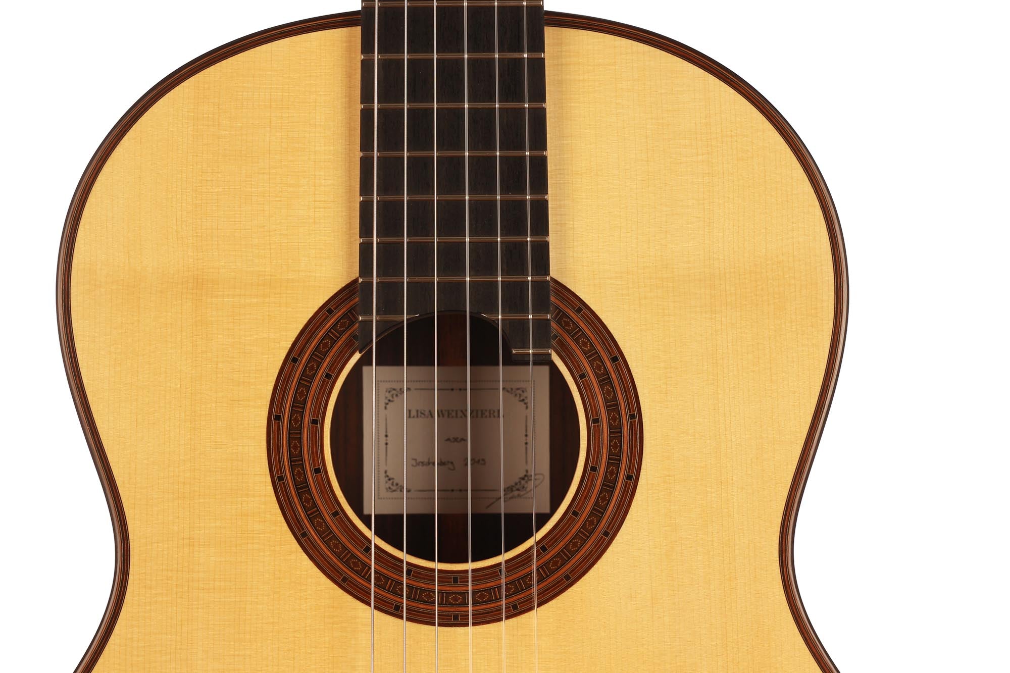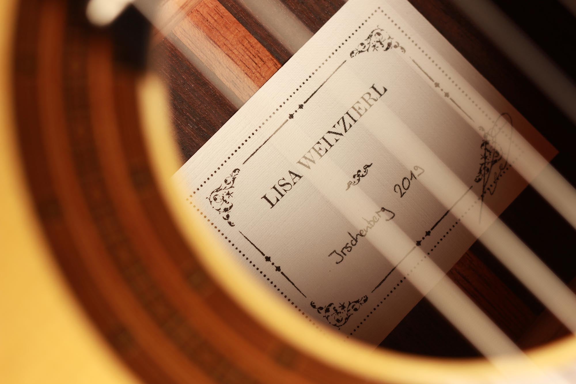 Of course, she let the accumulated experience flow into this wonderful guitar. The German V-joint, the rosette specially made for this guitar and the French shellac polish express the special emphasis that Lisa puts on craftsmanship at the highest level. The playability and feel are fantastic, and the slightly raised fretboard makes playing in higher registers very comfortable.