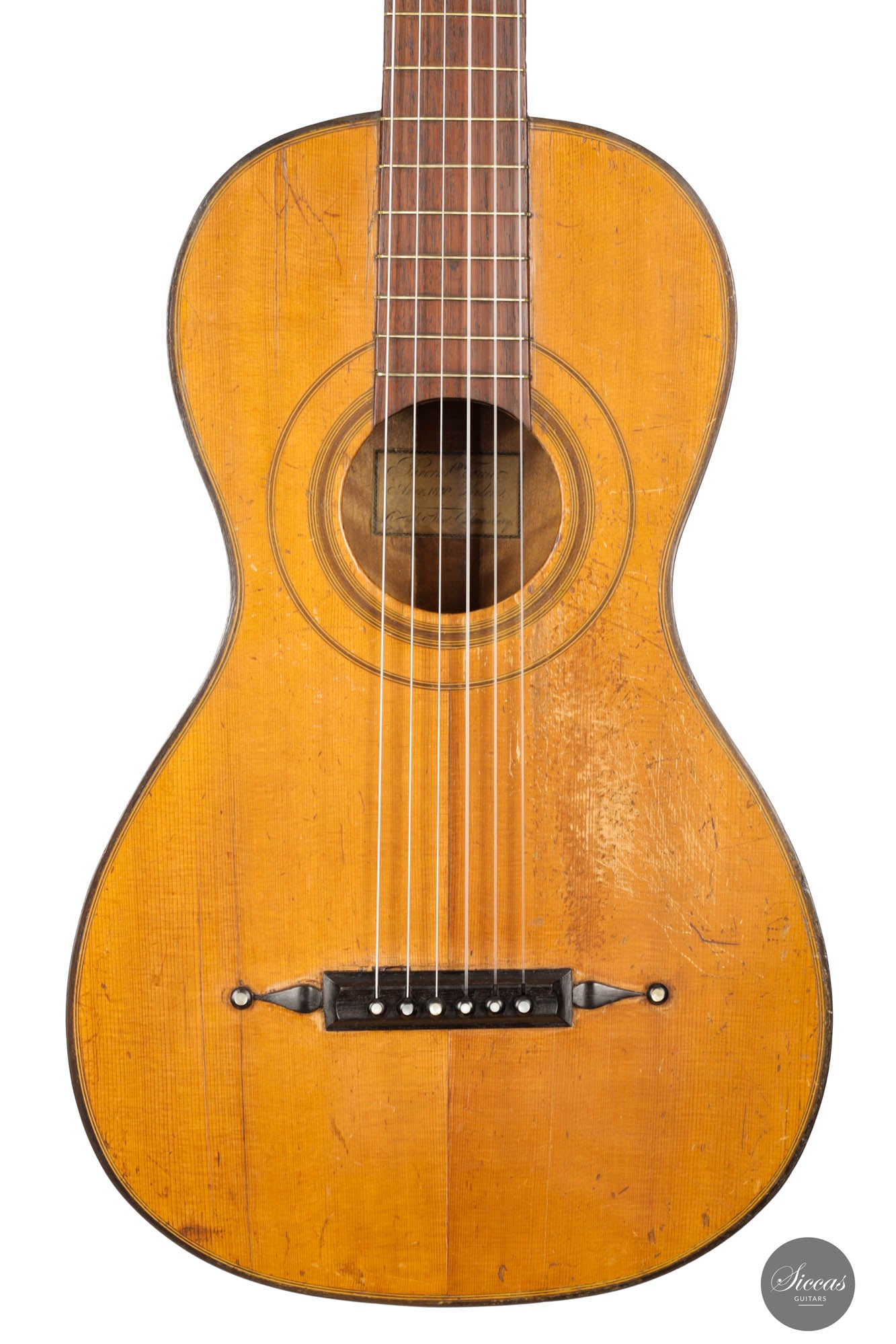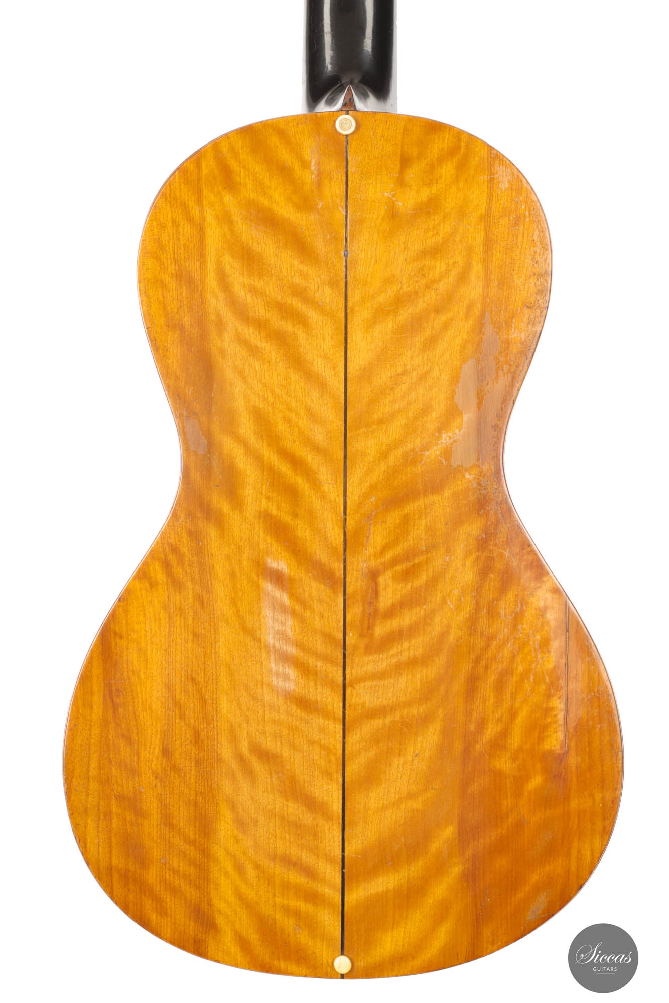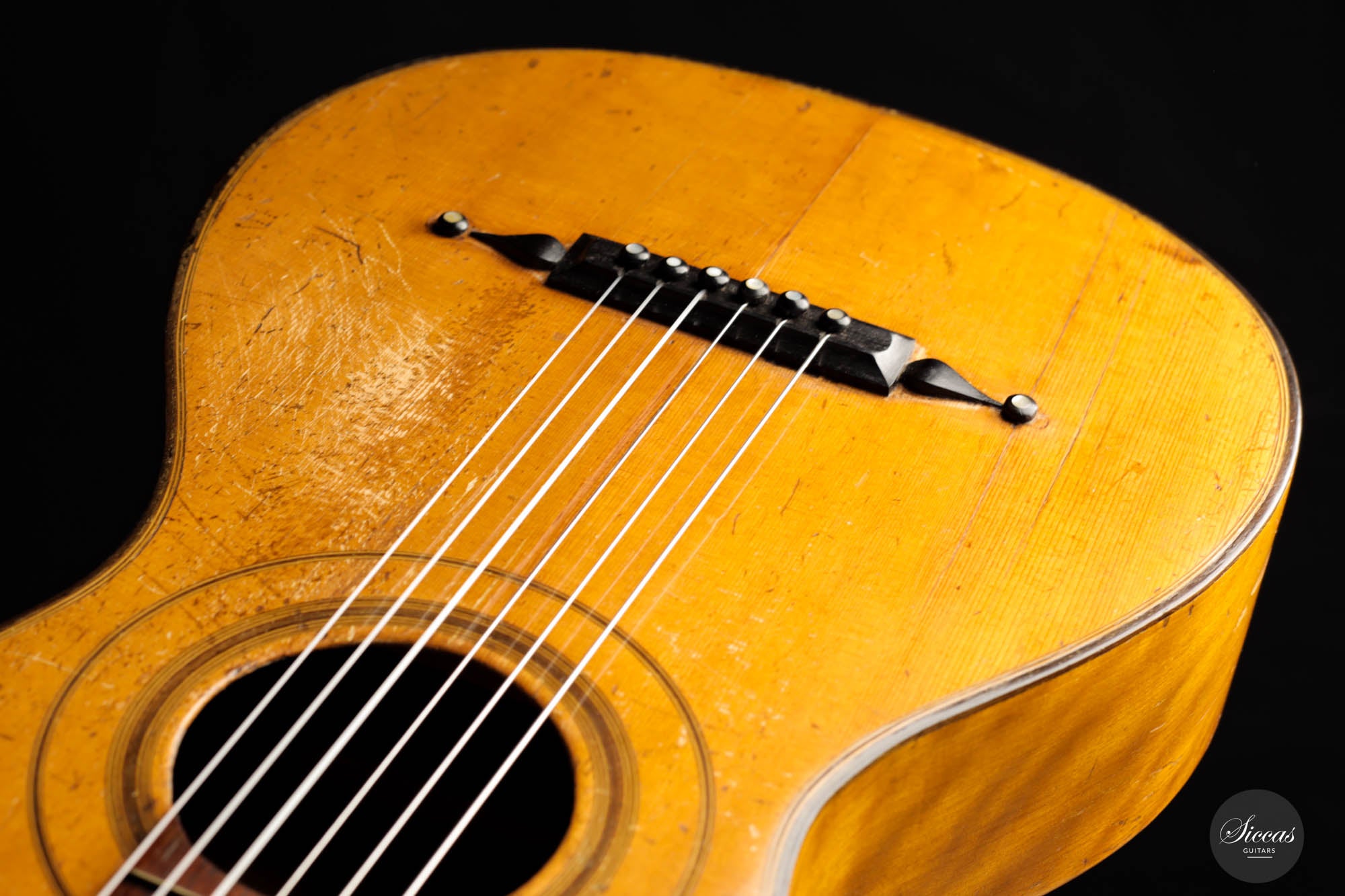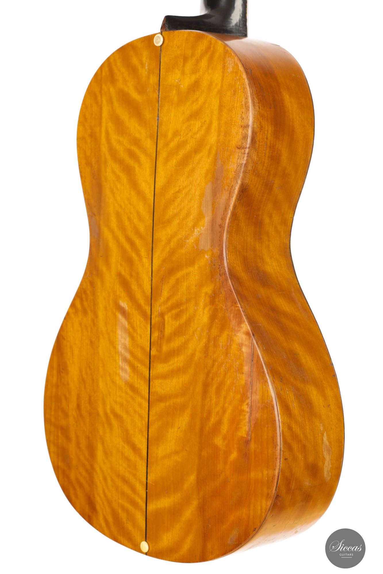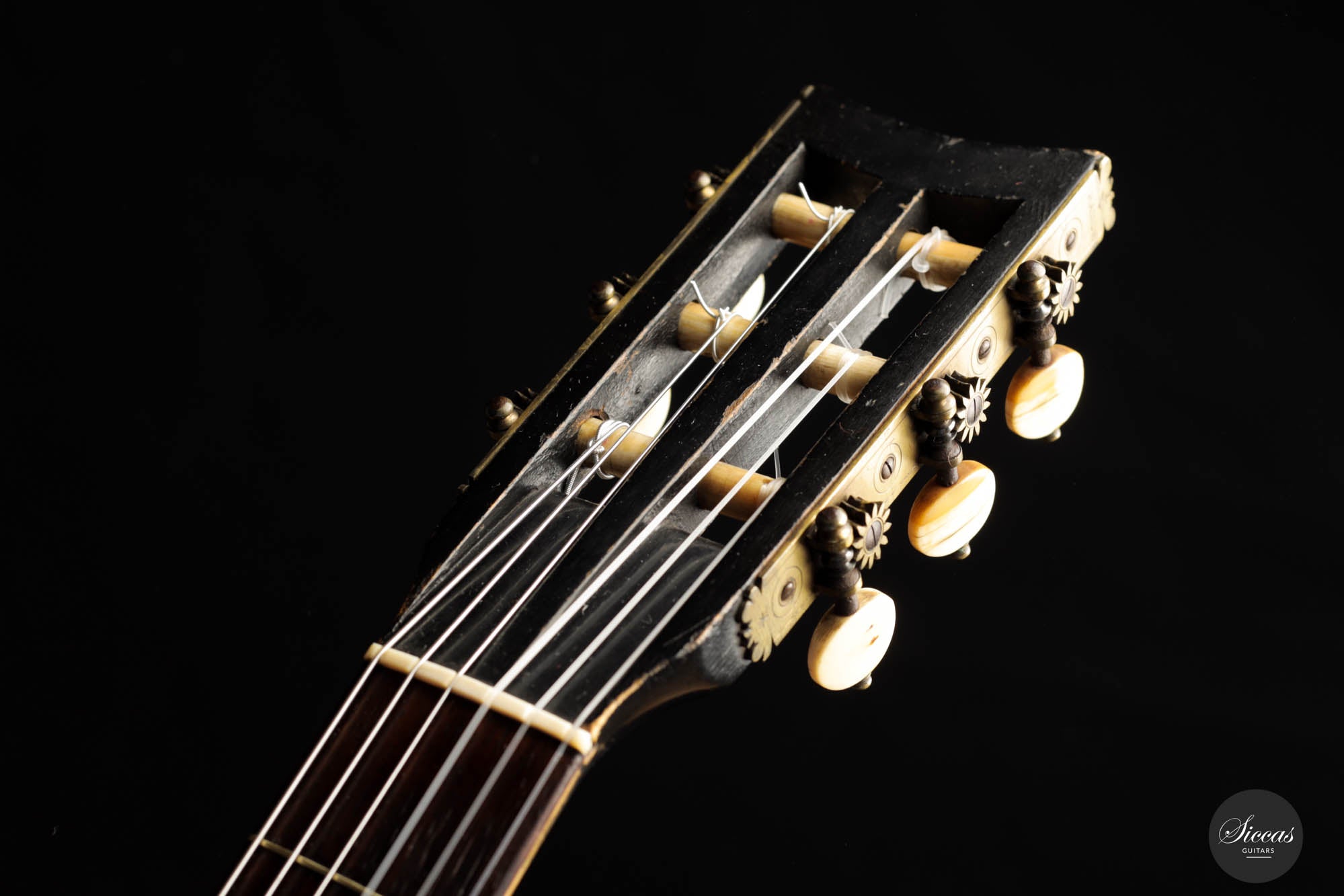 From the moment one lays eyes on this 1830 gem, the allure of its history is undeniable. The spruce top, despite the passage of nearly two centuries, still resonates with the whispers of countless melodies played upon it. Its timeworn visage, adorned with several gracefully repaired cracks, speaks not of damage, but of a life fully lived; a testament to the countless hands it has passed through and the stories it could tell.