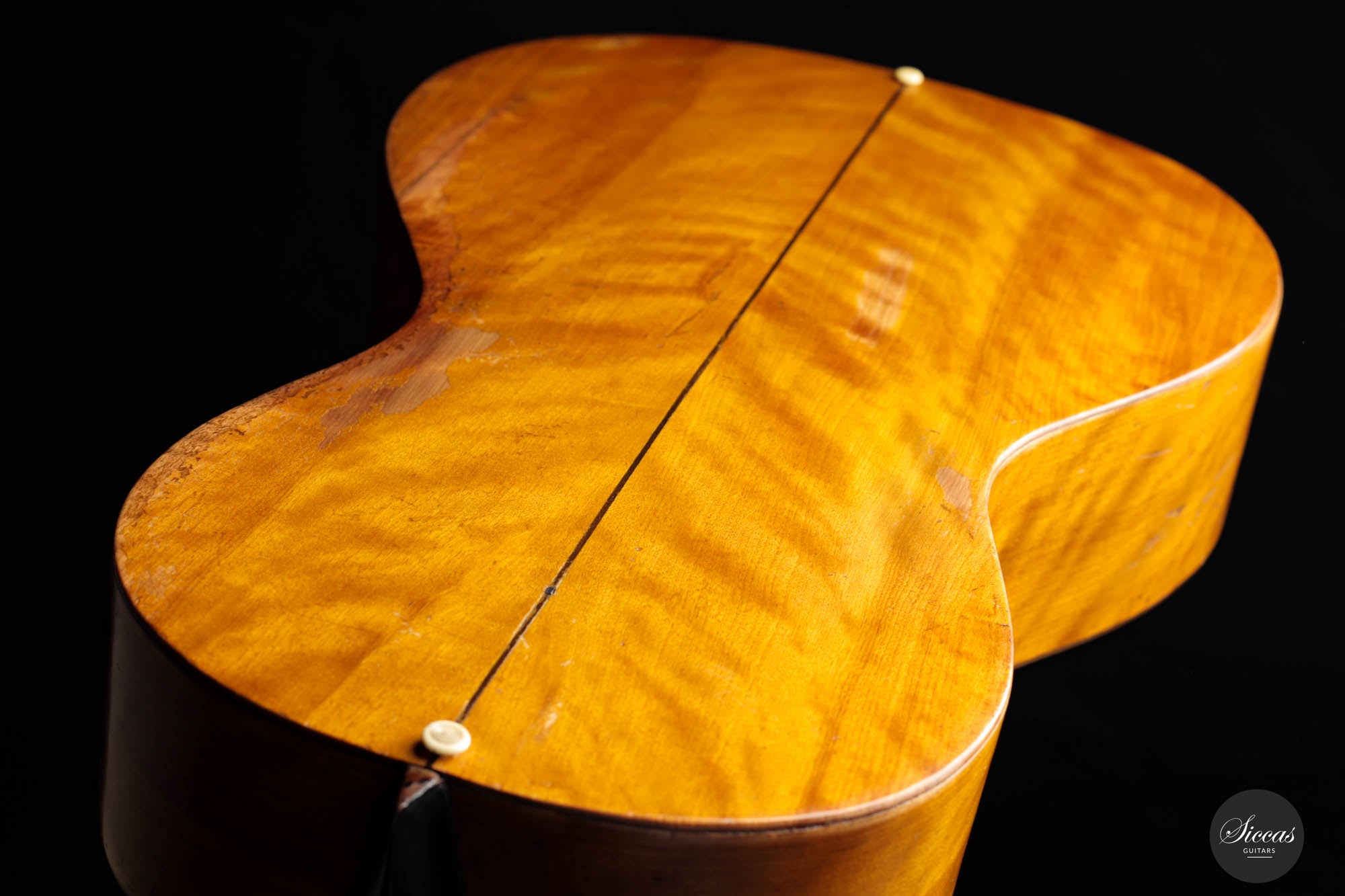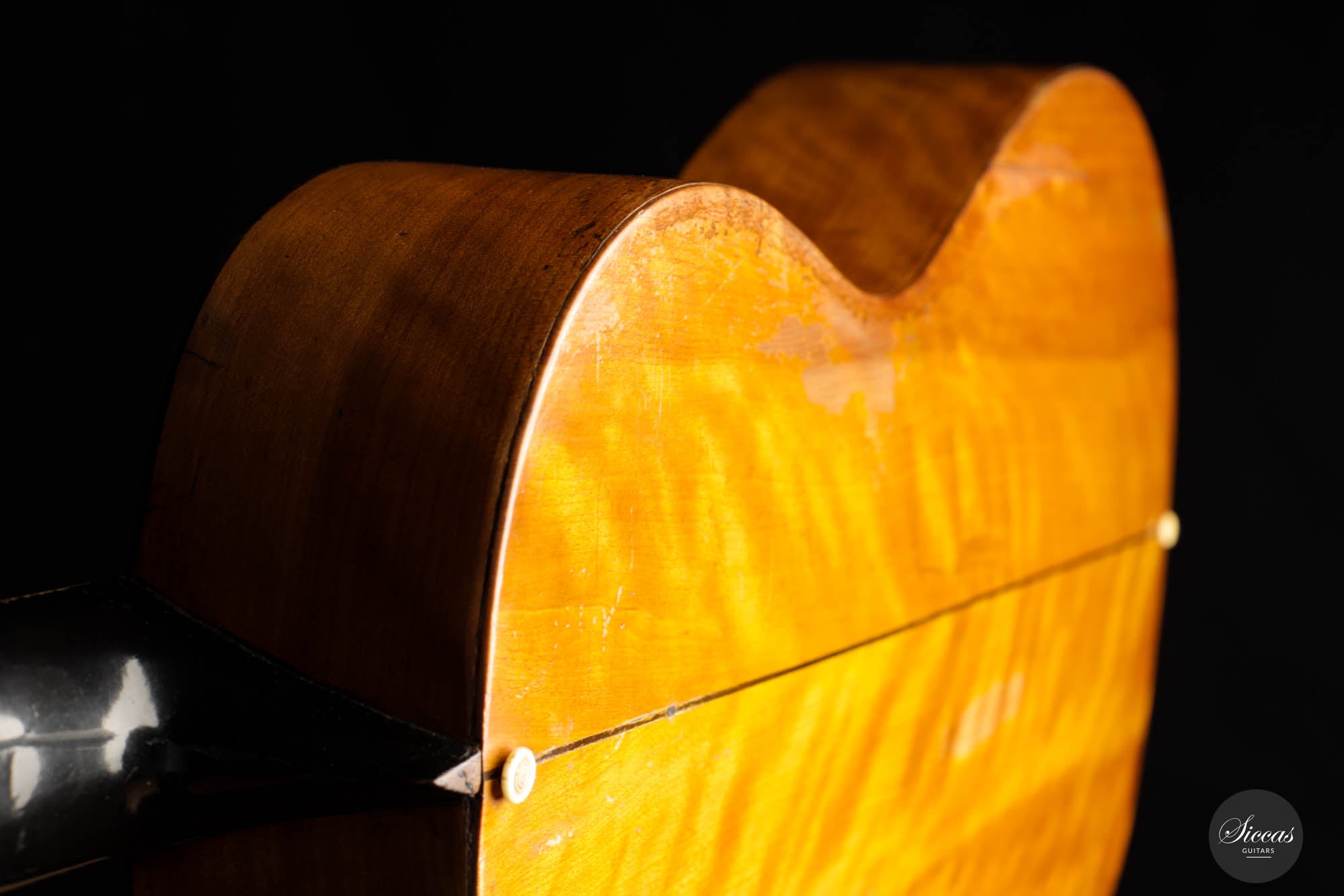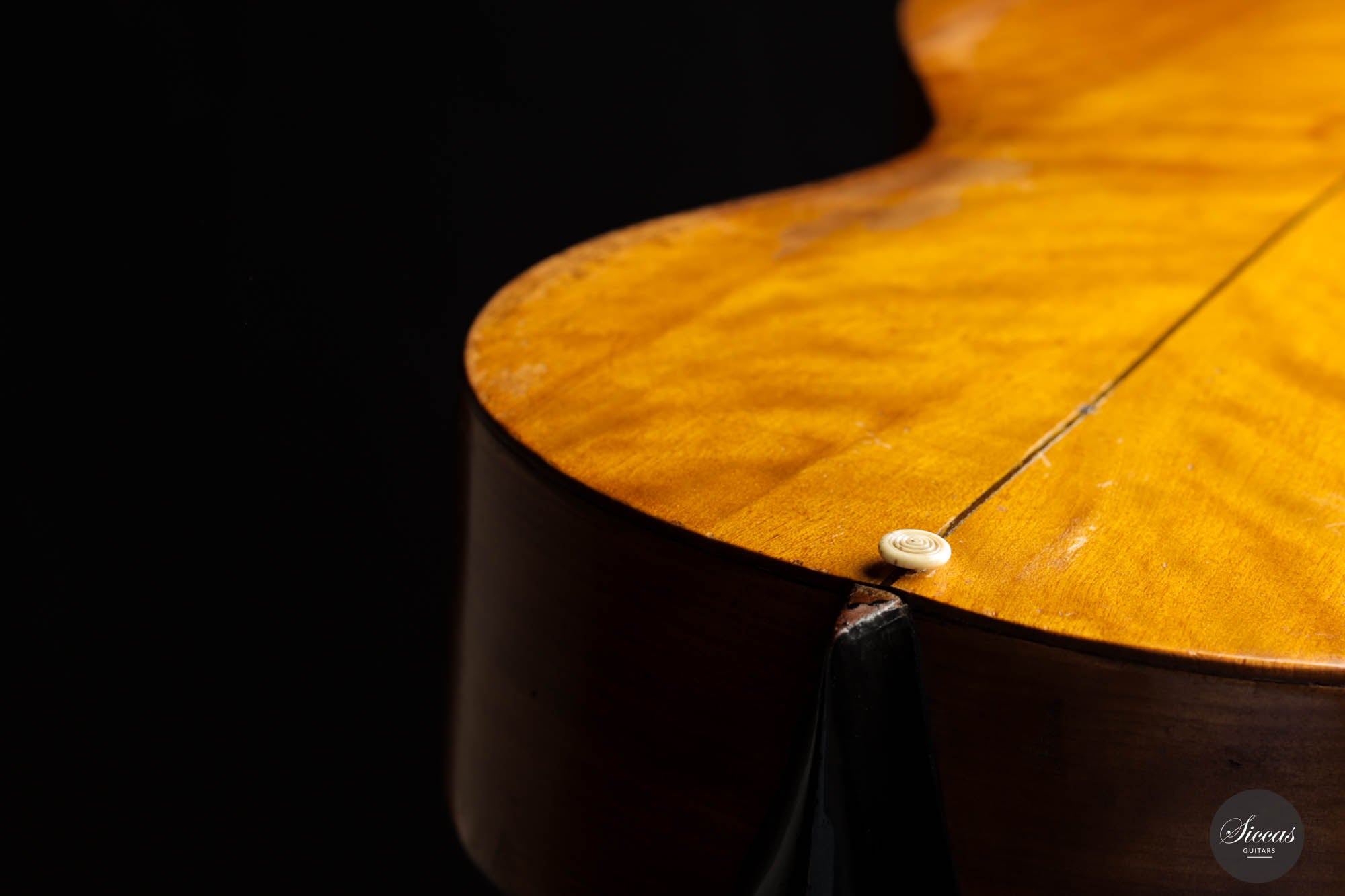 Acoustically, this Panormo guitar sings with a voice that is both powerful and refined. The spruce top, matured with age, provides a depth and warmth to the tone, while the flamed maple back and sides contribute a brilliance and clarity that is nothing short of mesmerizing. Each note is articulated with a richness that belies its age, offering a sonic experience that is both nostalgic and timeless.
