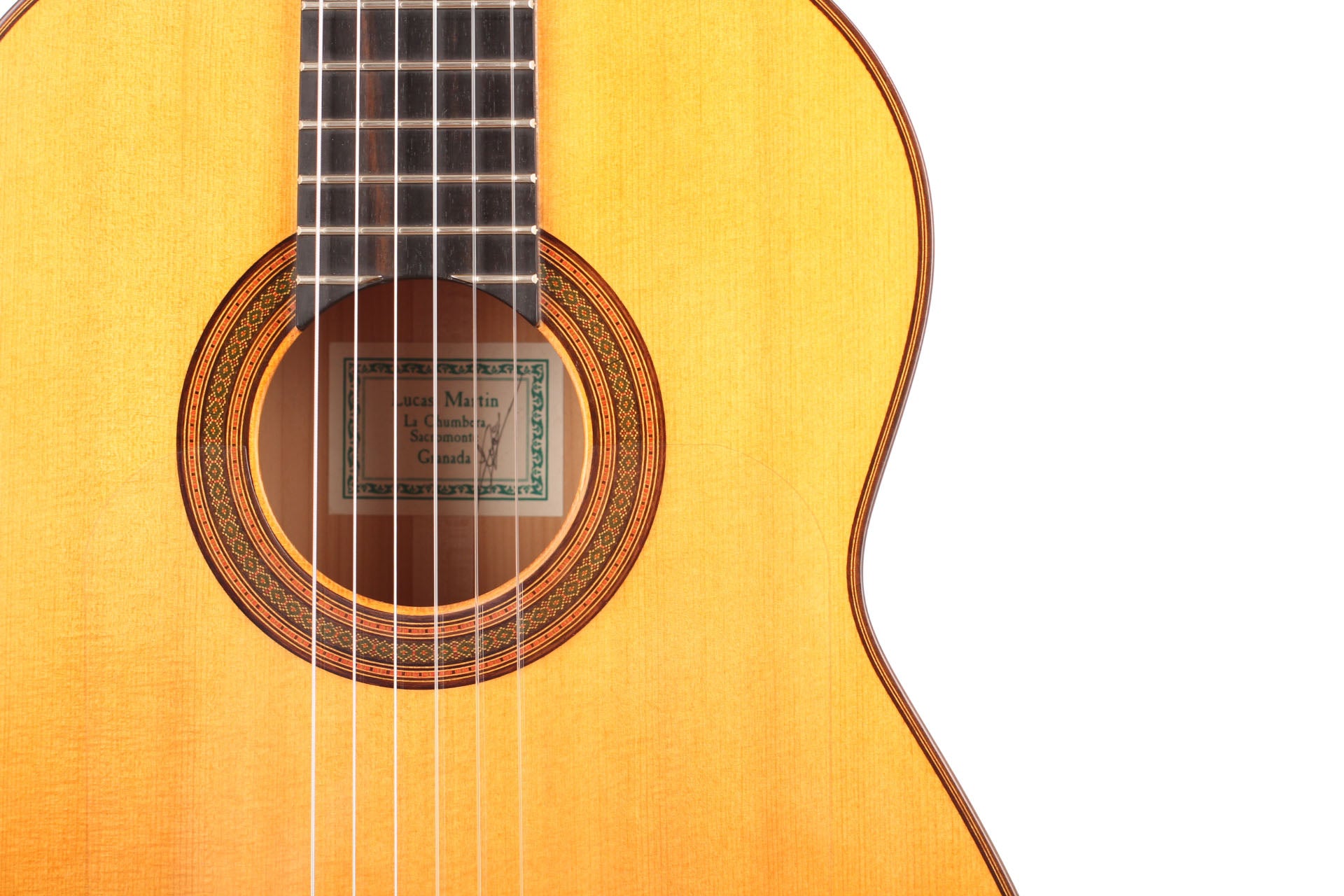 Lucas Martin was born in 1984 in Malaga, Spain. In 2002 he started to build his first guitar under the guide father. In 2006 he started to work in his father’s workshop in Sacromonte. He dedicated himself to construct traditional flamenco and classical. This flamenco guitar was made in 2008 and has cypress back and sides. The top is made of spruce. All French-polished. Original condition, no cracks or repairs. A hardshell case is included.