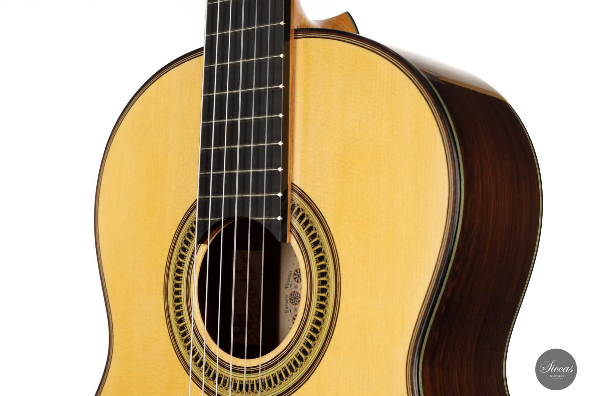 As always with Marco's guitars, this is a lightweight, traditional powerhouse. The responsiveness, volume and overall energy of this instrument are a revelation. With lyrical baryton basses and crystal clear, strikingly coloured trebles, this is a sound you won't forget. On top of that, the playability is superb, resulting in an inspiring instrument that is a joy to play and supports the player in every way.
