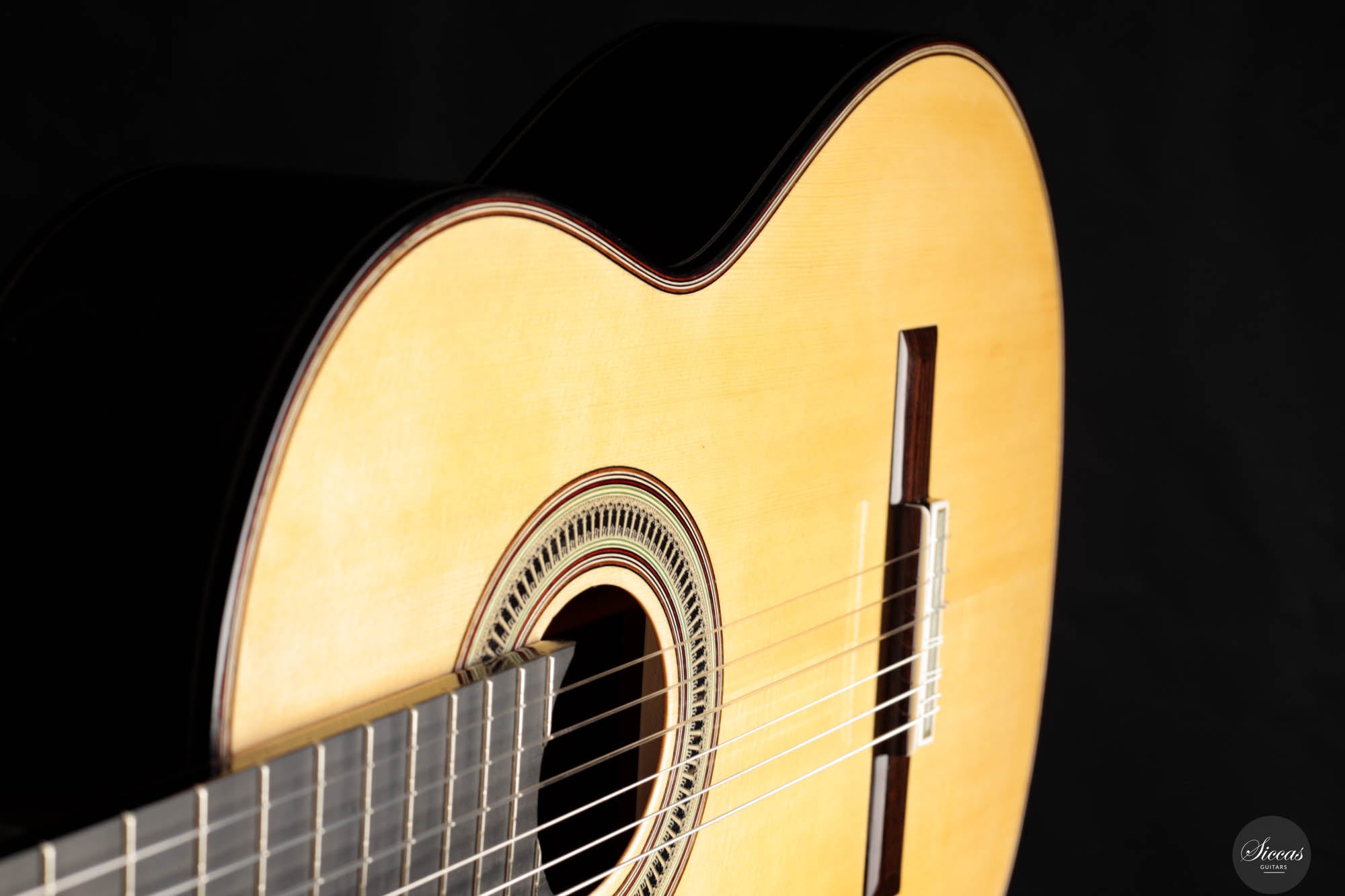 The classical guitar, with its soft nylon strings and characteristic timbre, has become a symbol of chamber music, Spanish tradition, and concert repertoire. Its modern form was shaped by Antonio de Torres in the 19th century, setting the standard for the body, fan bracing, and the 65-centimeter scale length that are still used today. Instruments in this category open up a rich palette from the refined Romantic miniatures of Tárrega to the majestic concertos of Rodrigo. Here you will find guitars that preserve historical continuity and at the same time inspire new interpretations.