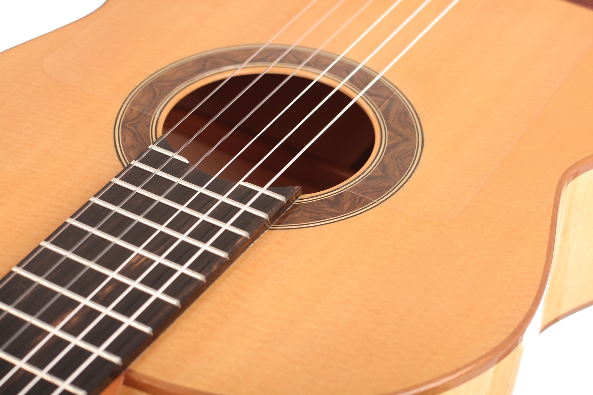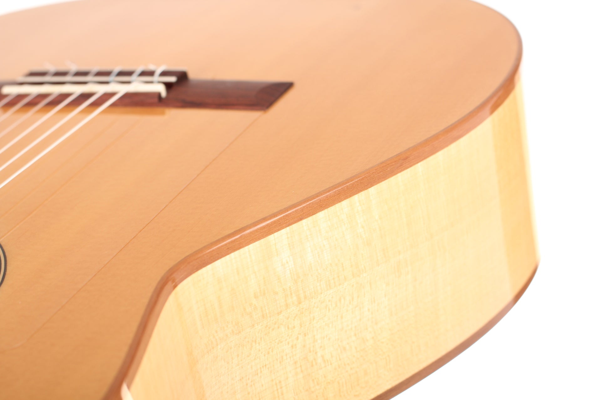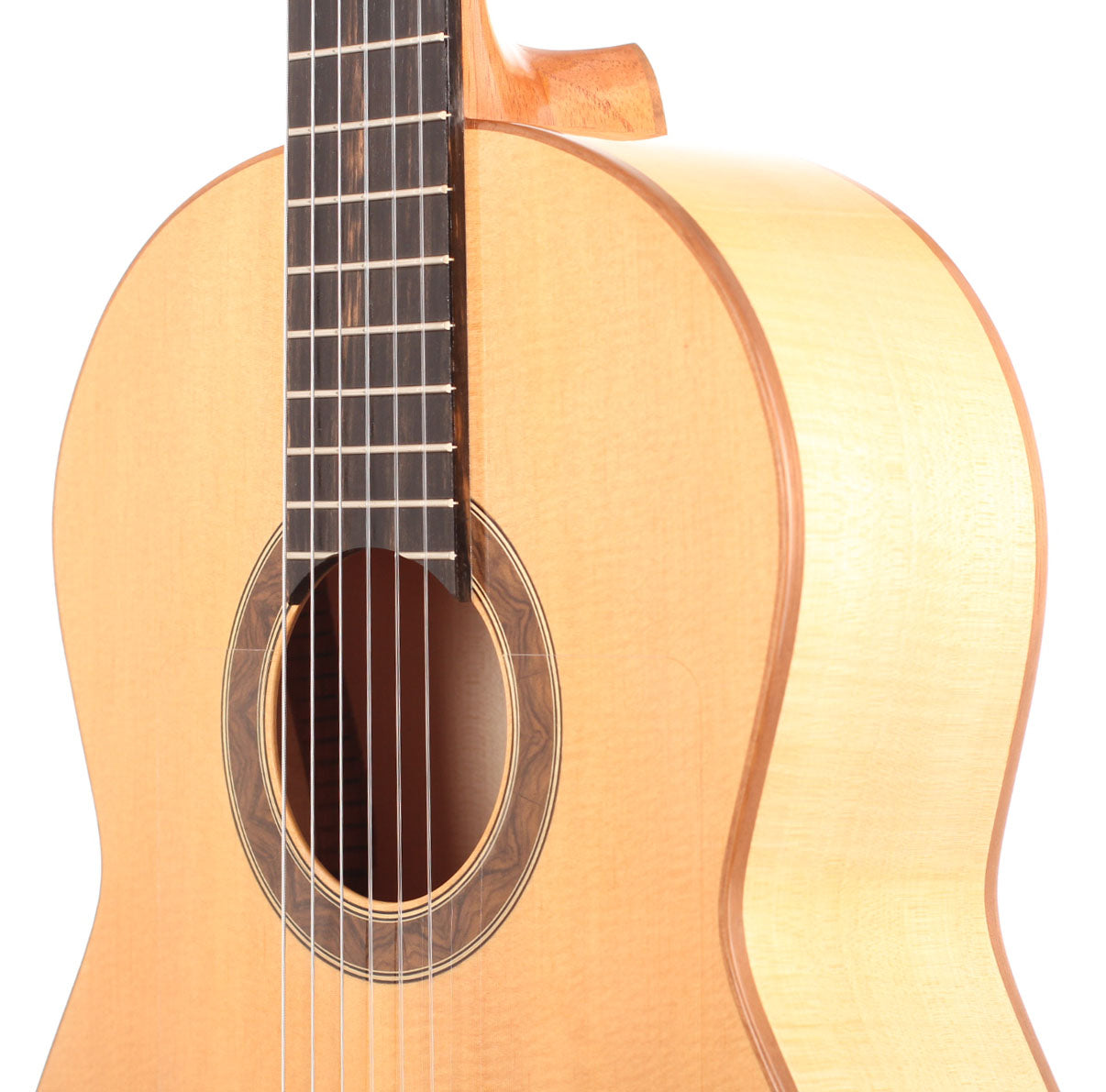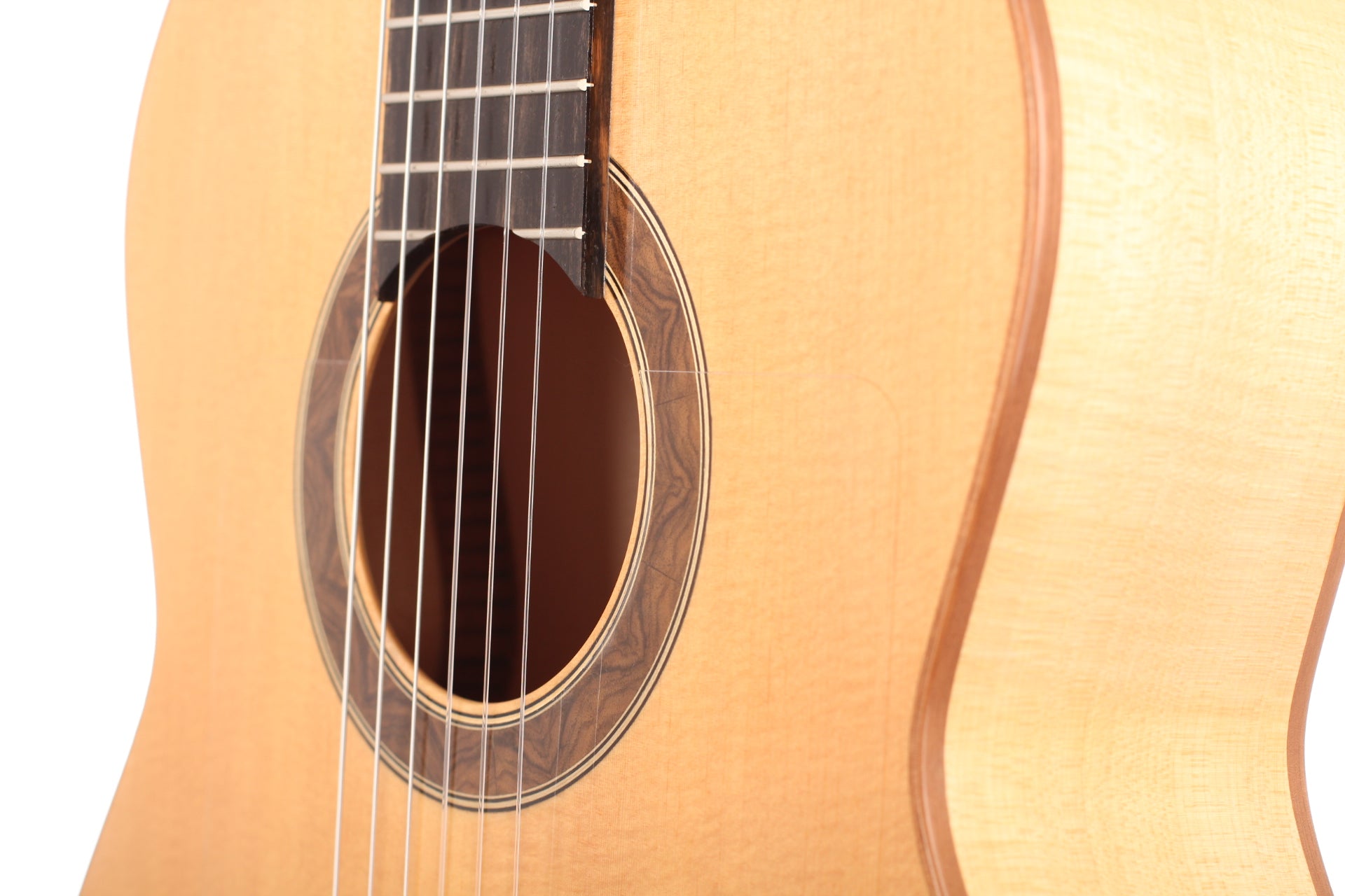 The classical guitar, with its soft nylon strings and characteristic timbre, has become a symbol of chamber music, Spanish tradition, and concert repertoire. Its modern form was shaped by Antonio de Torres in the 19th century, setting the standard for the body, fan bracing, and the 65-centimeter scale length that are still used today. Instruments in this category open up a rich palette from the refined Romantic miniatures of Tárrega to the majestic concertos of Rodrigo. Here you will find guitars that preserve historical continuity and at the same time inspire new interpretations.Look all products of the collection -