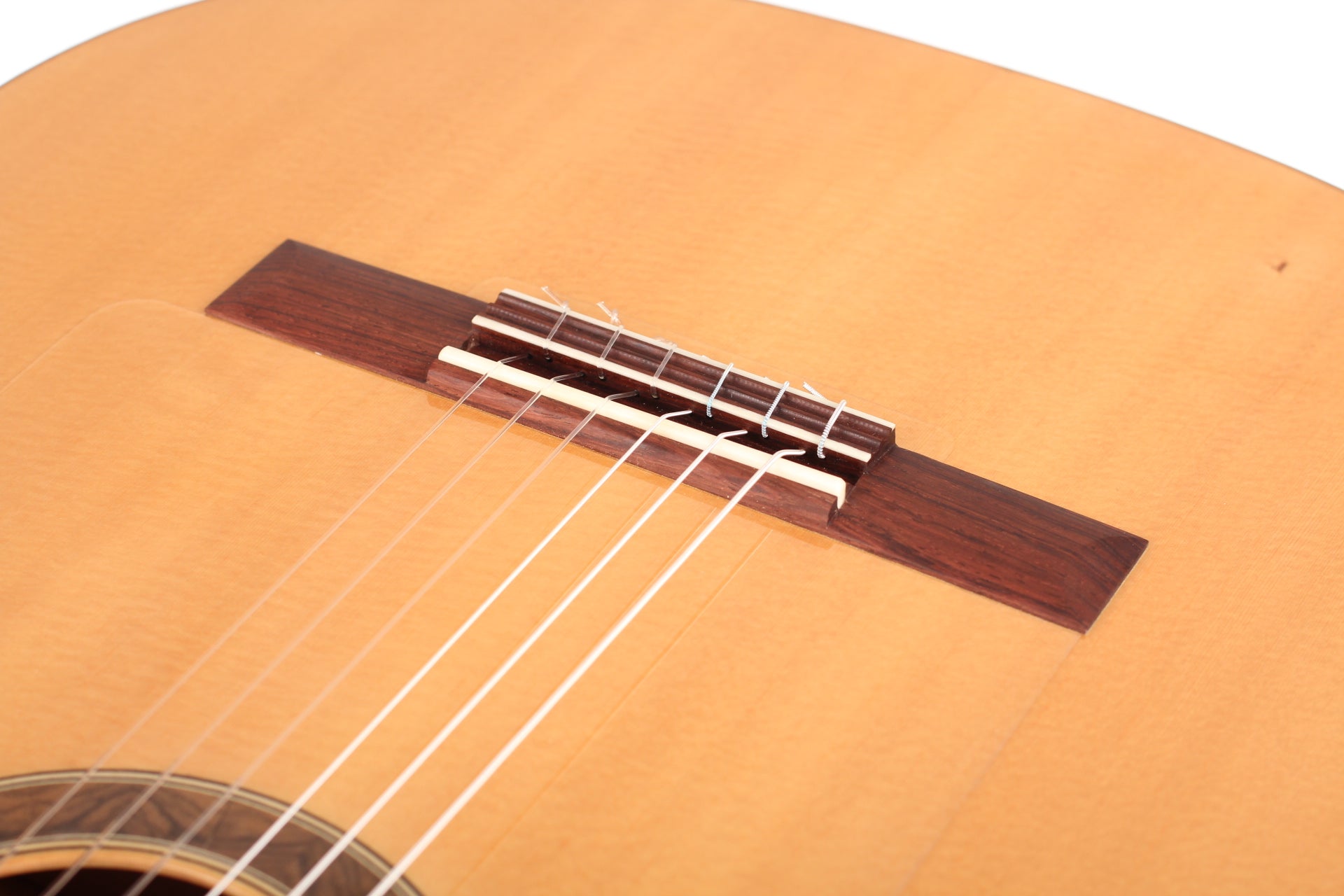 Price: 6.490 €Sale price 6.490 € Price:Unit price / per Tax free (0% DE)0 €Save: -6.490 €Construction Year: 2025Construction Type: TraditionalTop: CedarBack and Sides: Madagascar rosewoodSoundboard Finish: PolyurethaneBody Finish: PolyurethaneAir Body Frequency: F sharp / GWeight (g): 1630Tuner: AparicioCondition: New -