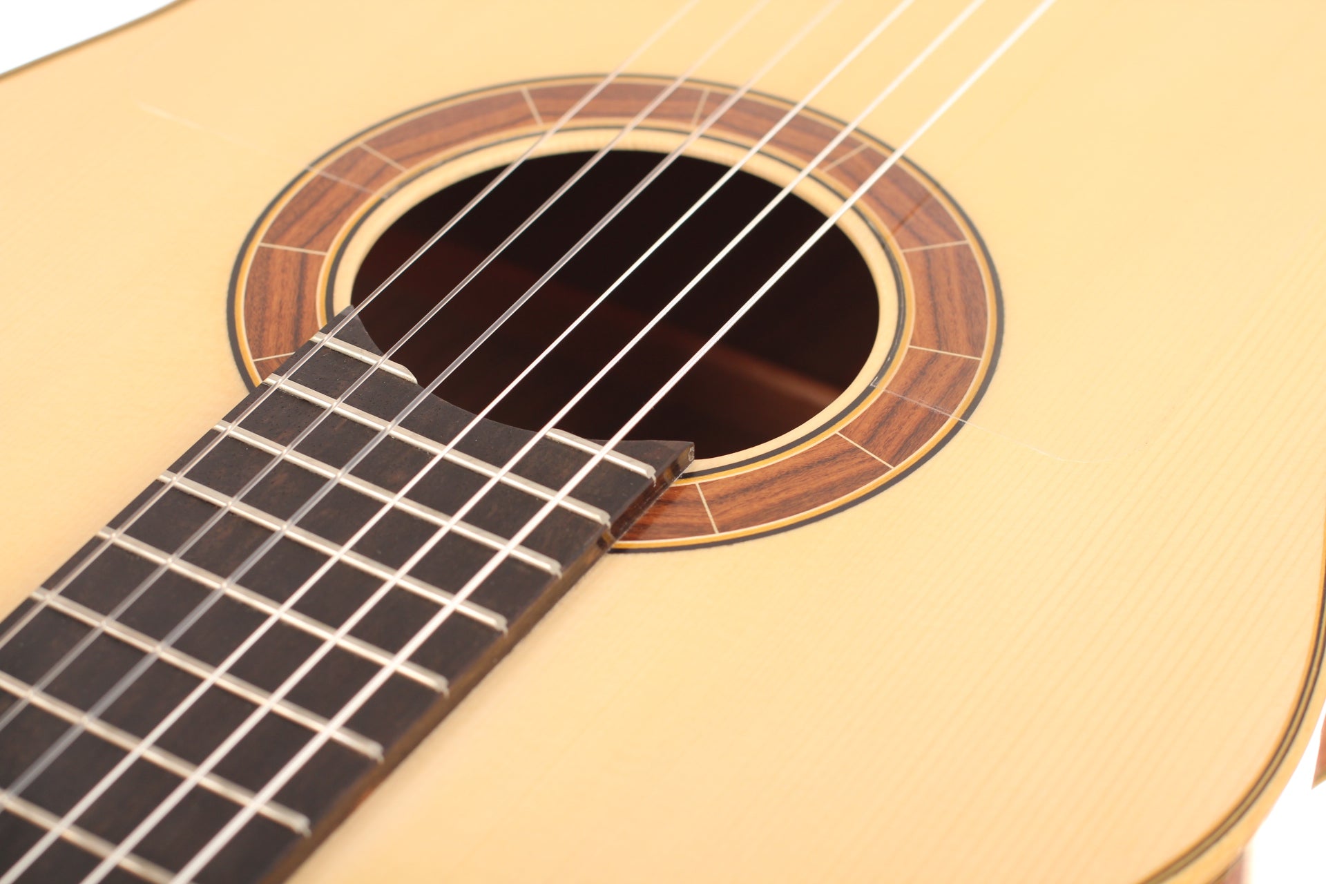 The classical guitar, with its soft nylon strings and characteristic timbre, has become a symbol of chamber music, Spanish tradition, and concert repertoire. Its modern form was shaped by Antonio de Torres in the 19th century, setting the standard for the body, fan bracing, and the 65-centimeter scale length that are still used today. Instruments in this category open up a rich palette from the refined Romantic miniatures of Tárrega to the majestic concertos of Rodrigo. Here you will find guitars that preserve historical continuity and at the same time inspire new interpretations.Look all products of the collection -