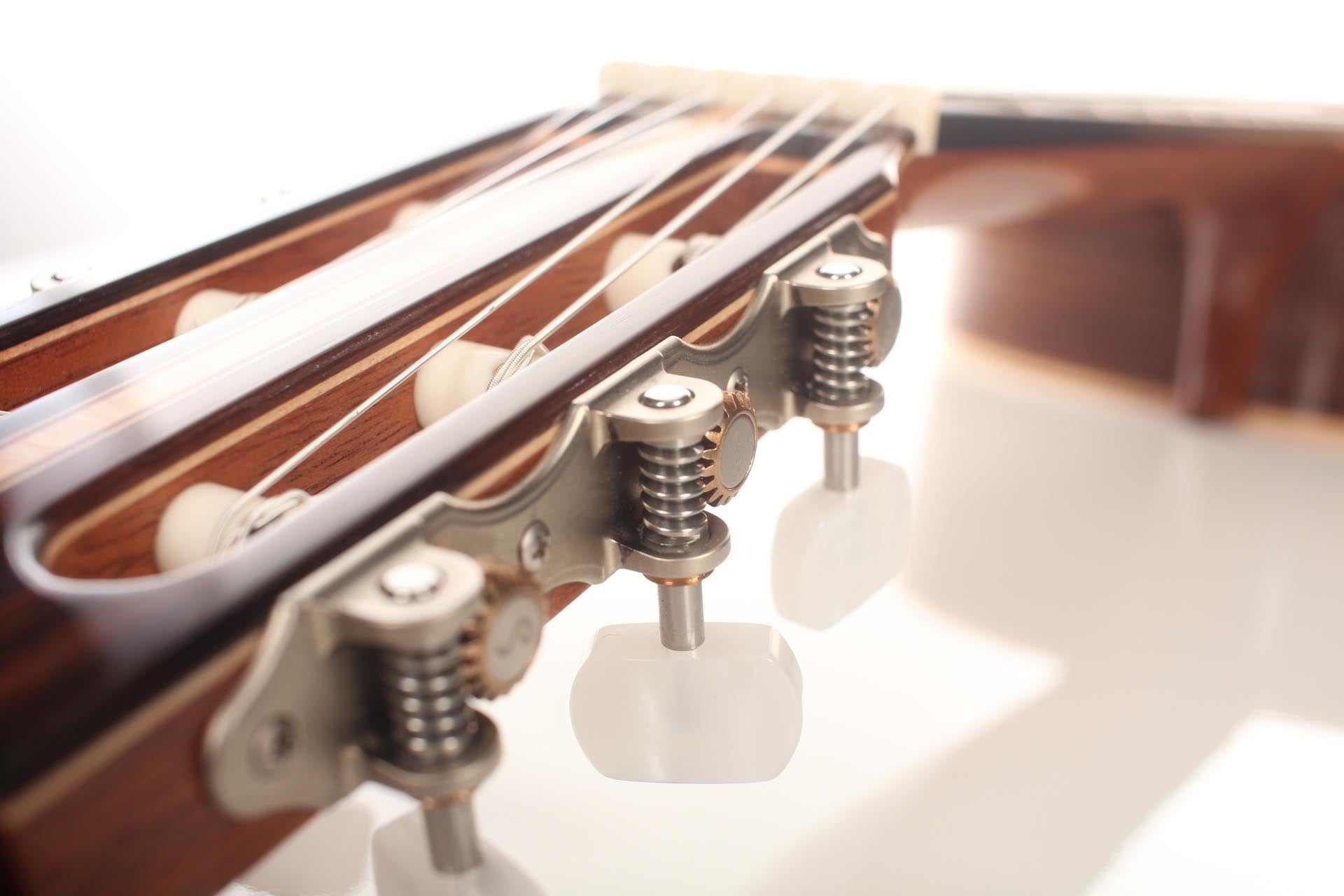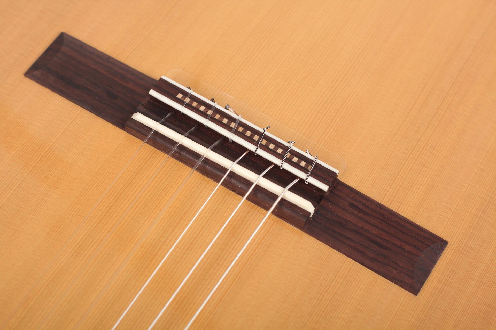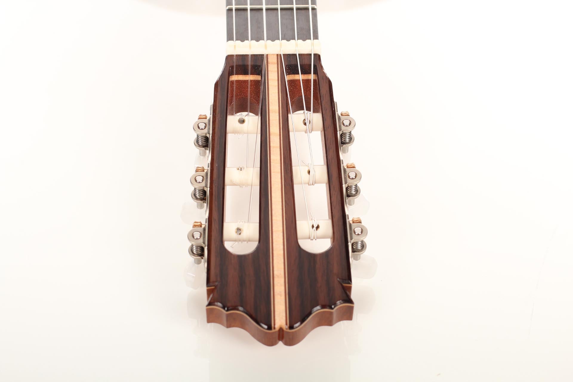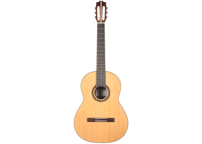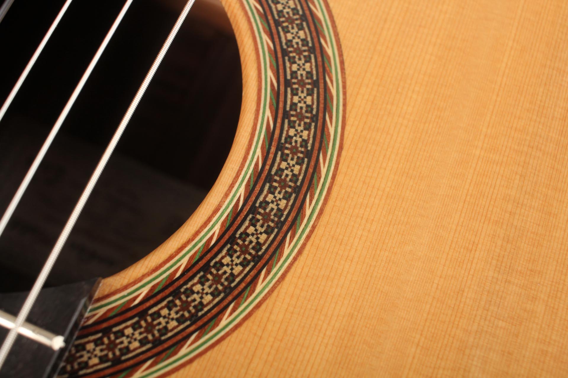 The top of this guitar is made of cedar - back and sides are made of Indian rosewood. The tuners are made by Schaller. All French-polished. A hard-shell case is included.