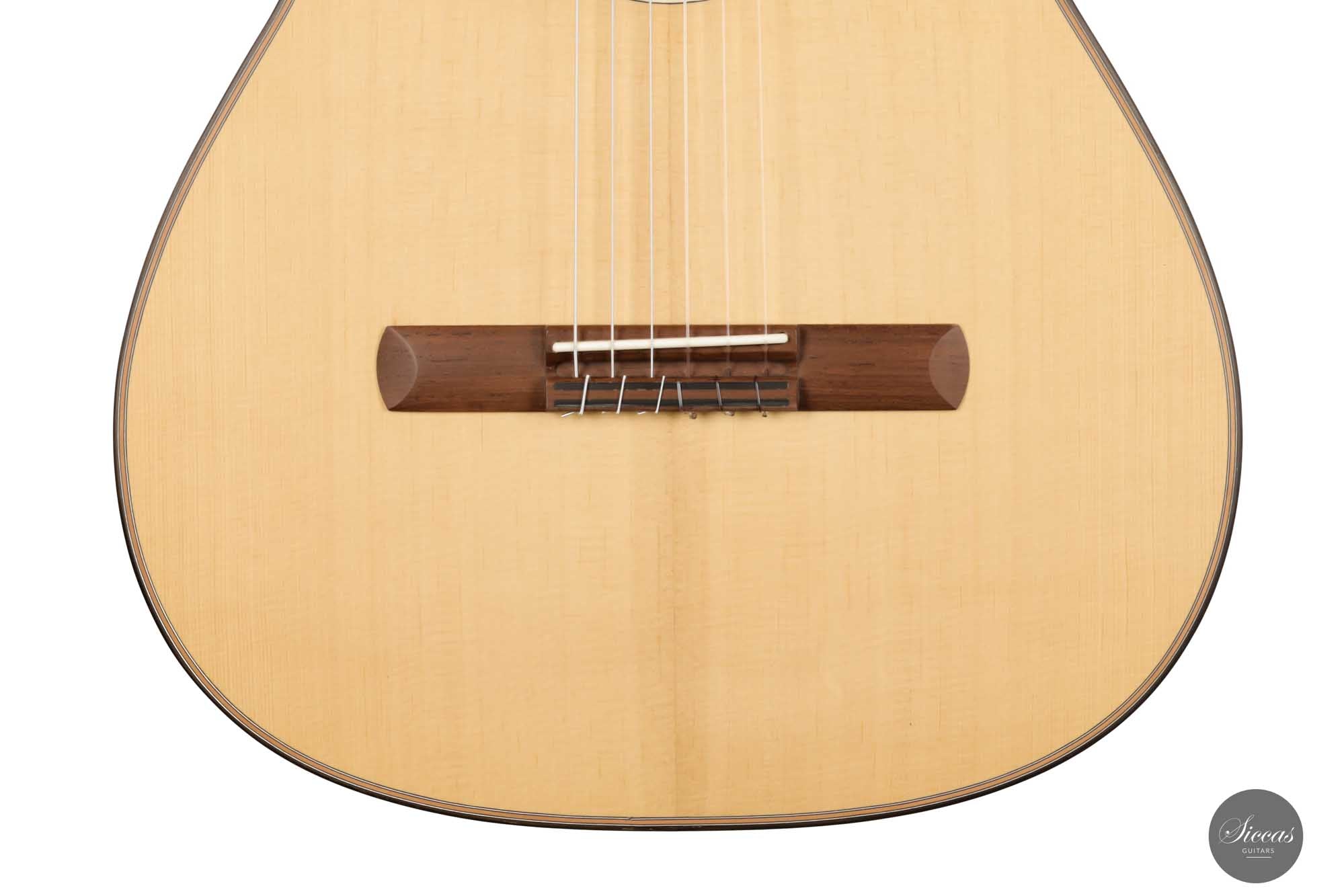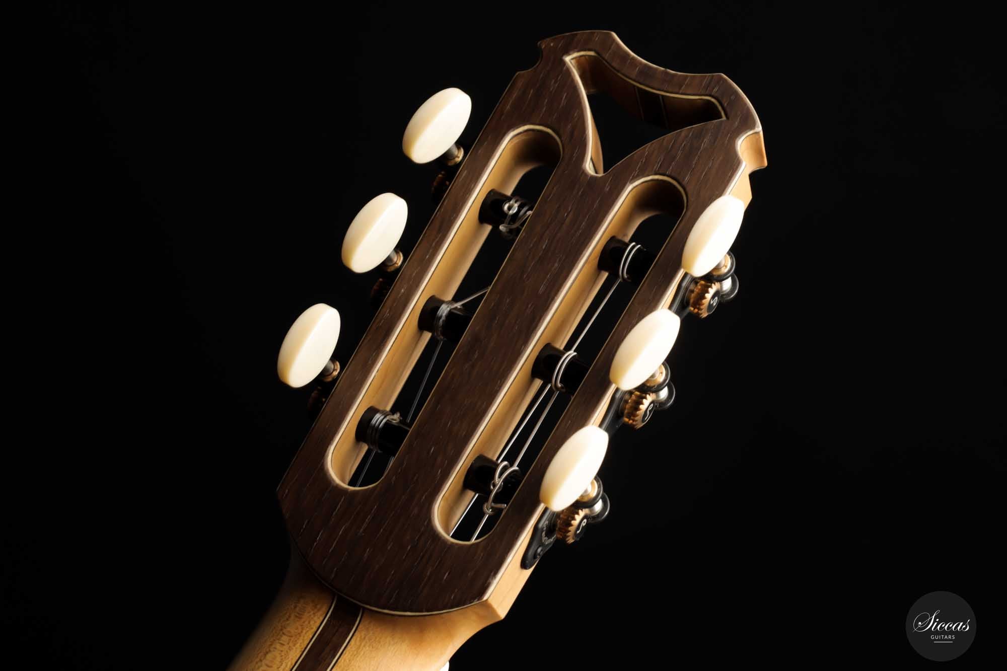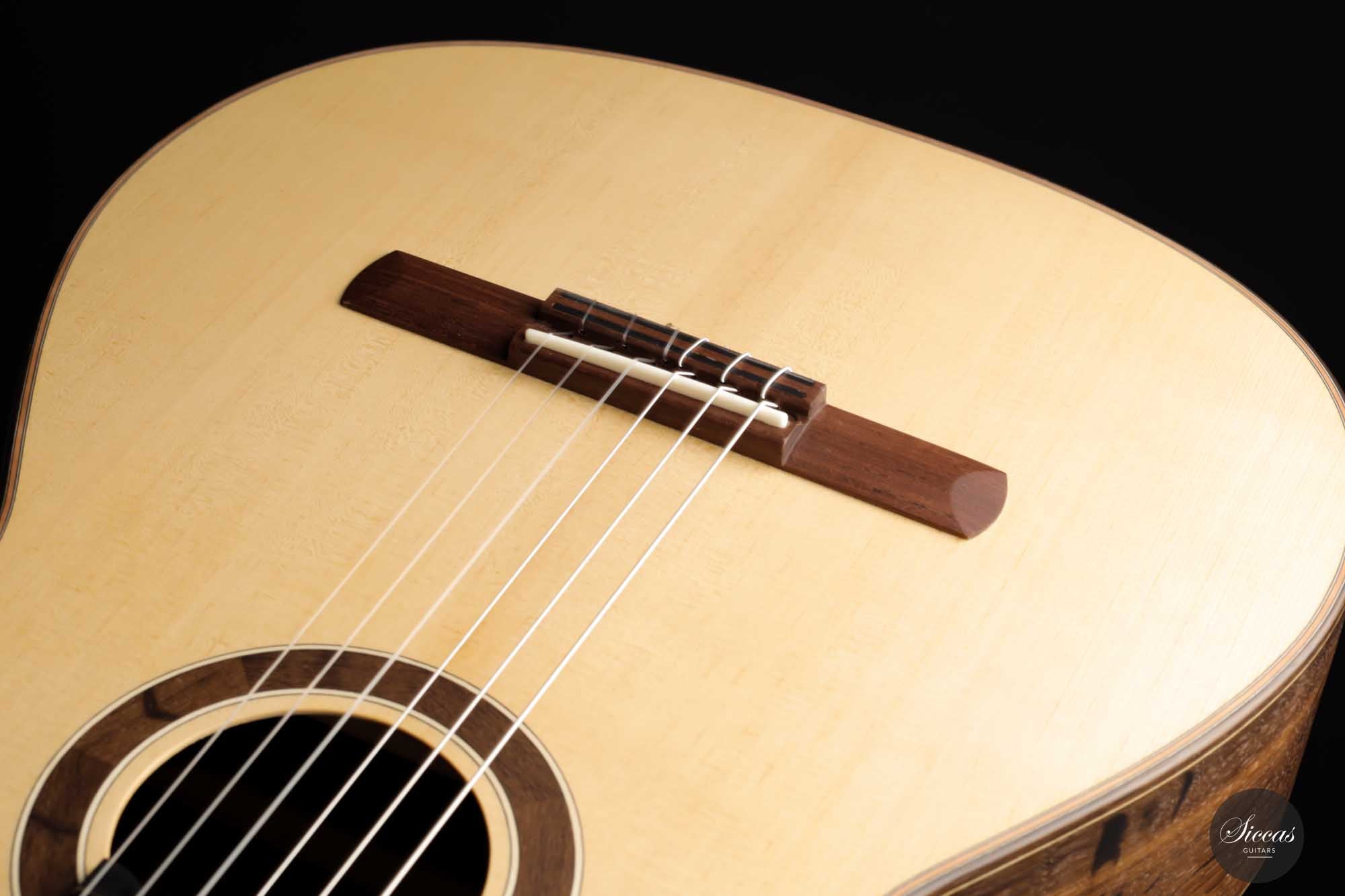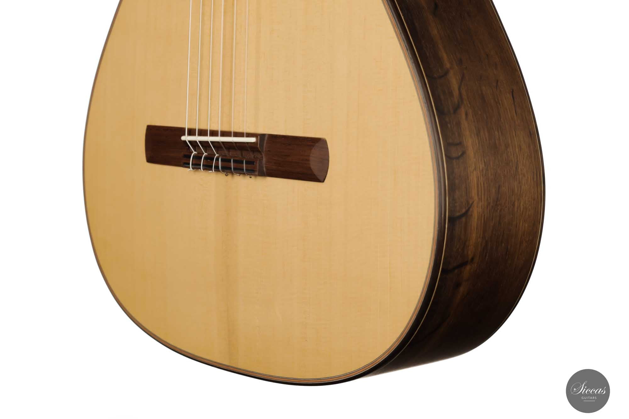 The flow cut model is a cutaway classical guitar that was developed for easy fingering and improved playability in the high registers. This guitar's volume and tonal qualities are also ideal for demanding improvisations and jazz pieces. This beautiful instrument features a unique selection of woods: a beautiful spruce soundboard combined with smoked oak back and sides. Furthermore, the fingerboard has a 12" radius, which makes this instrument exceptionally comfortable to play for the left hand. This brand-new guitar also features a Shadow SH4020 pickup system.