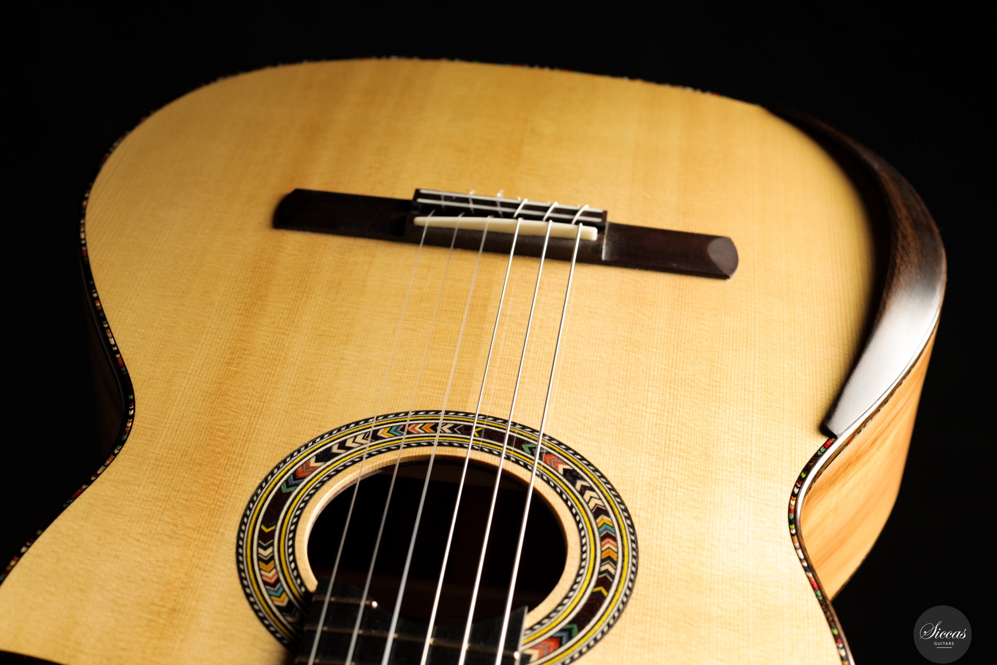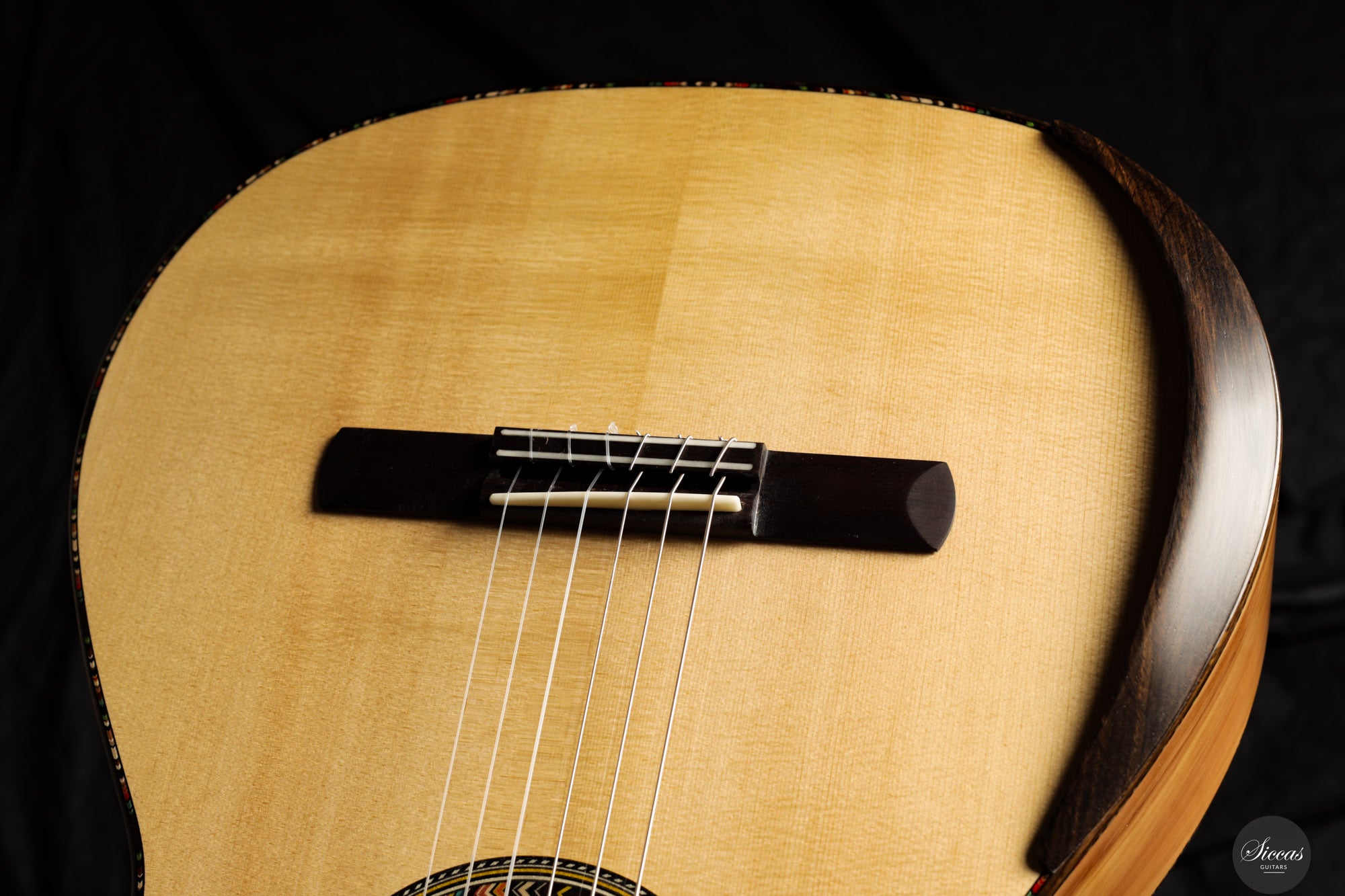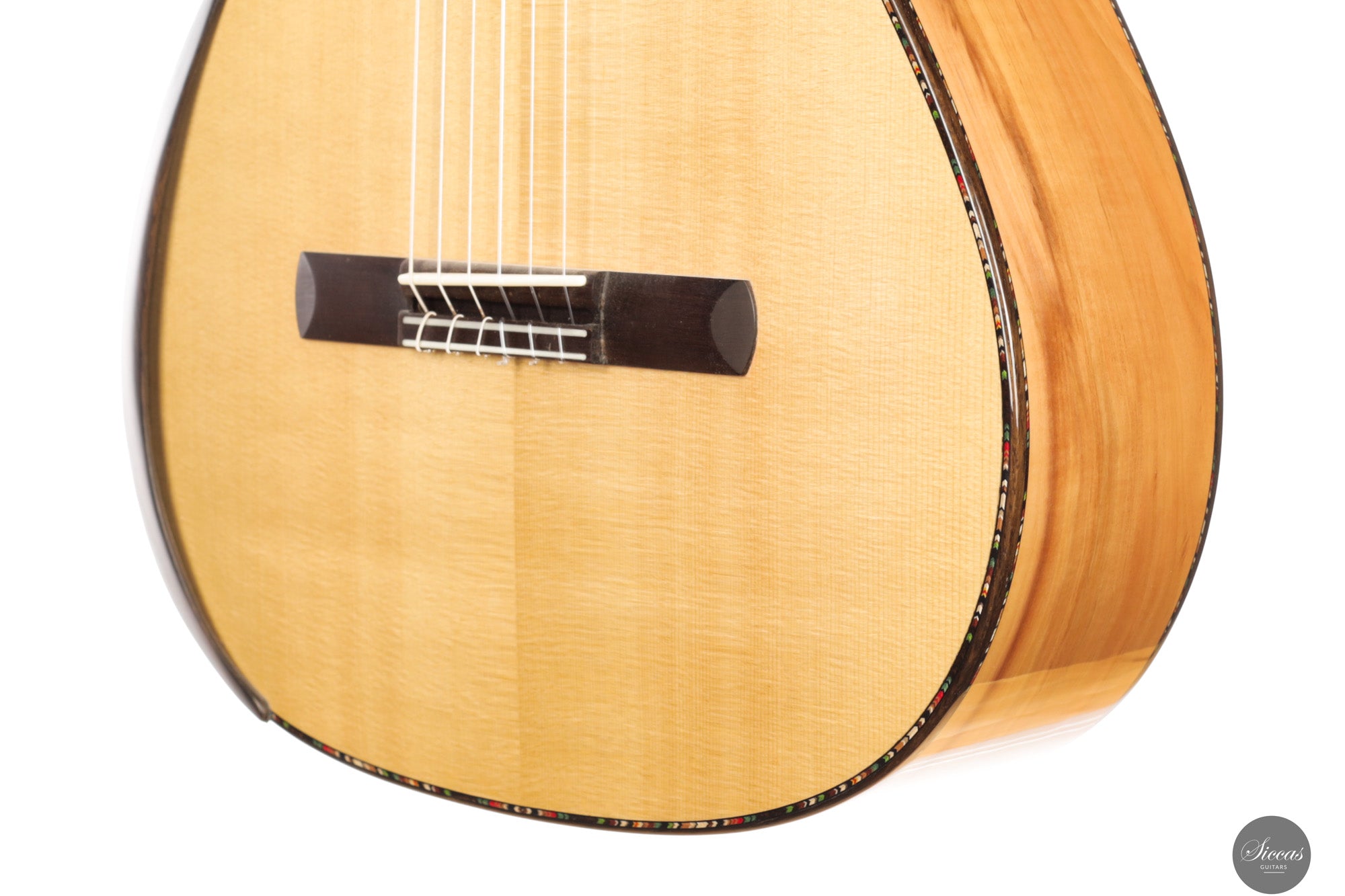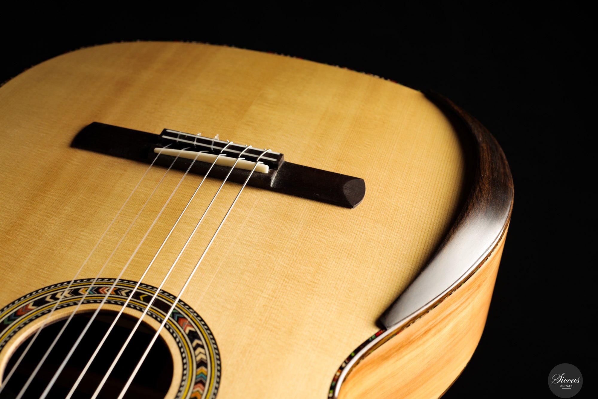 In sound the guitar is notably soft, round and pleasant, with an even response across all registers. The balance is consistent from bass to treble, giving each note the same sense of presence and intensity. Tones emerge easily without physical effort and are supported by a clear and stable sustain. The instrument resonates openly and reacts quickly, making fast passages and dynamic changes feel natural and unforced. Despite its modern construction, the sound remains cohesive and calm, offering a refined voice that rewards attentive shaping rather than sheer volume.