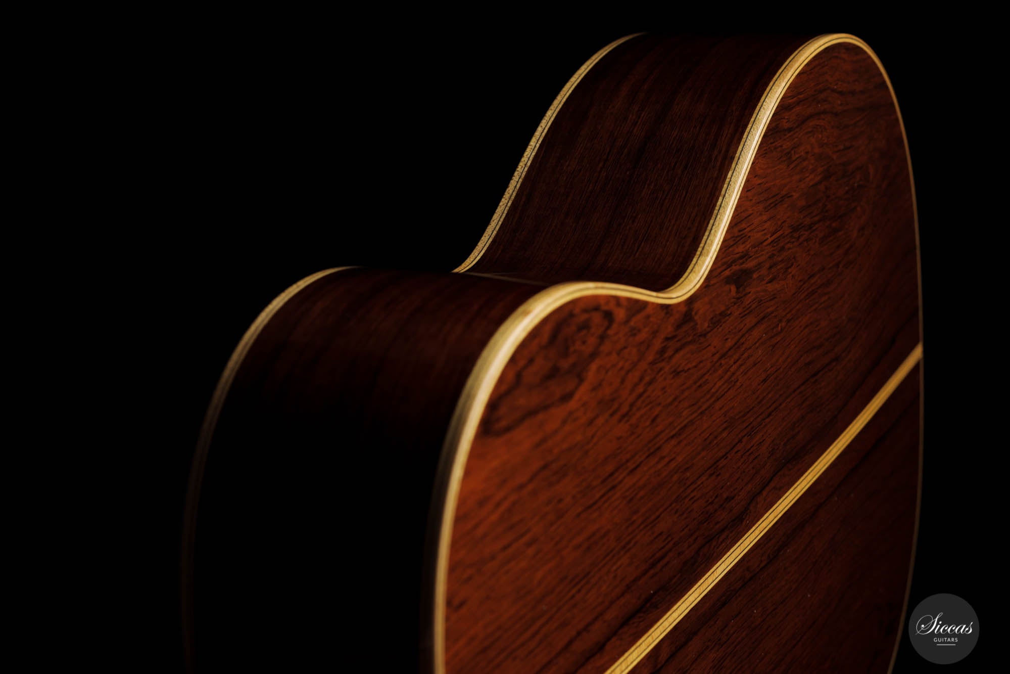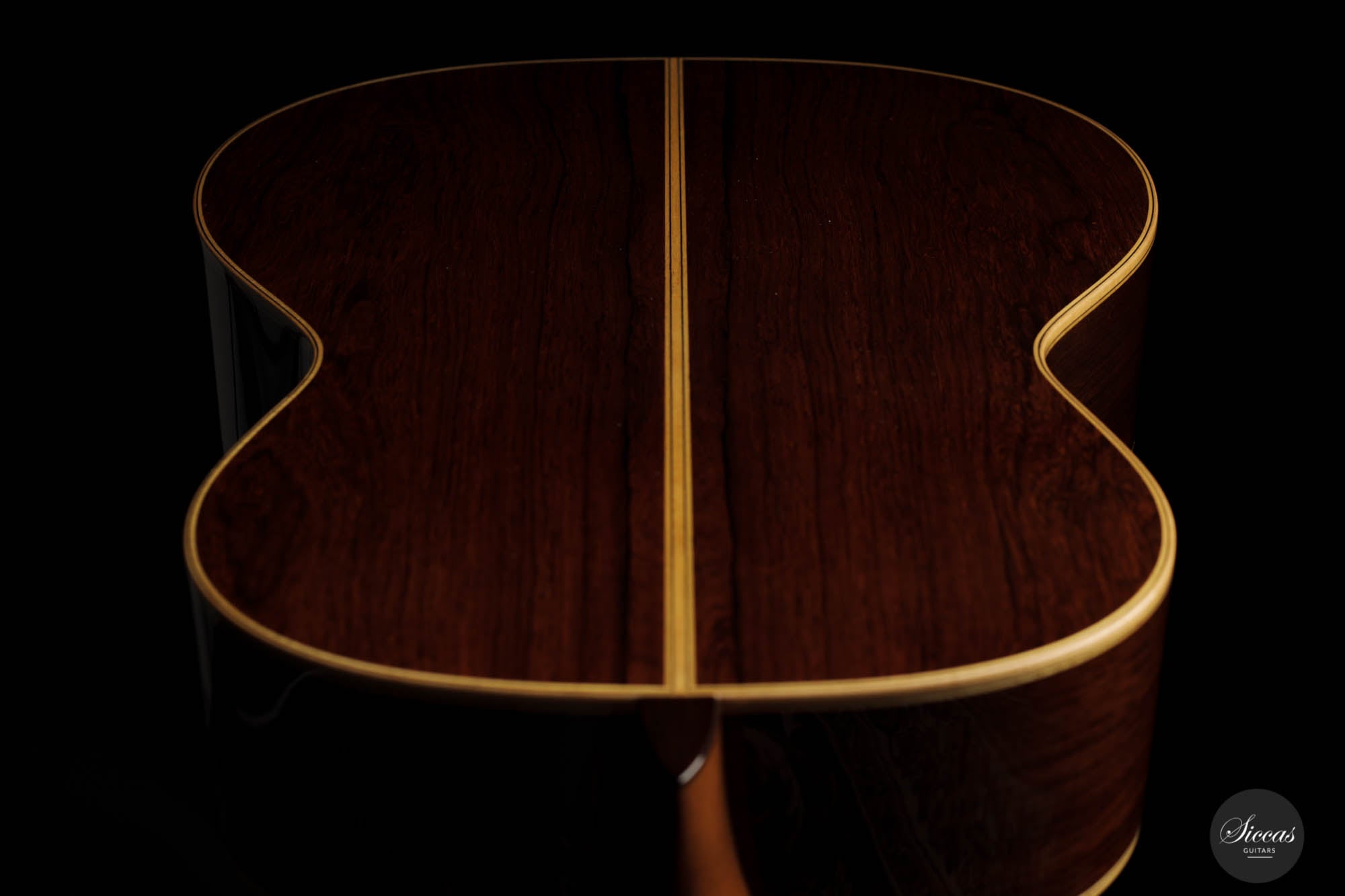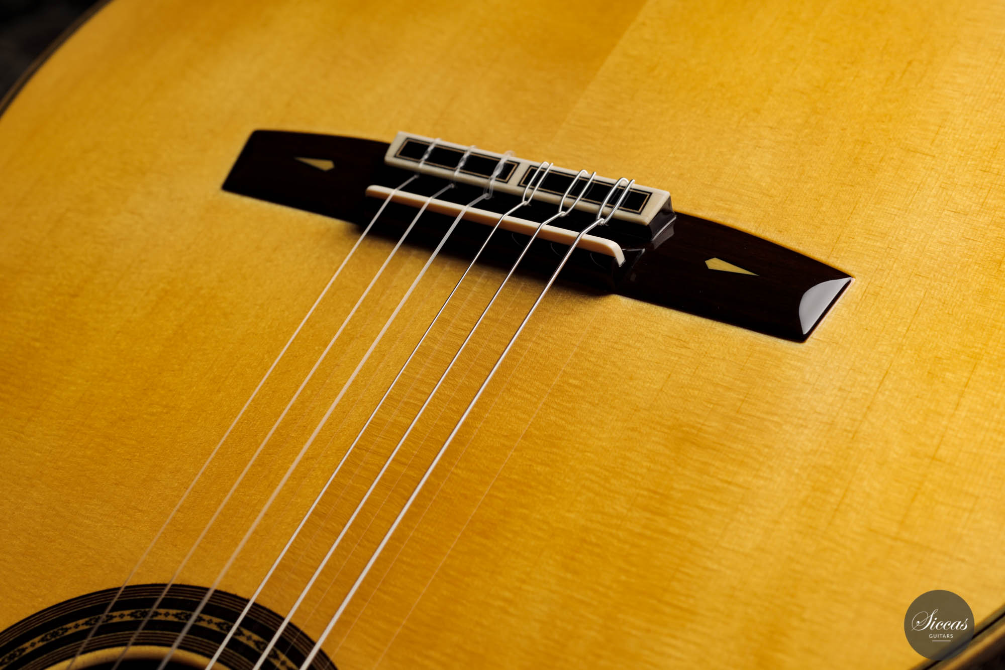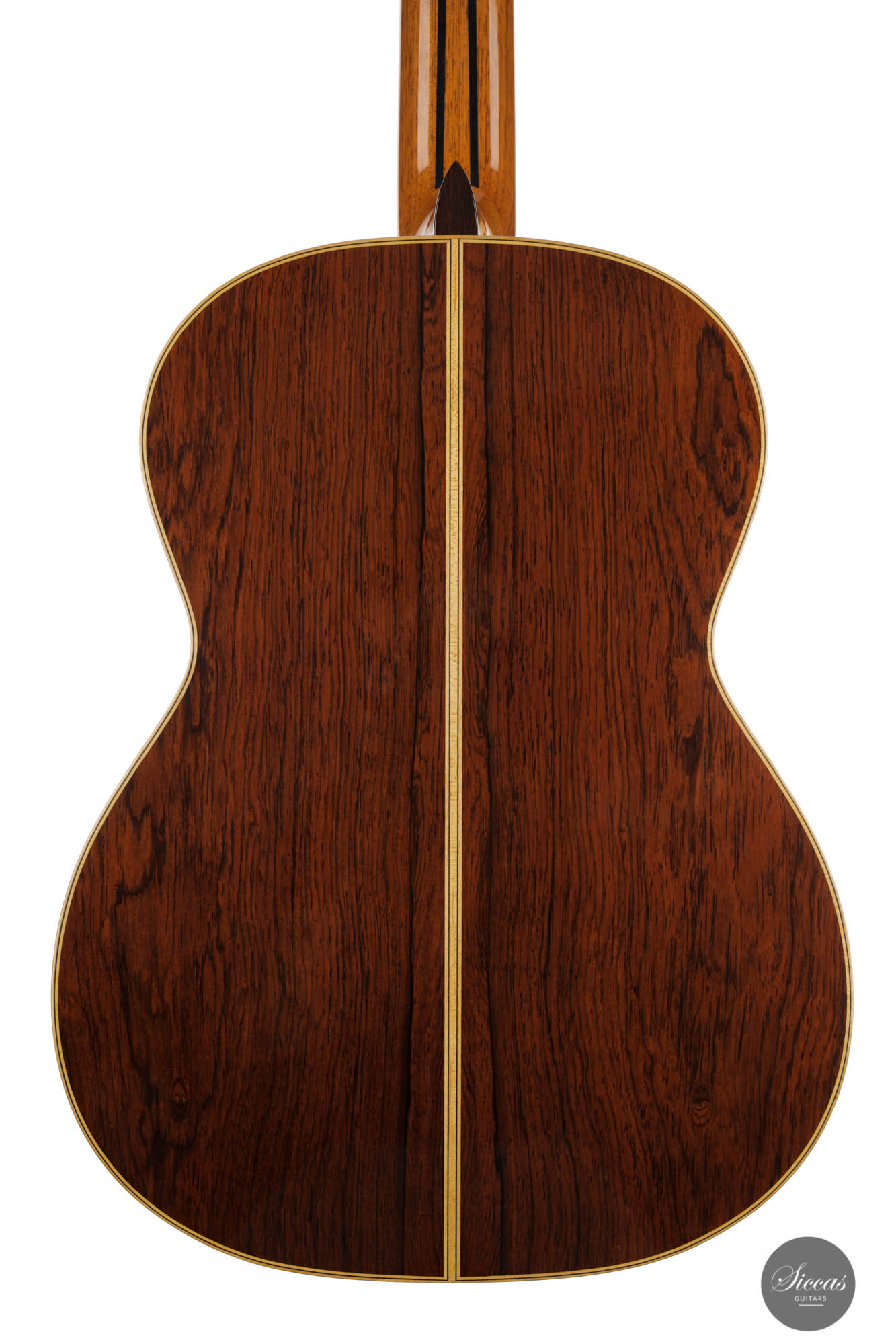 This elegant and classy guitar is a one-to-one replica of the instrument that won Mazaki Sakurai the first prize at the 1988 prestigious Paris International Guitar Luthiers Competition. This model "PC", standing for "Paris Competition", crystallizes Mazaki Sakurai's decades of experience in one guitar. It is characterized by the finest woods, most elaborate bracing pattern, and richest sound.