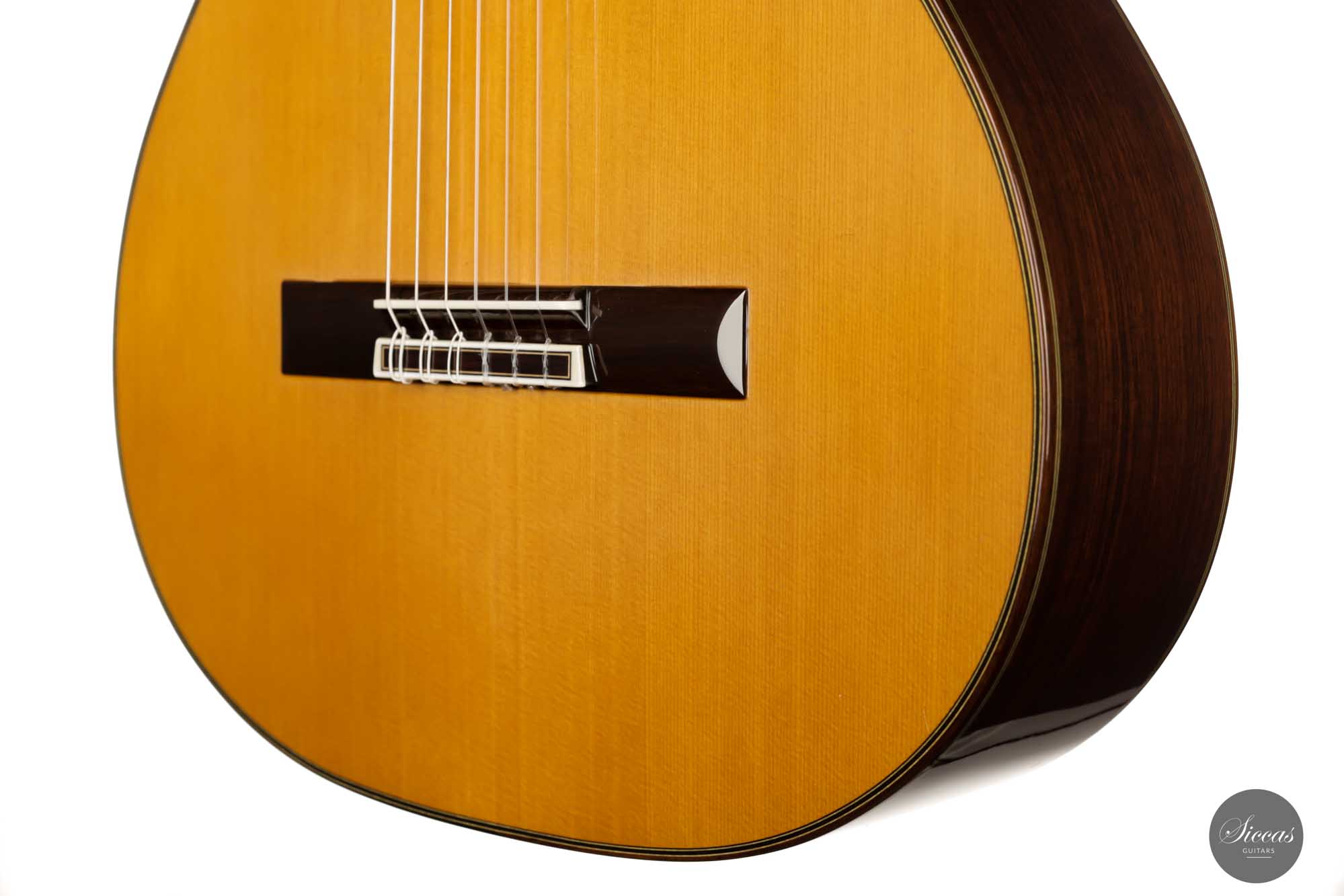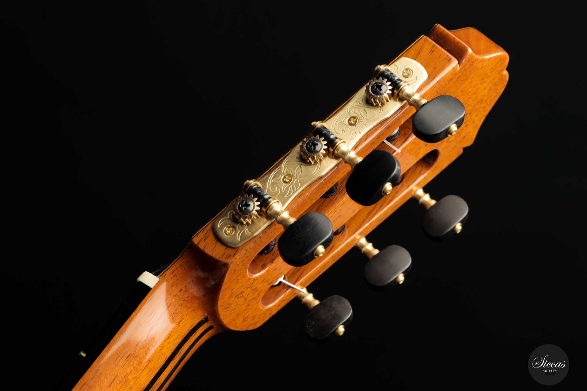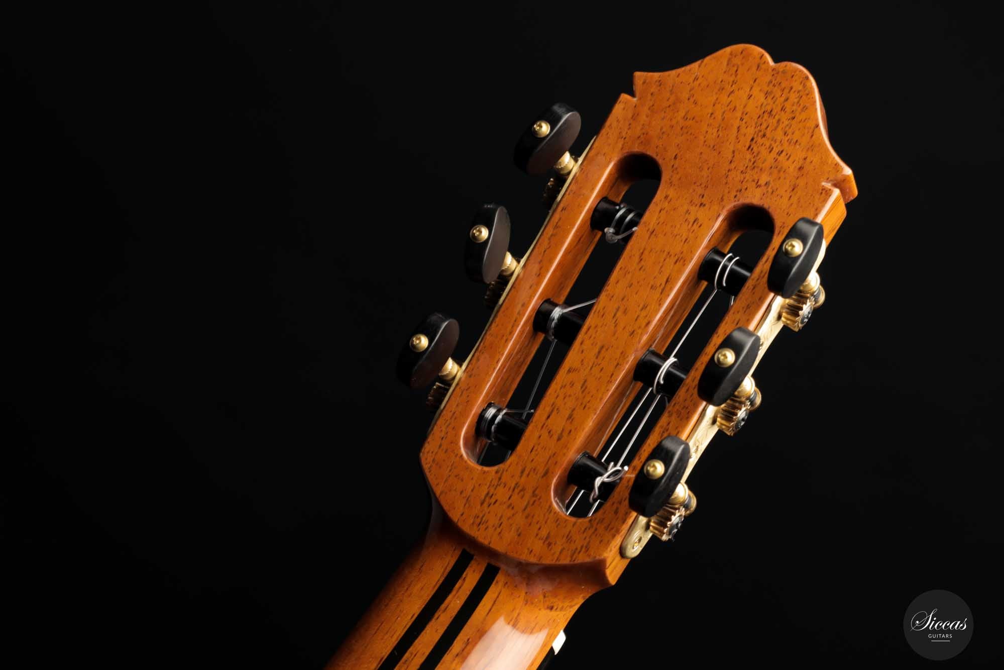 This beautiful guitar has all the aesthetic qualities of Kohno guitars, such as perfect craftsmanship and a spruce top with a beautiful honey color, for example. The shape of the headstock is a combination of the head shape of the guitars of Robert Bouchet and Masaru Kohno. The tuners are made by Gotoh and have the peculiarity of having silver barrels. The sound of this guitar is simply amazing, well beyond our expectations for this very accessible model. Power and projection are combined with awesome playability. The first string is brilliant and sings elegantly with its extraordinary sustain. It is a guitar with an almost Spanish attack along with deep and precise bass. A very nice surprise and an instrument that is equally recommended to all kinds of guitarists, amateurs, and professionals.