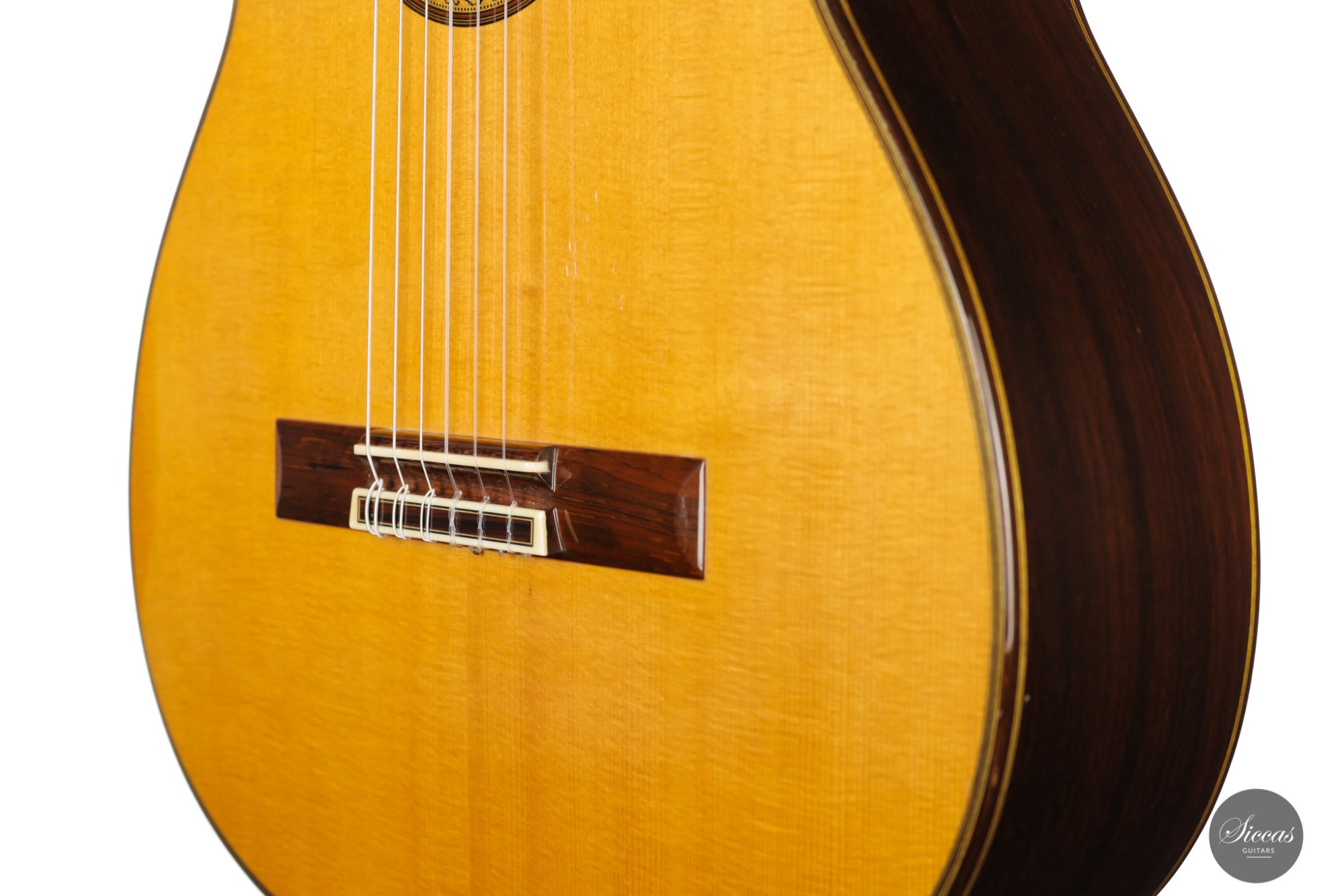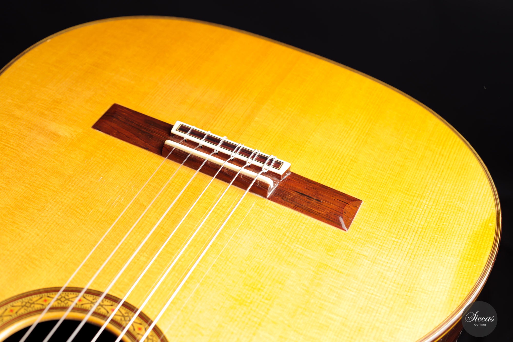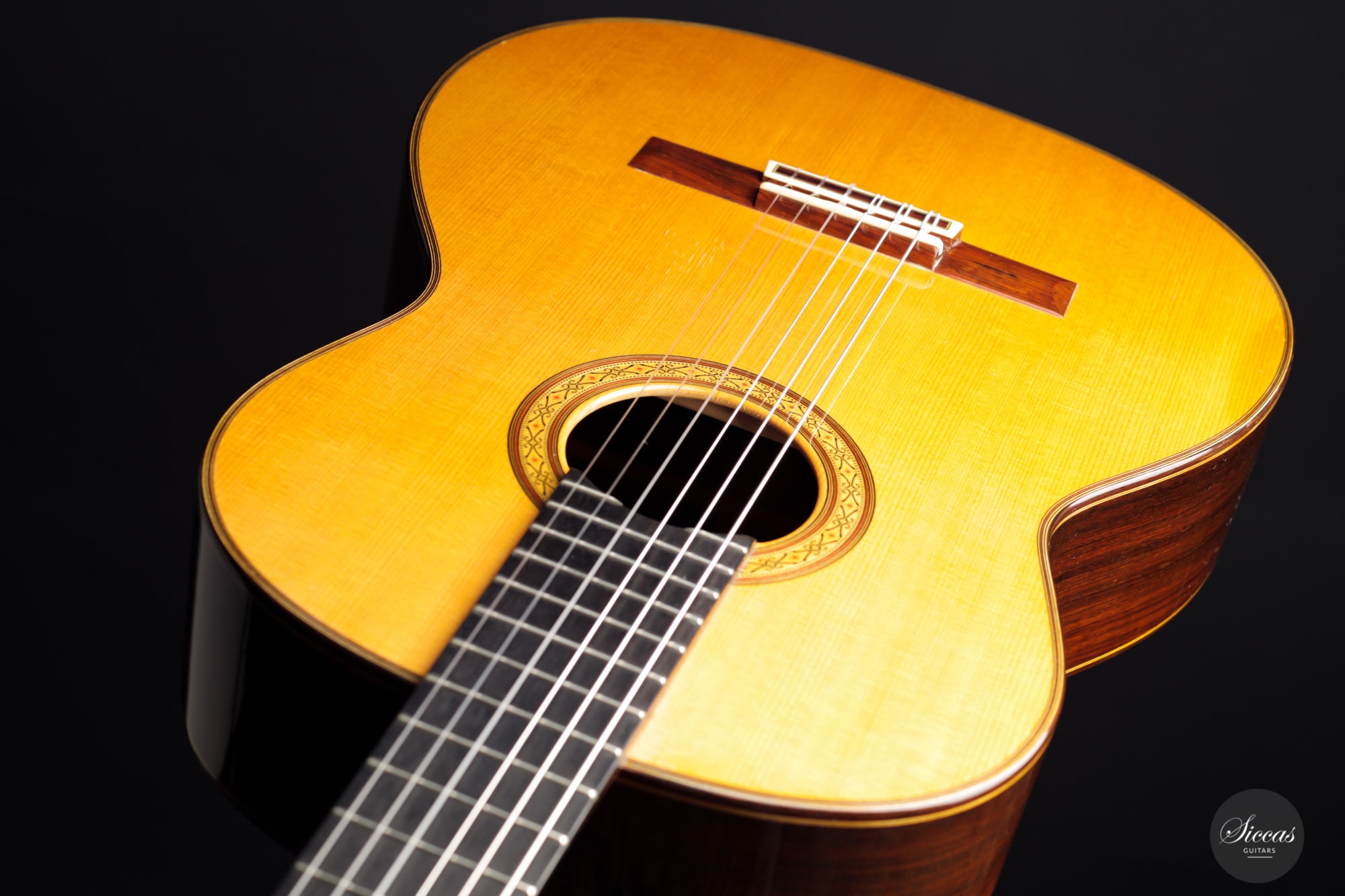 This Masaru Kohno is a beautiful guitar, made from the oldest and highest quality fine woods from the Kohno stock. This guitar responds very well and has an excellent volume of sound. Furthermore, the tone is precise and projects excellently. It is an excellently balanced instrument with a very malleable tone. Due to many years of intensive playing, the guitar is wonderfully in tune and has a great response. It has a few small dings and signs of play.