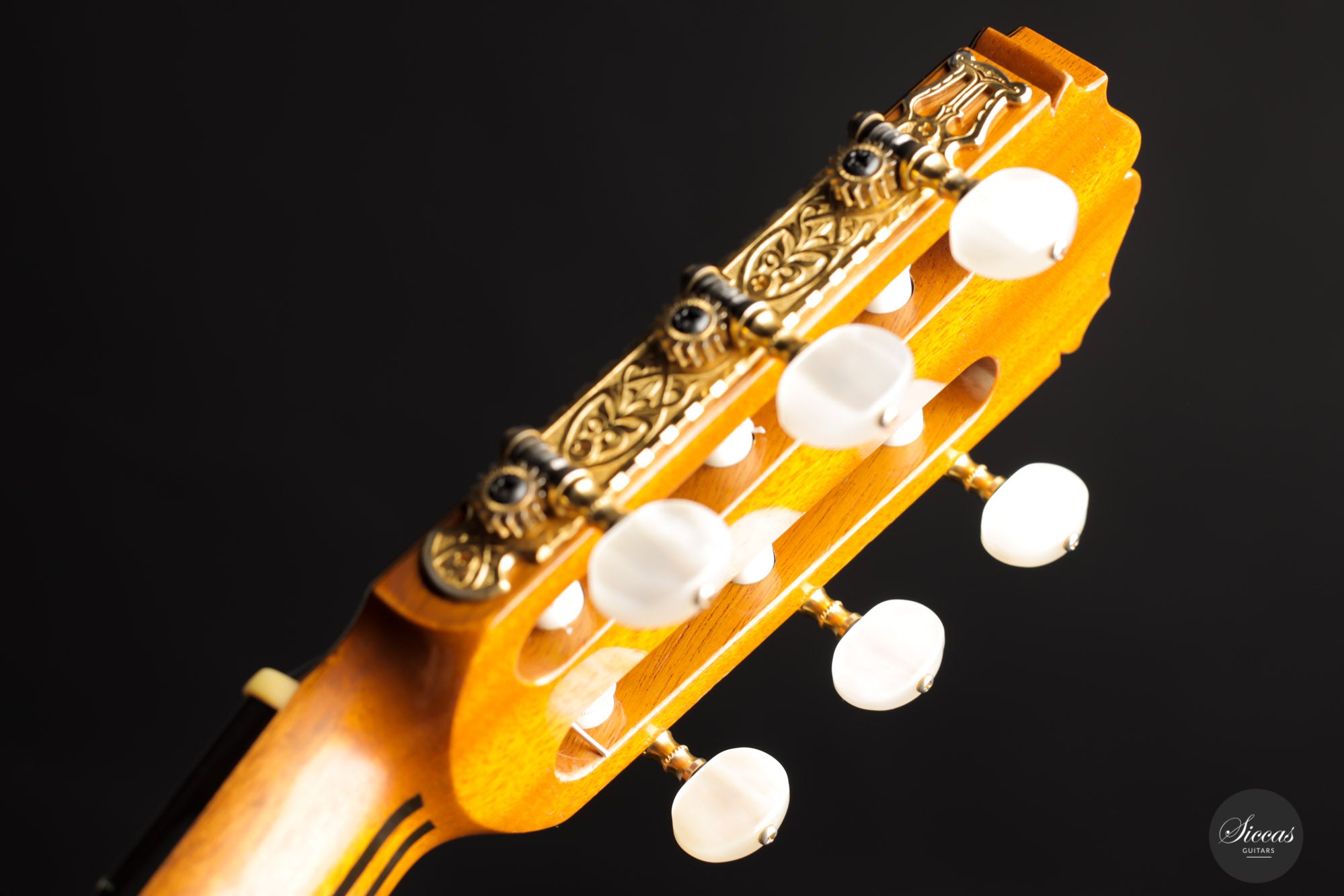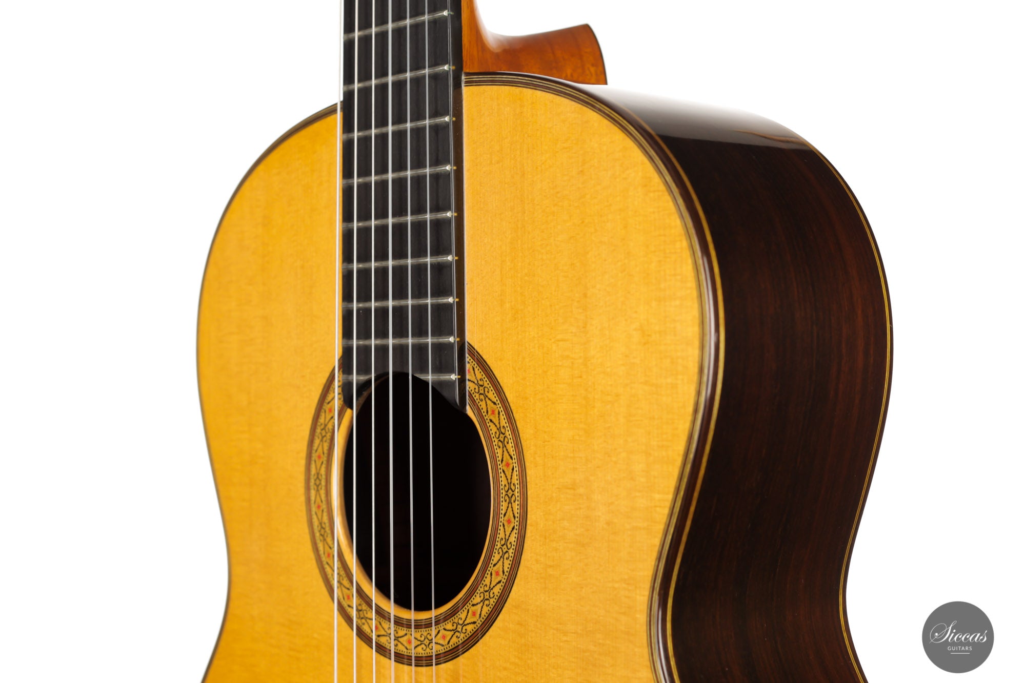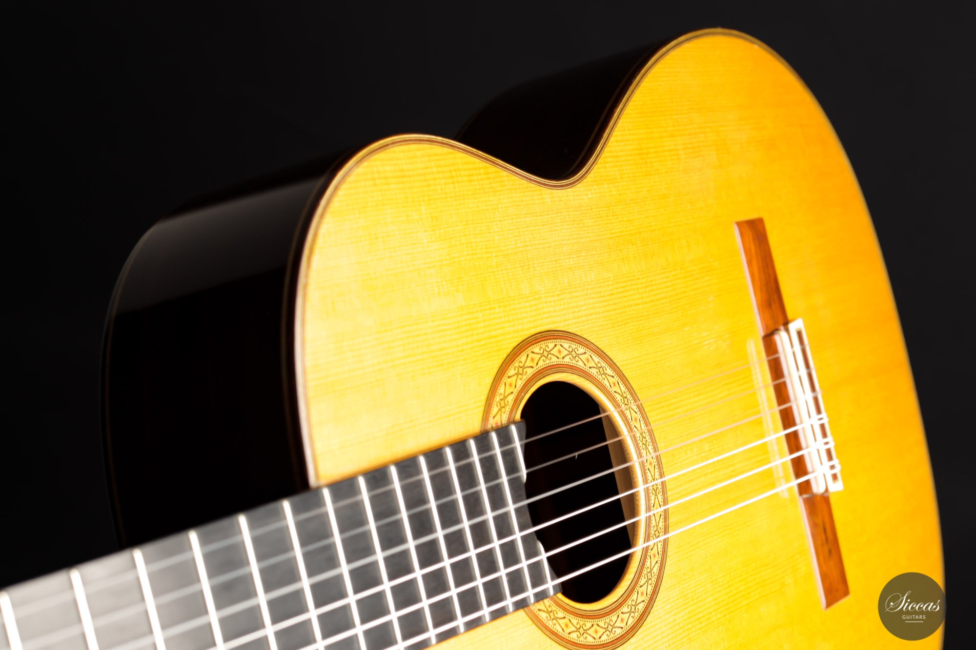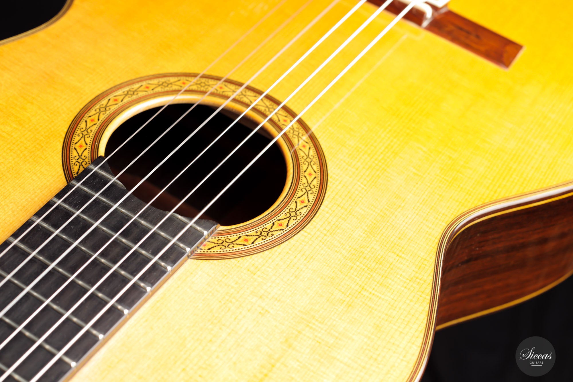 This Masaru Kohno is a beautiful guitar, made from the oldest and highest quality fine woods from the Kohno stock. This guitar responds very well and has an excellent volume of sound. Furthermore, the tone is precise and projects excellently. It is an excellently balanced instrument with a very malleable tone. Due to many years of intensive playing, the guitar is wonderfully in tune and has a great response. It has a few small dings and signs of play.