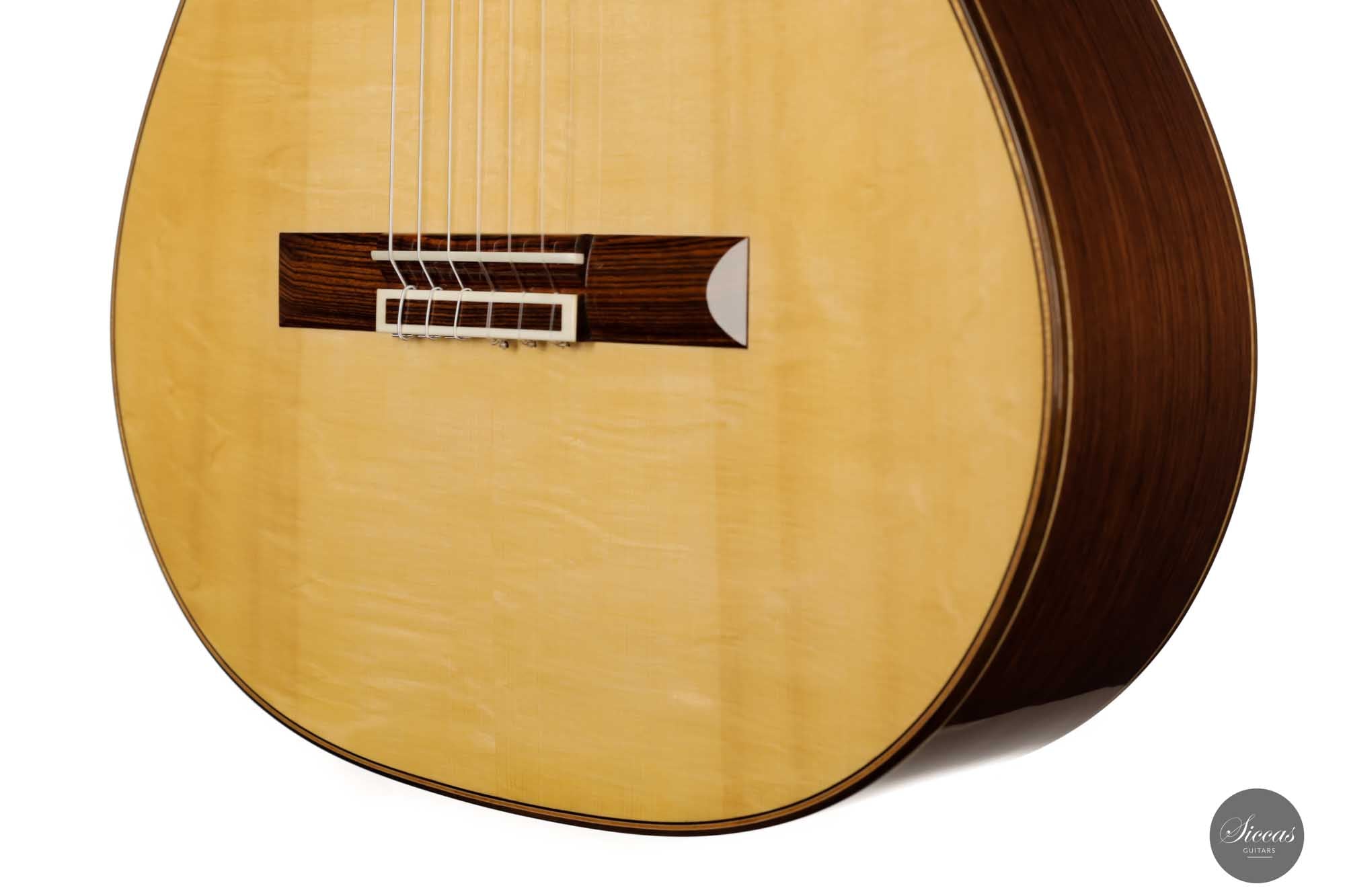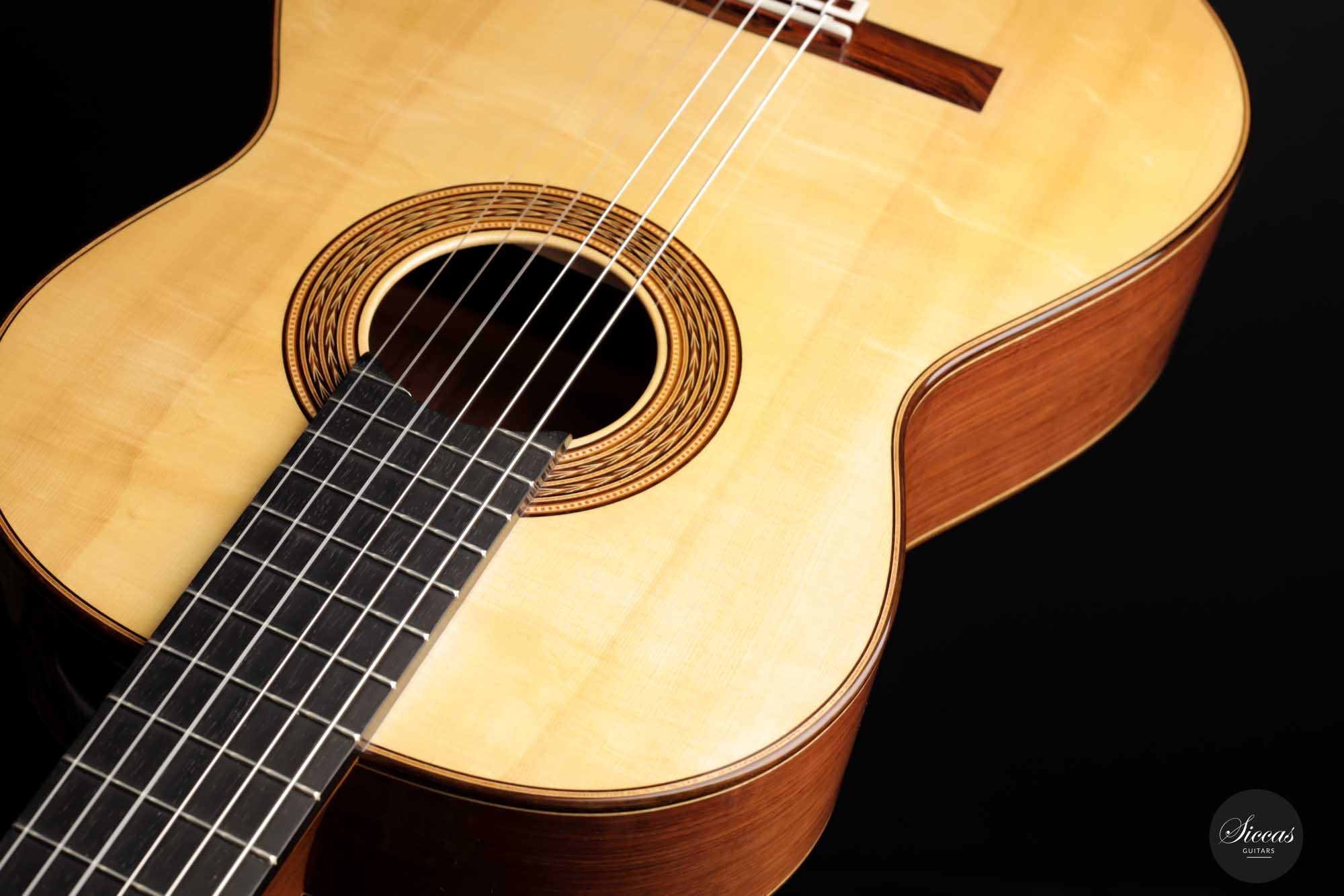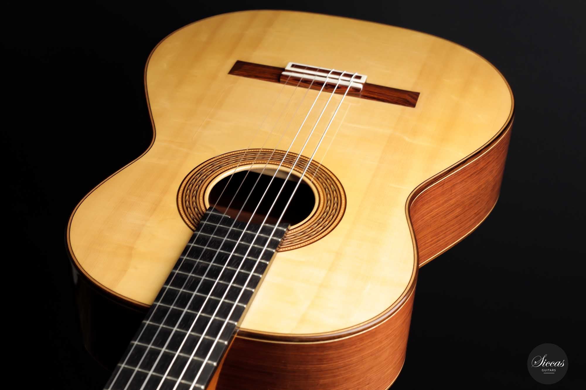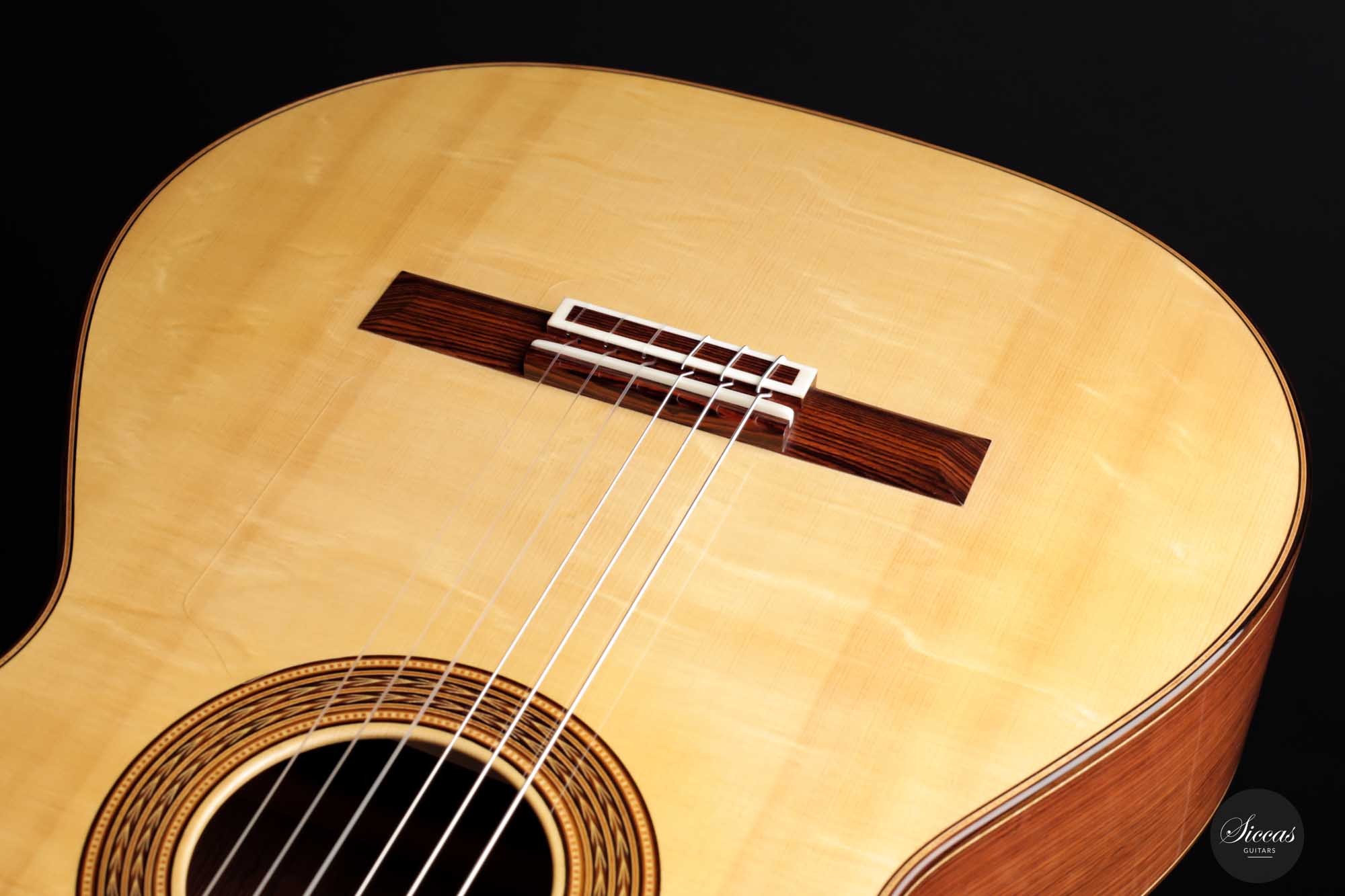 Matthias builds guitars optically and technically in the Spanish tradition, thoroughly selecting and hand picking each piece of wood. His goal in guitar making is not the instruments' superficial volume but the tone's sustainability, which originates from a rich overtone spectrum. Instead of optical overload, Matthias aims for a classical elegance that relies on carefully well-balanced proportions and inspiring tone.