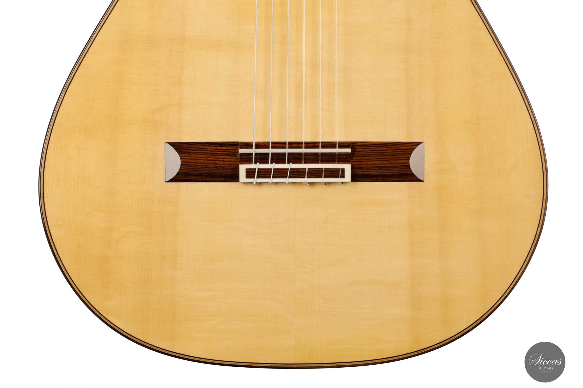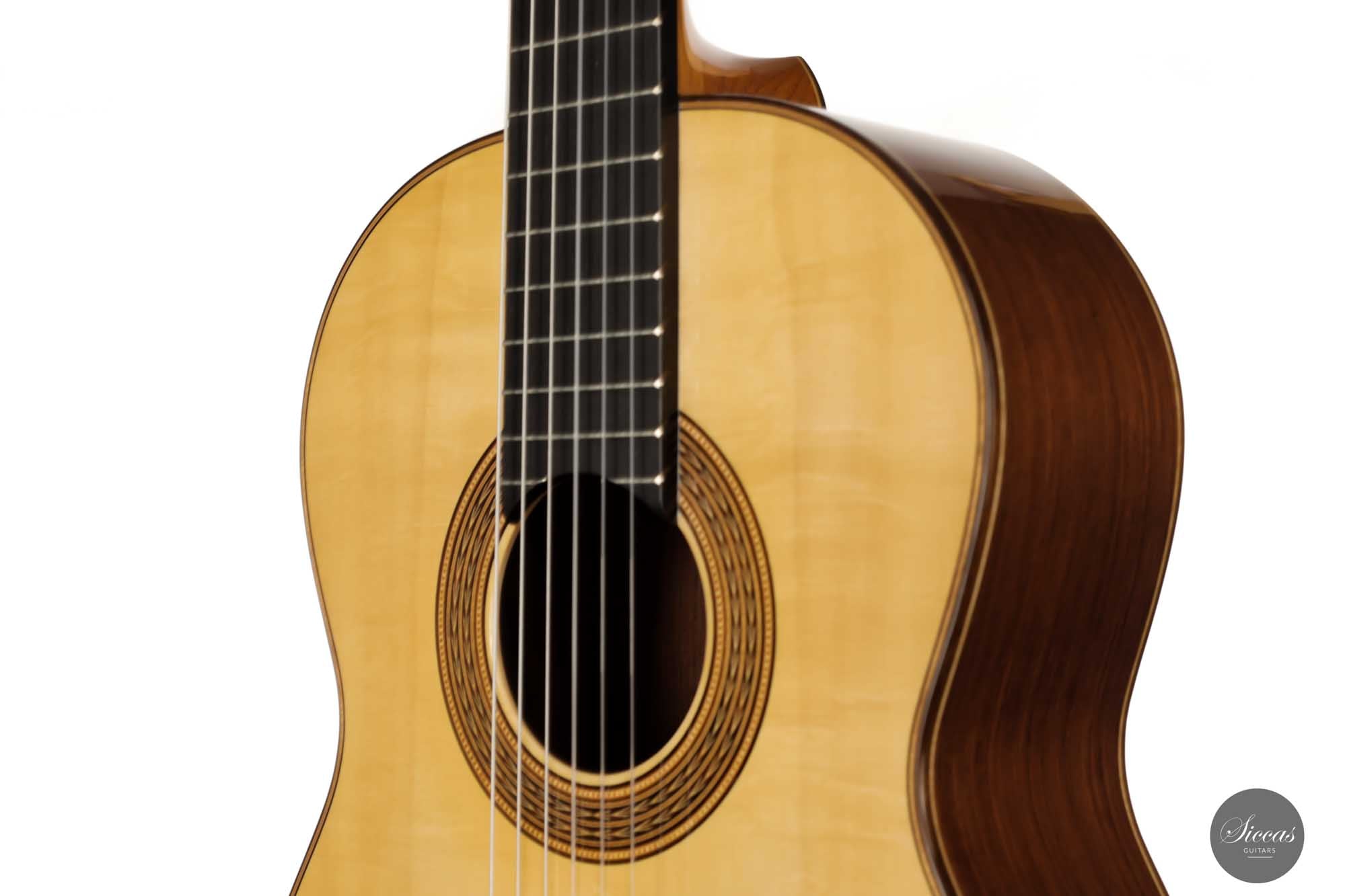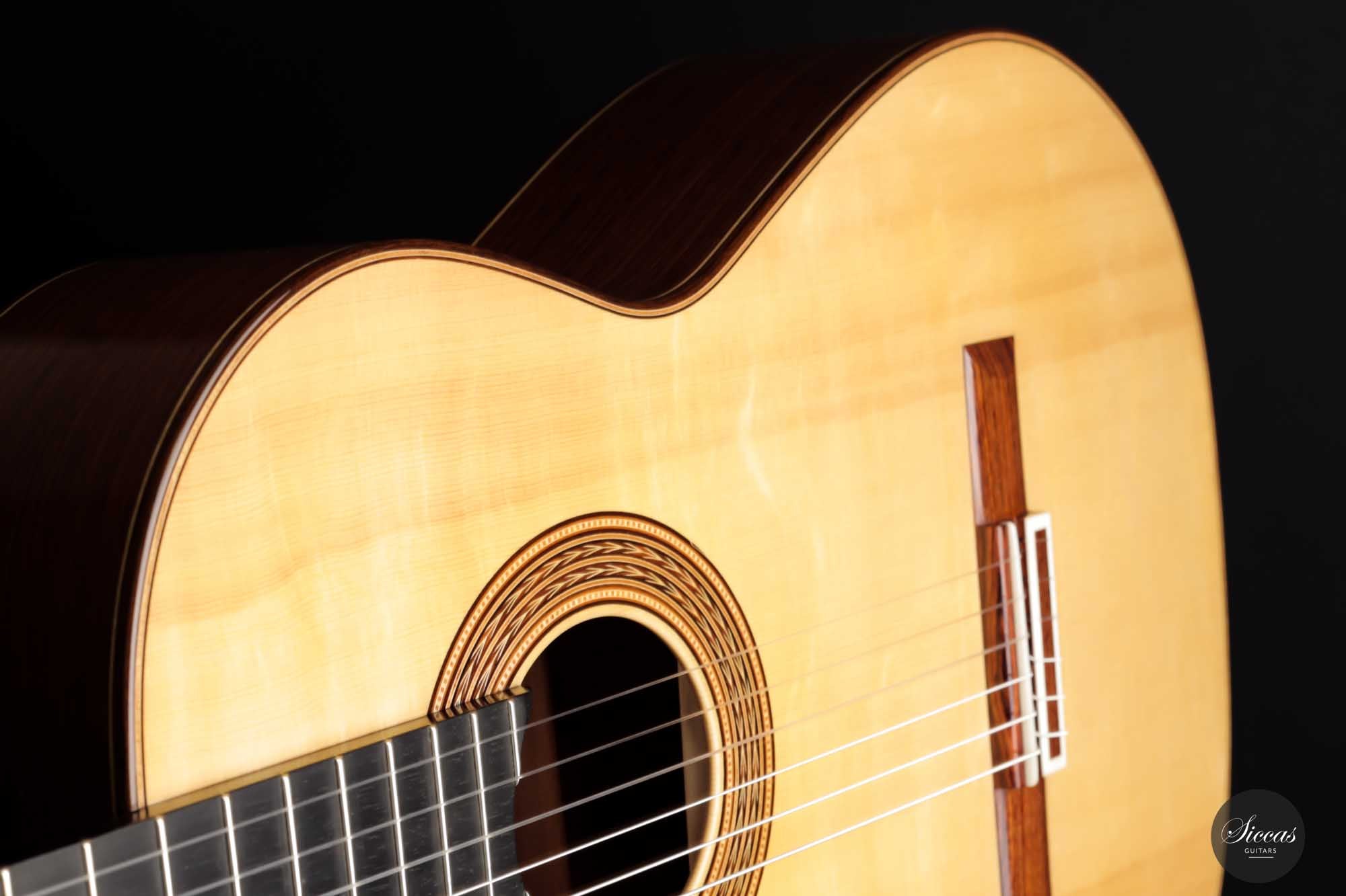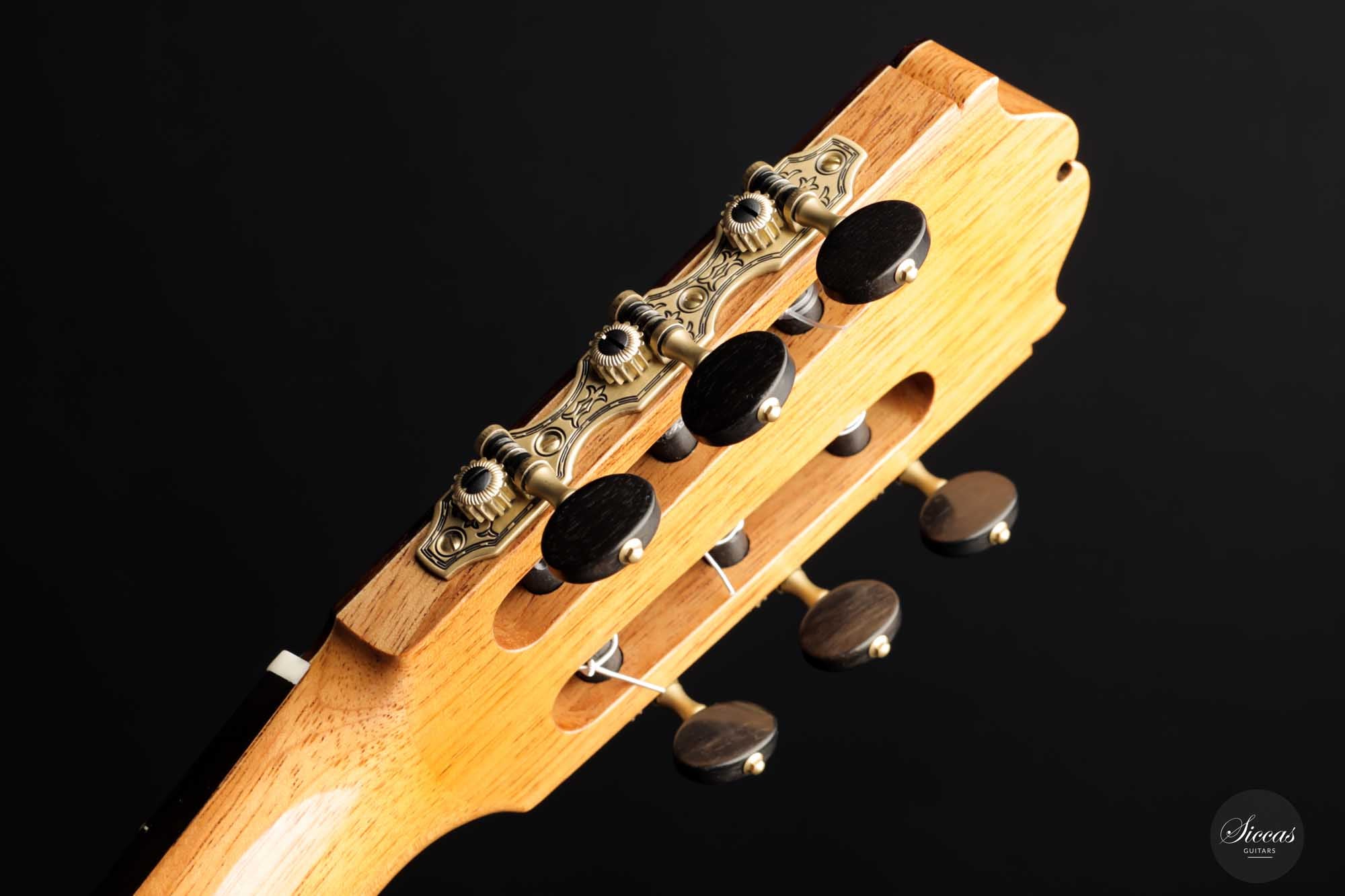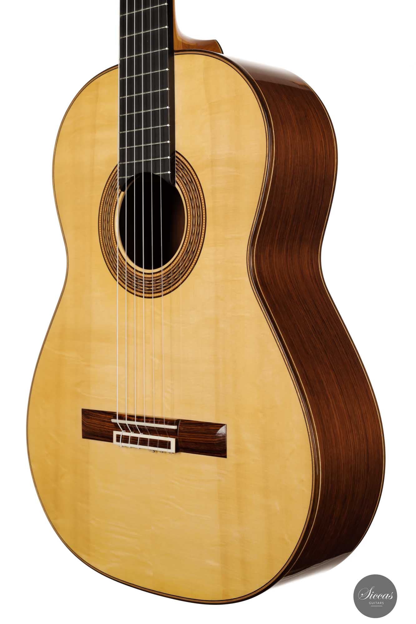 Matthias builds guitars optically and technically in the Spanish tradition, thoroughly selecting and hand picking each piece of wood. His goal in guitar making is not the instruments' superficial volume but the tone's sustainability, which originates from a rich overtone spectrum. Instead of optical overload, Matthias aims for a classical elegance that relies on carefully well-balanced proportions and inspiring tone.